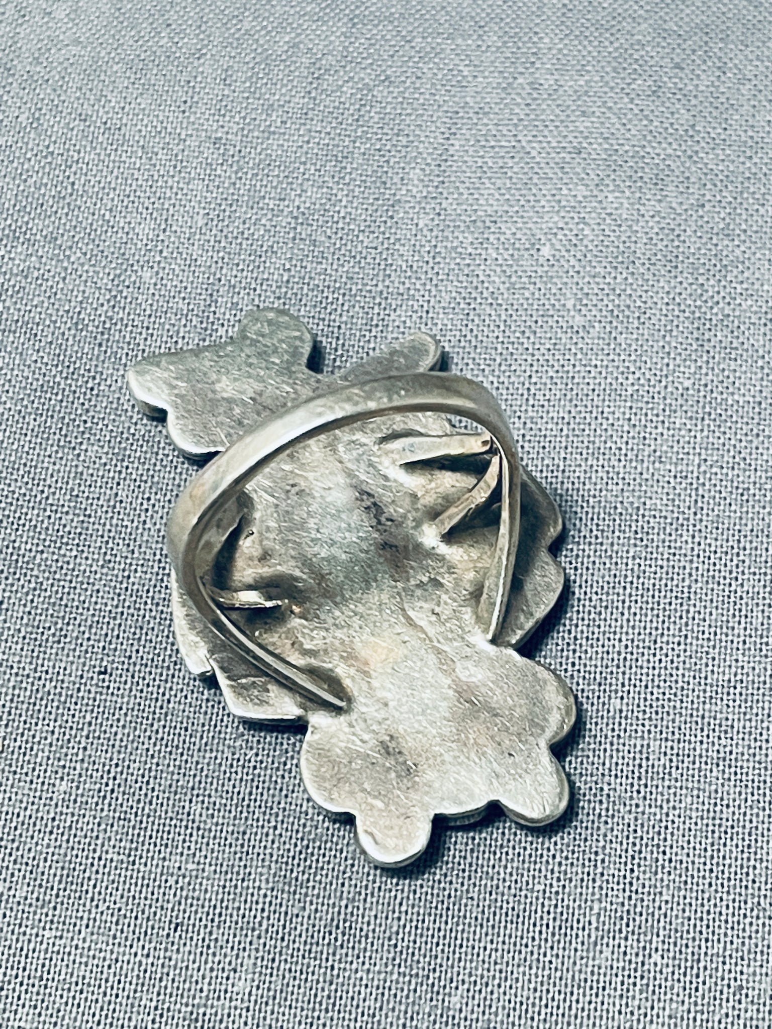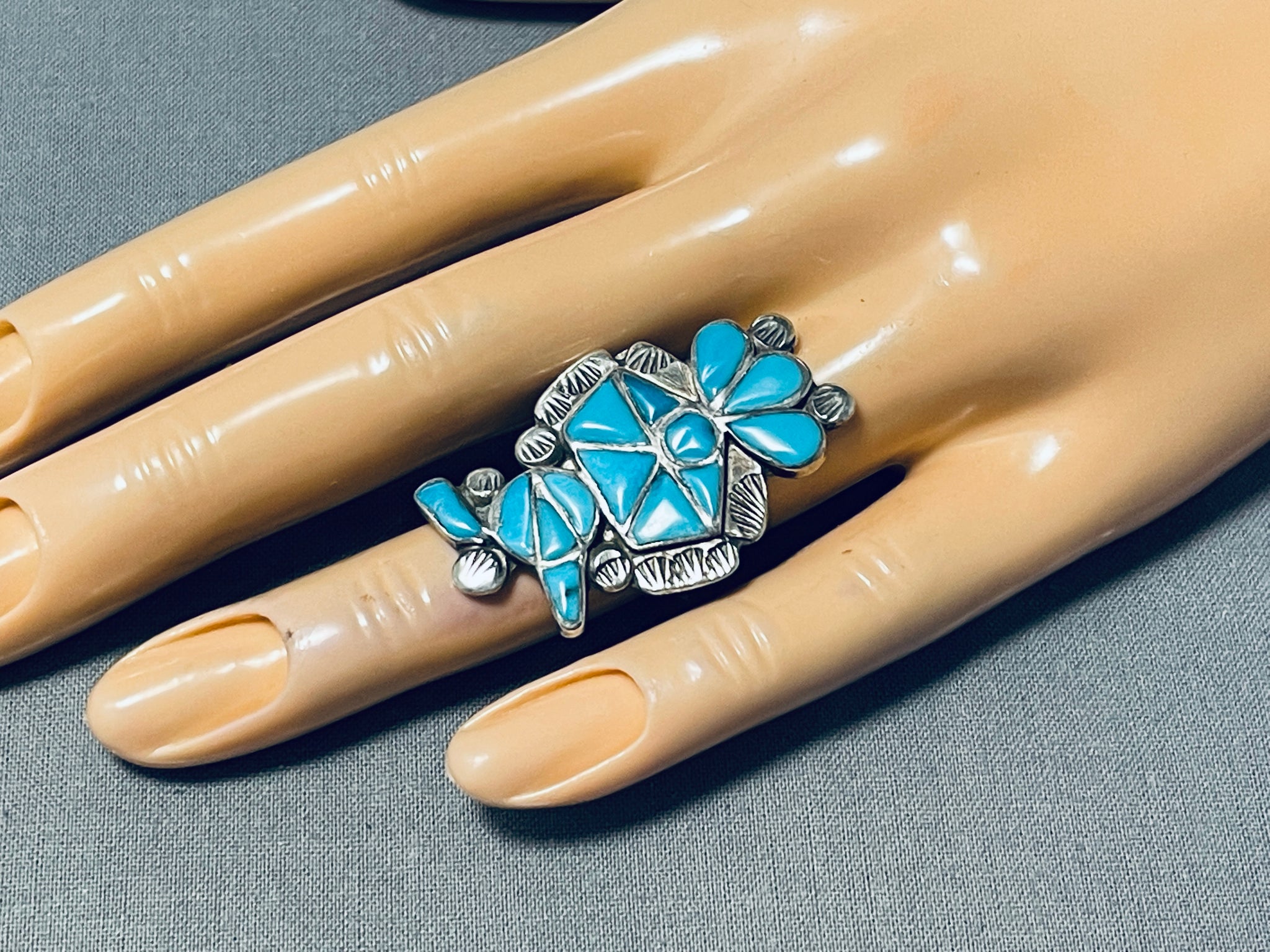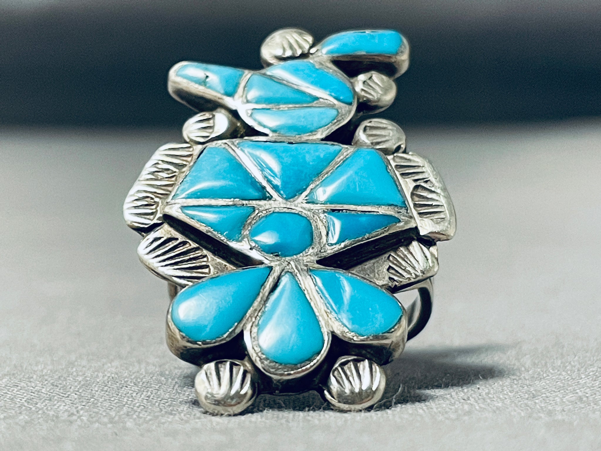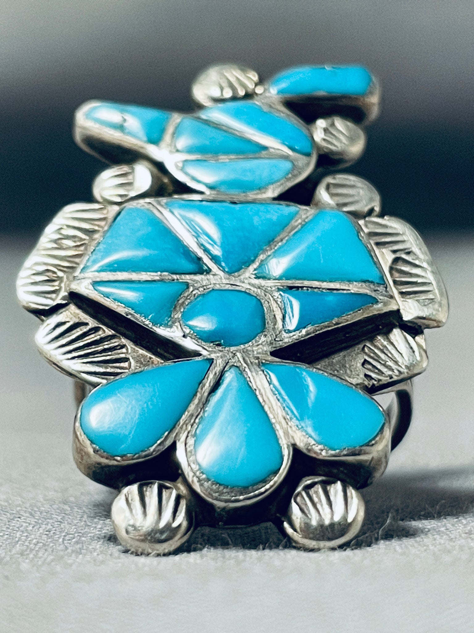 Expressive Vintage Native American Zuni Blue Gem Turquoise Sterling Silver Ring