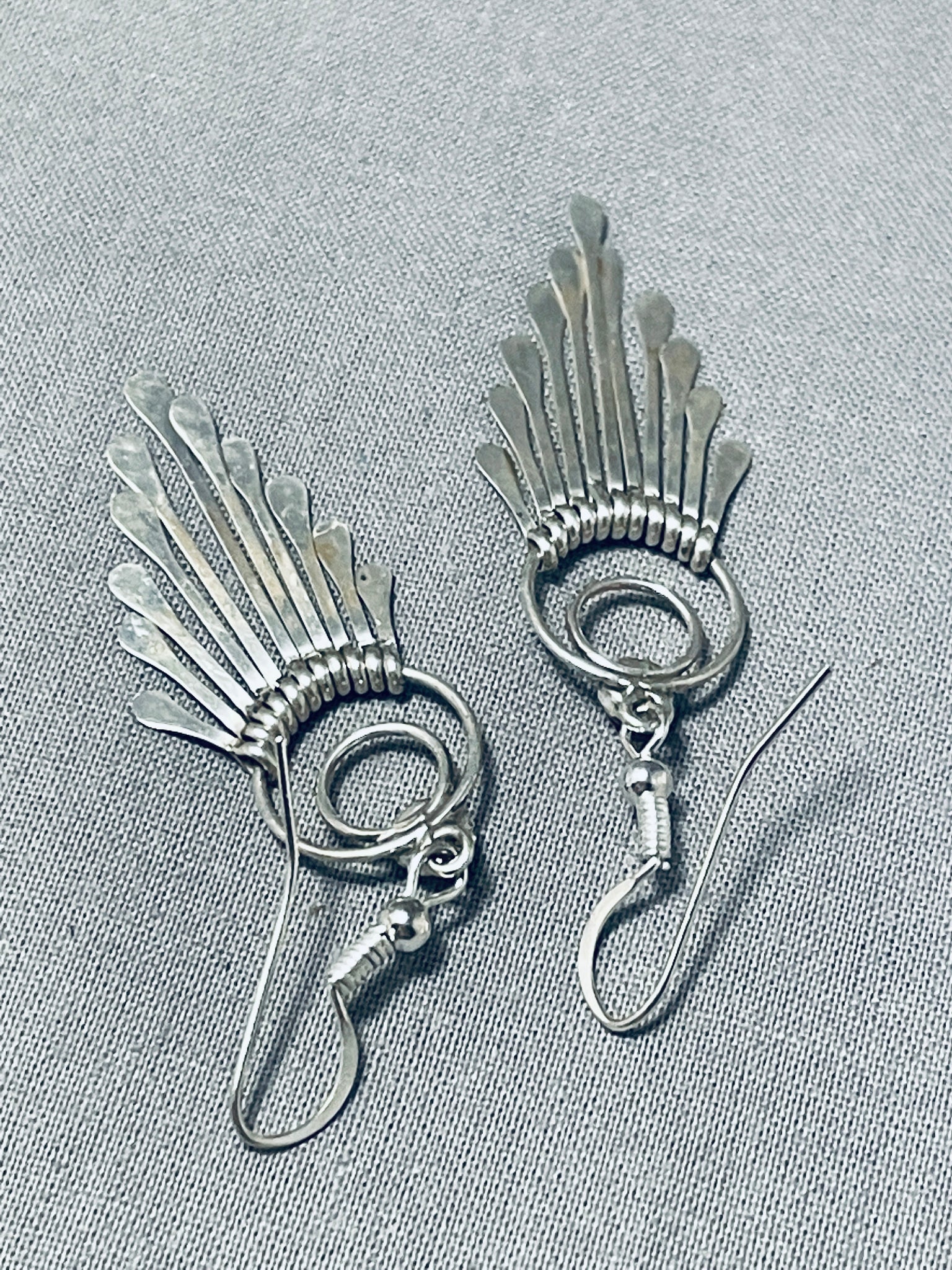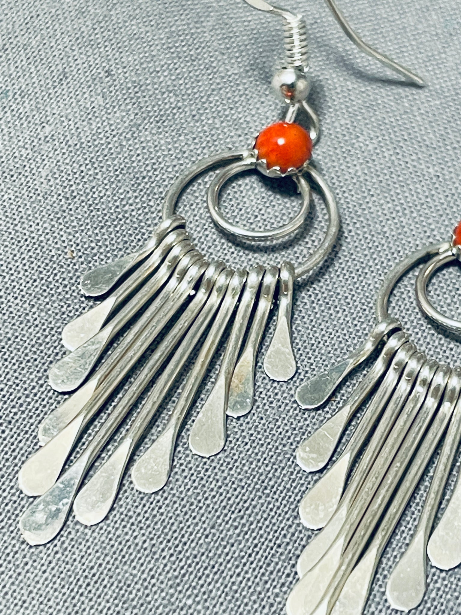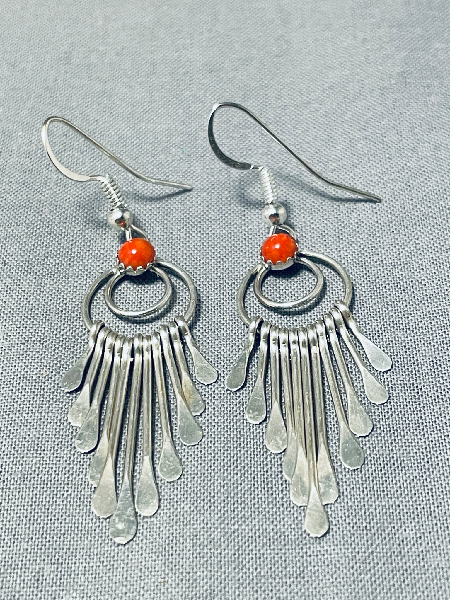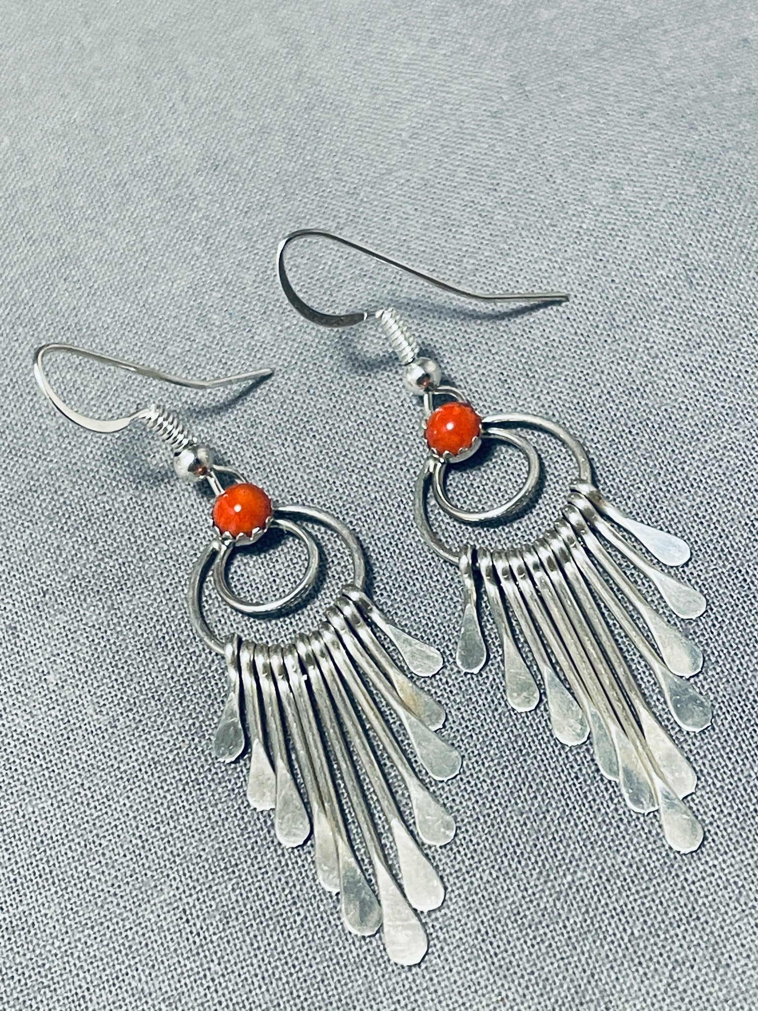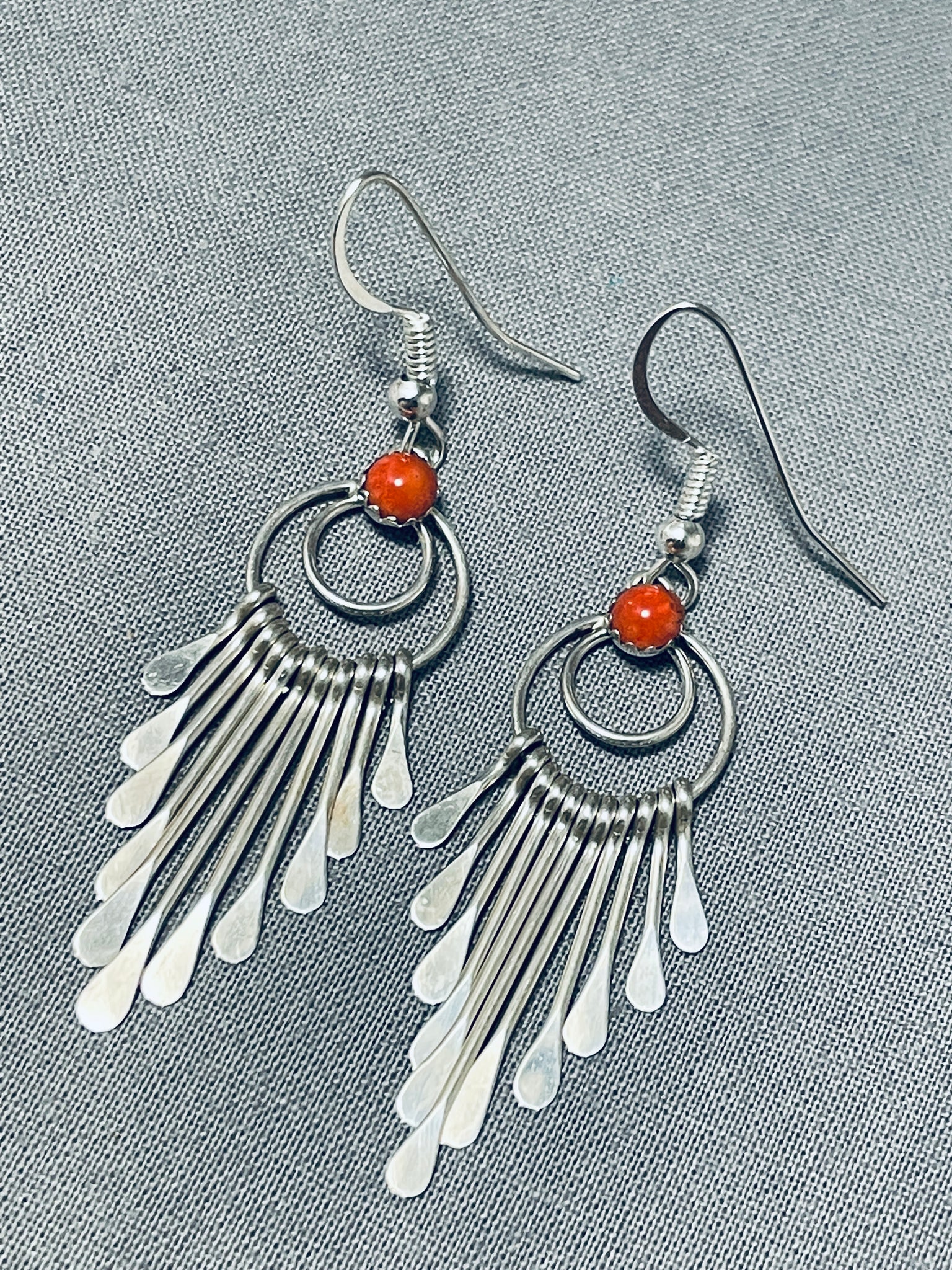 Exquisite Native American Navajo Coral Sterling Silver Earrings