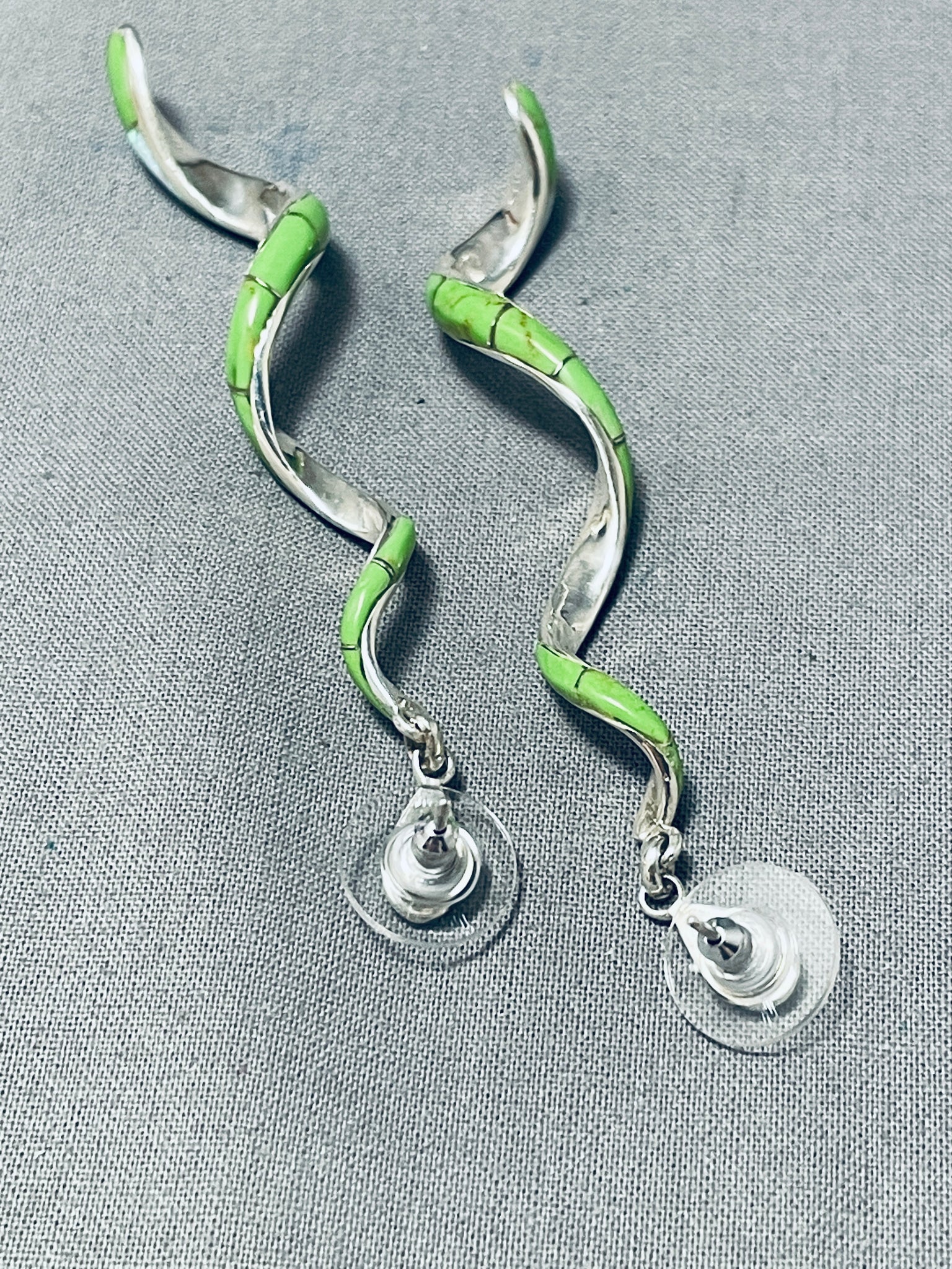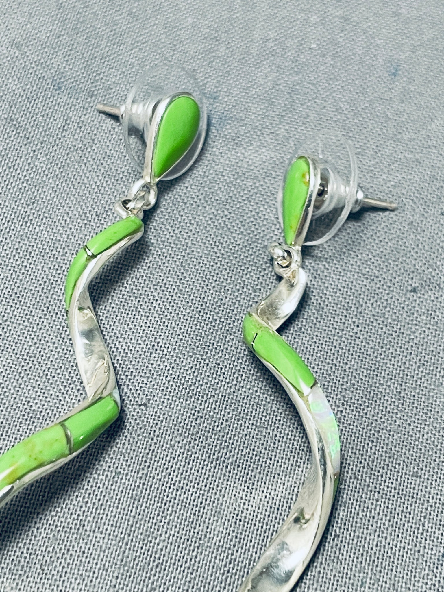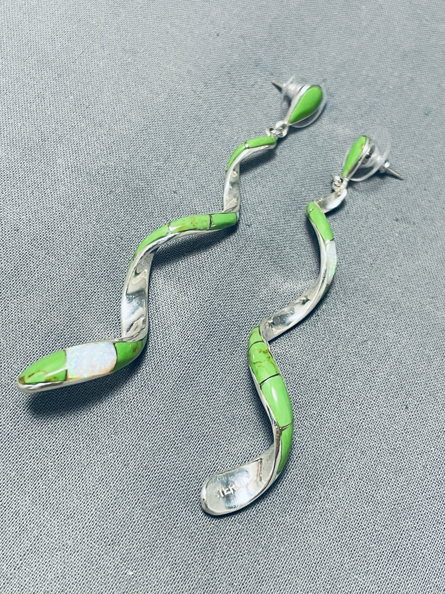 Exquisite Native American Navajo Gaspeite Opal Sterling Silver Large Spiral Earrings