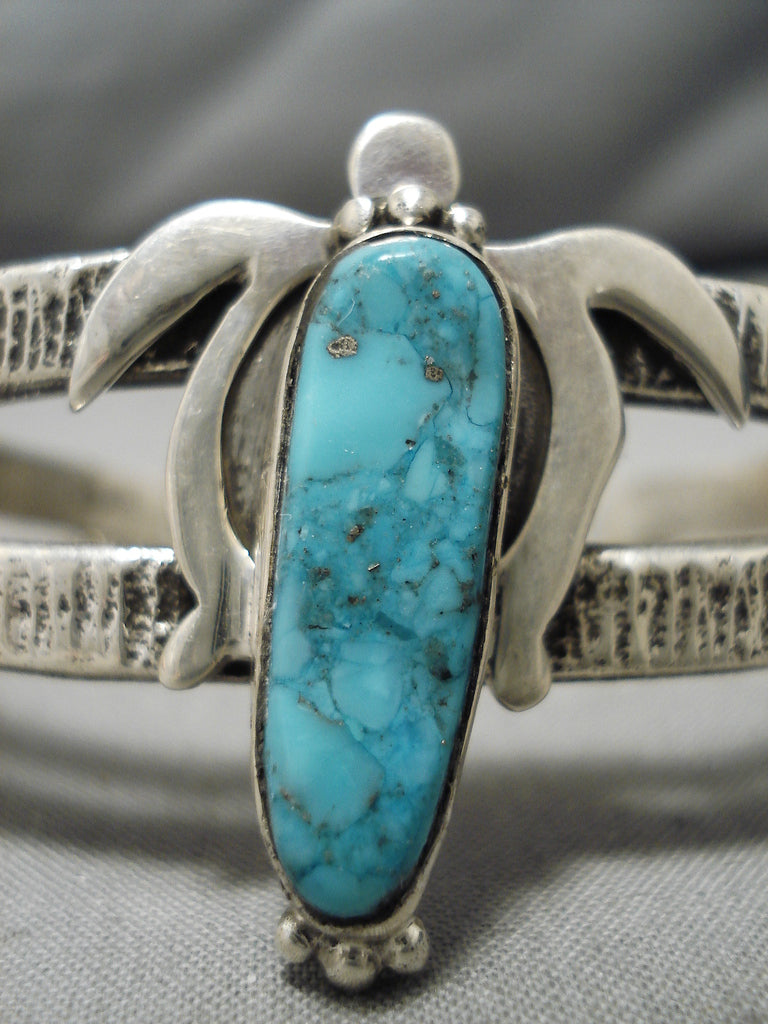 Exquisite Vintage Navajo Turtle Native American Sterling Silver Bracelet Cuff