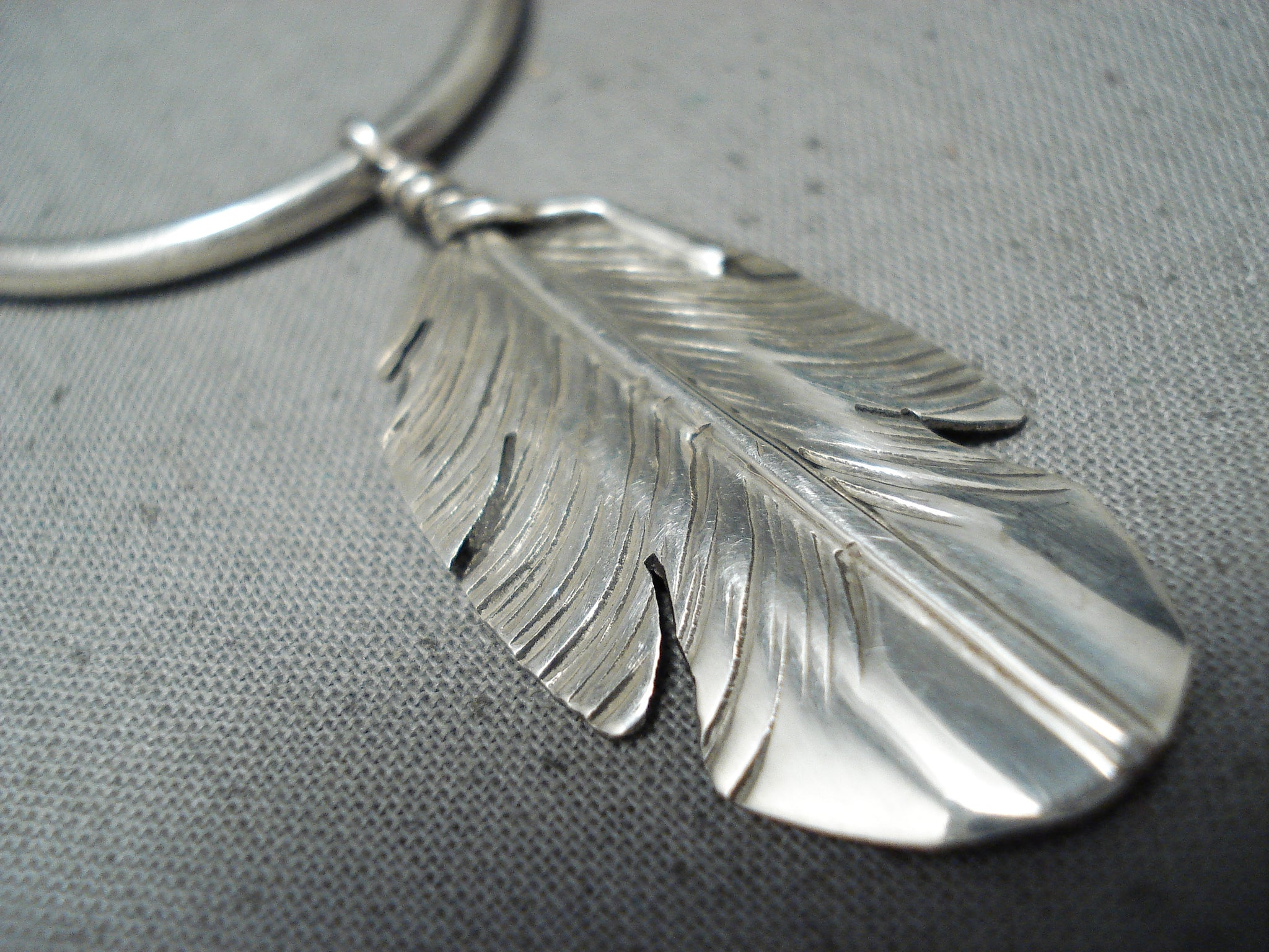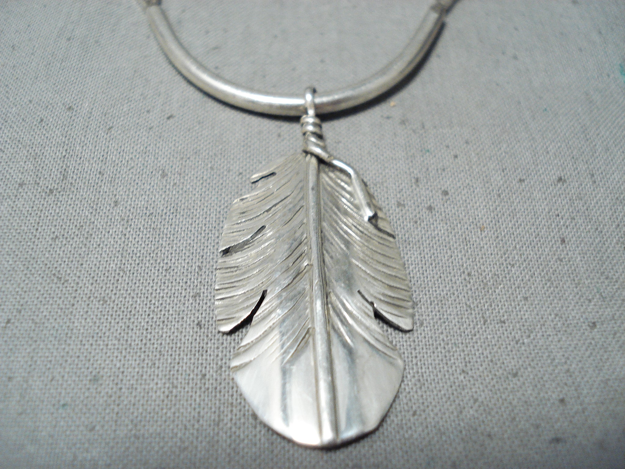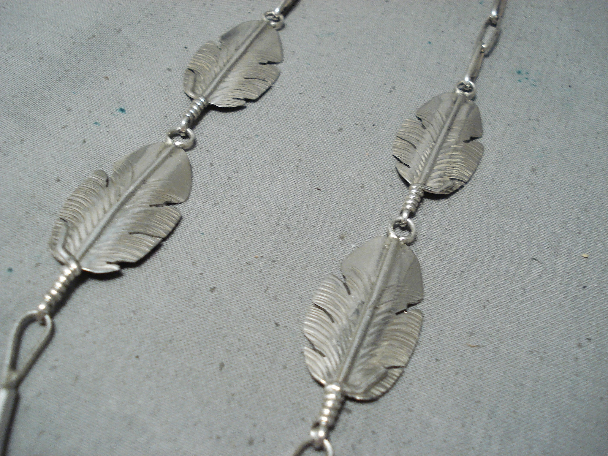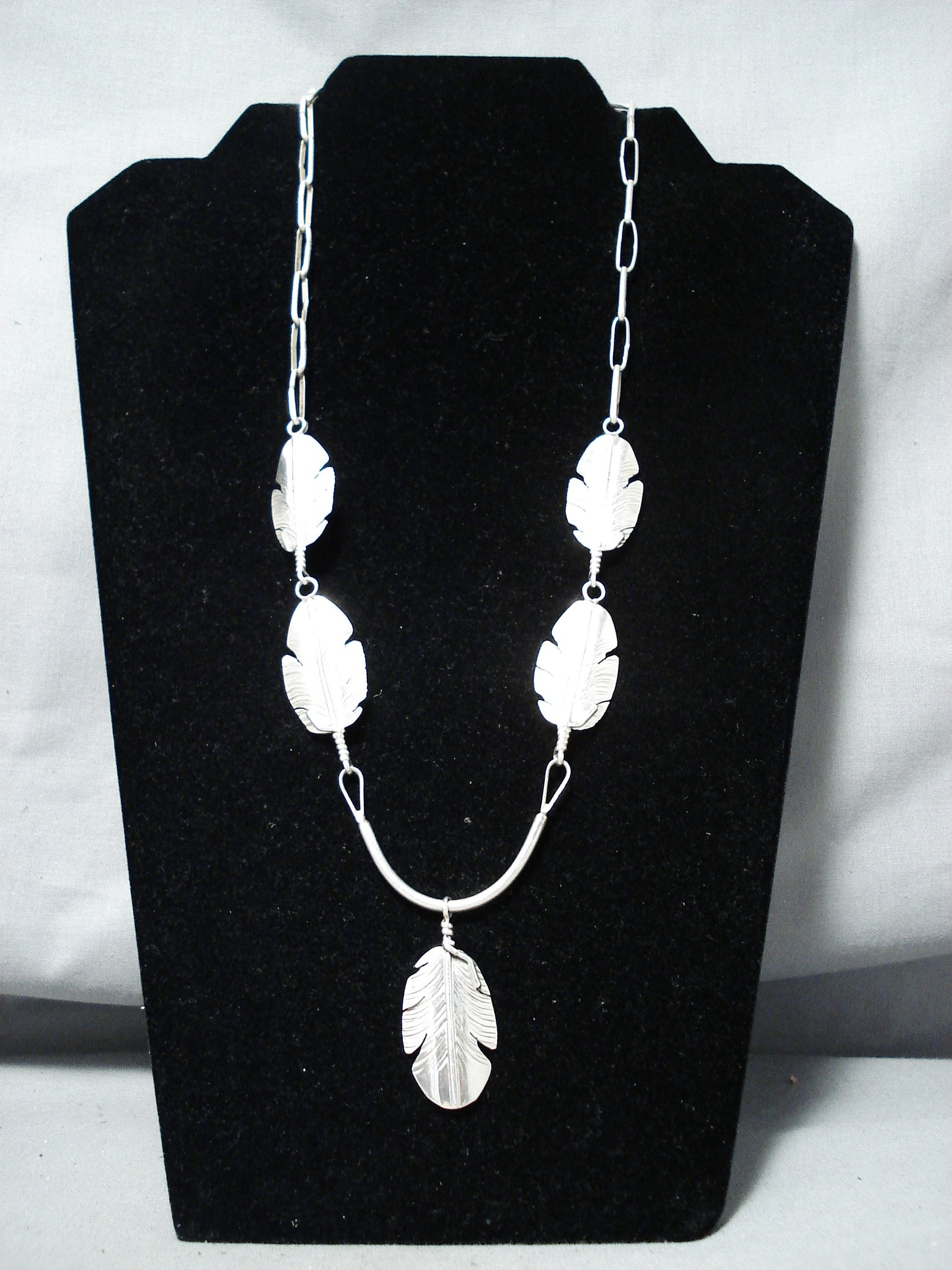 Extraordinary Navajo Sterling Silver Feathers Necklace Native American