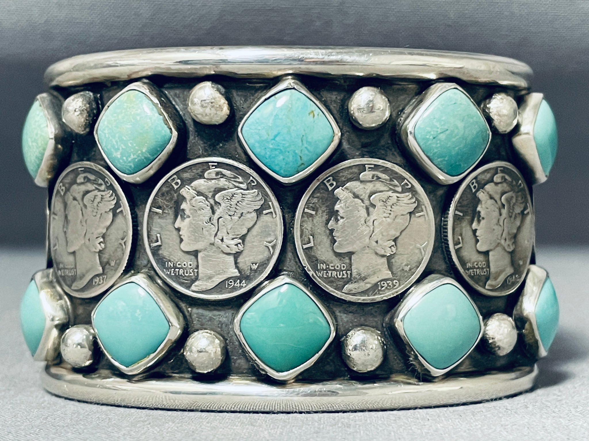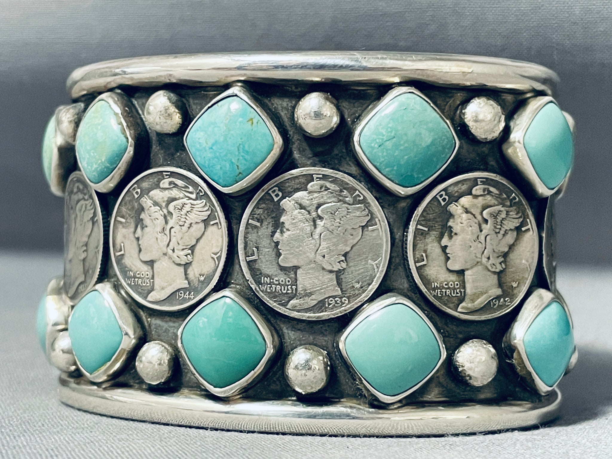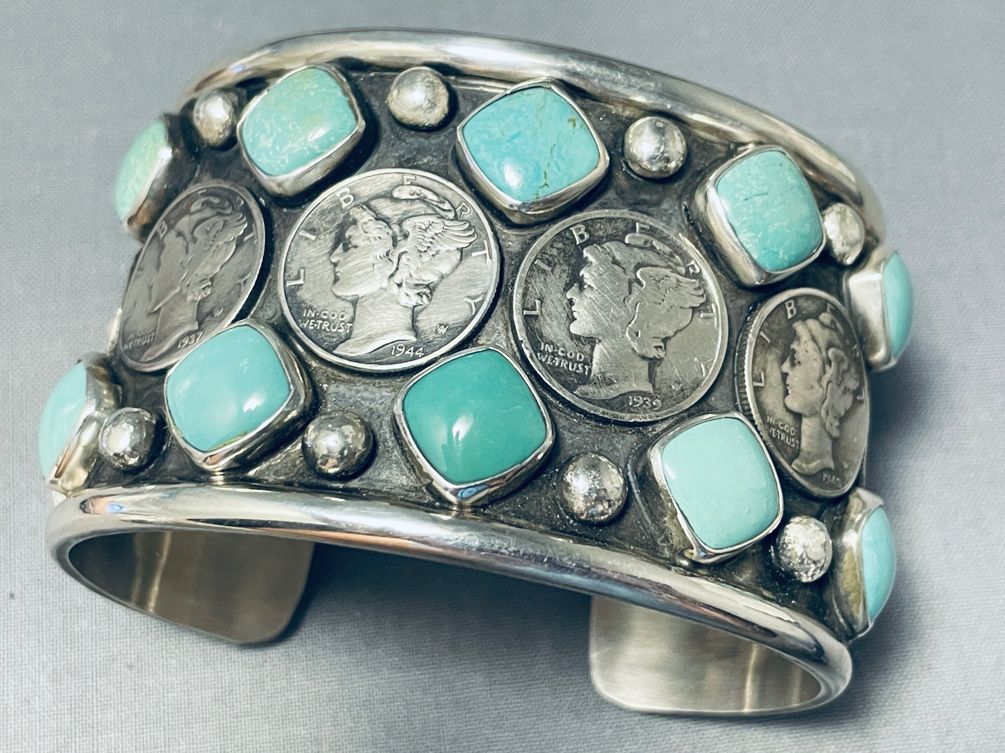 Extraordinary San Felipe Royston Turquoise Sterling Silver Coin Bracelet
