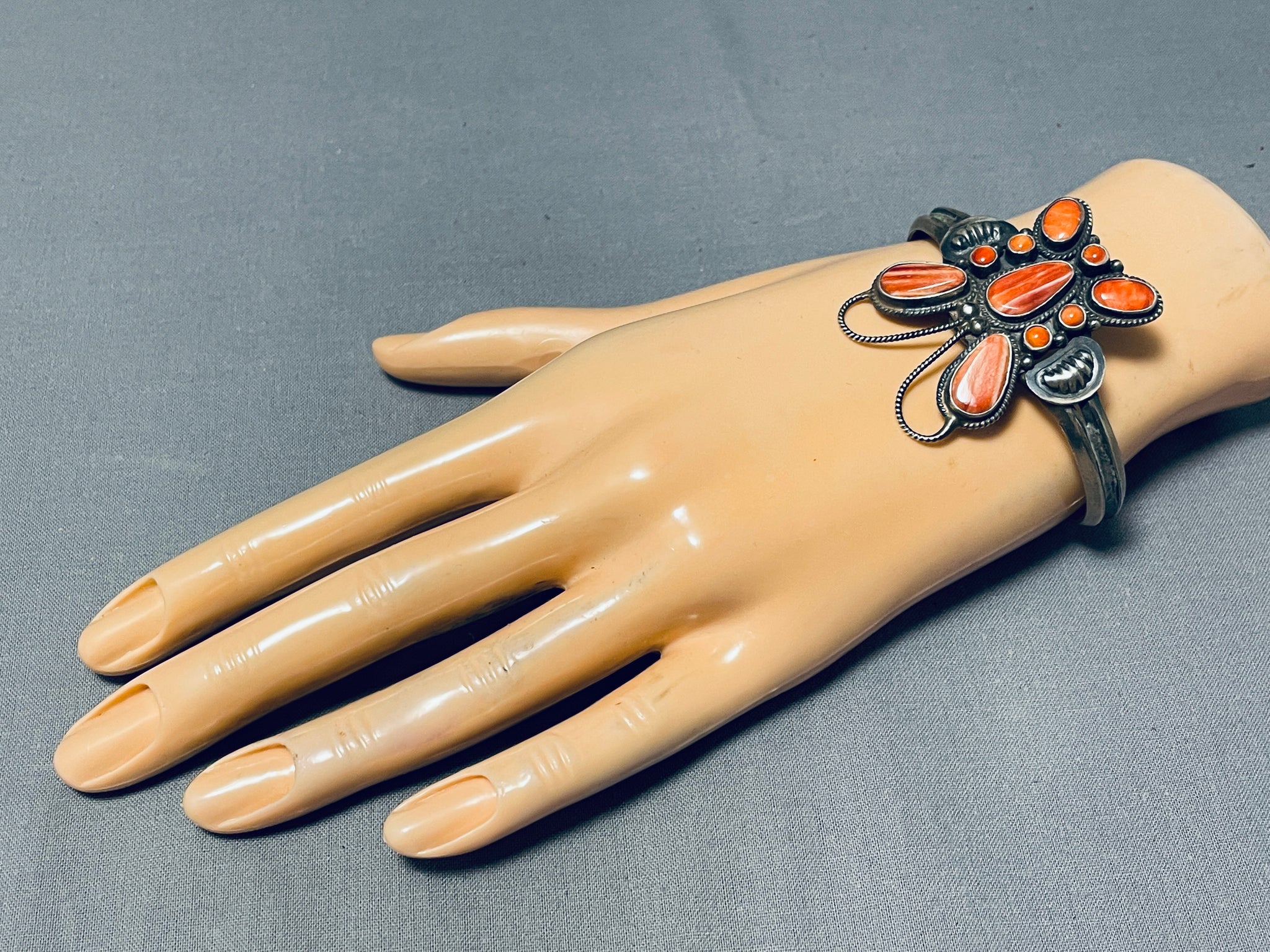 Extreme Detail Vintage Native American Navajo Brown Family Shell Sterling Silver Bracelet