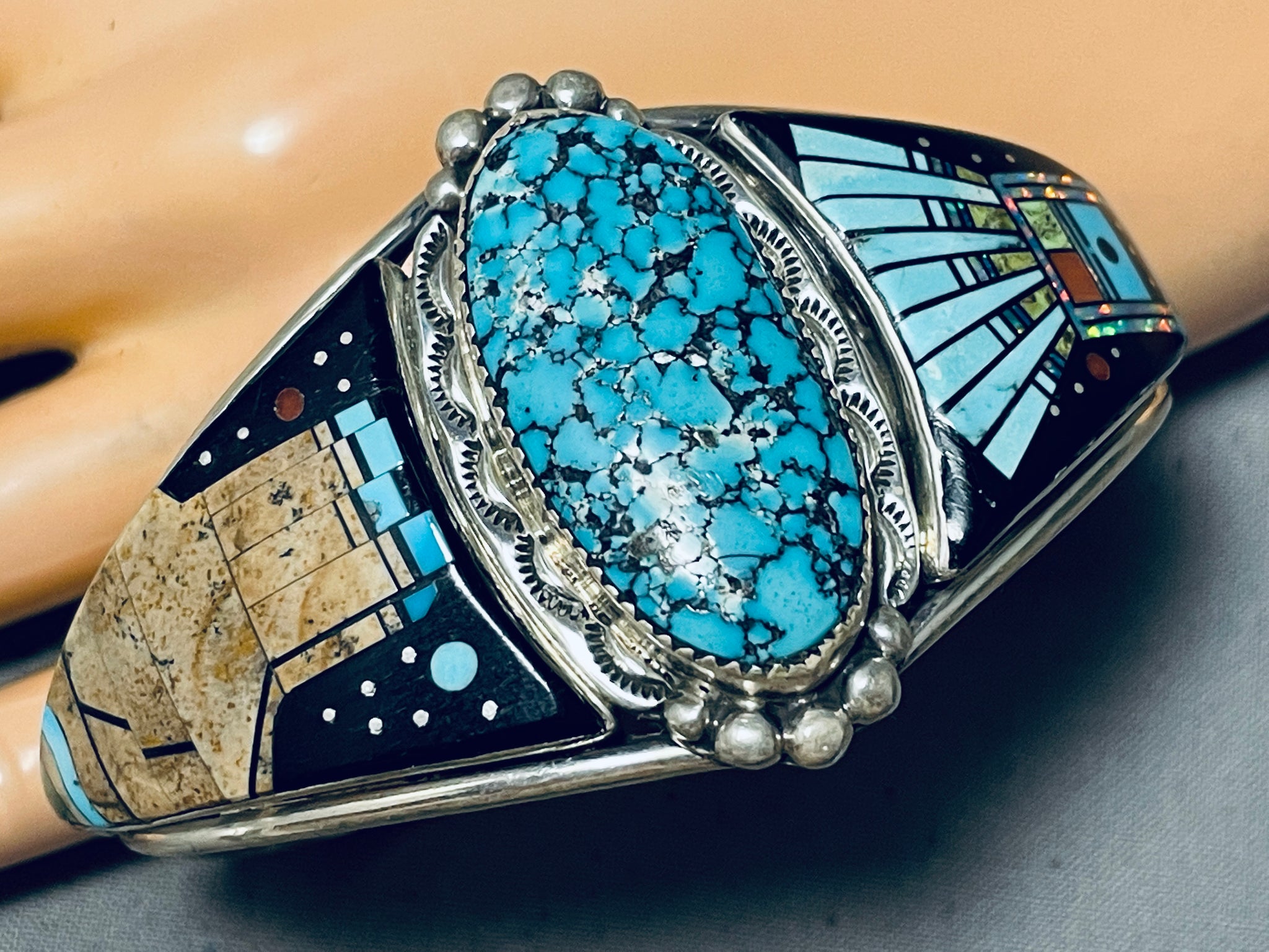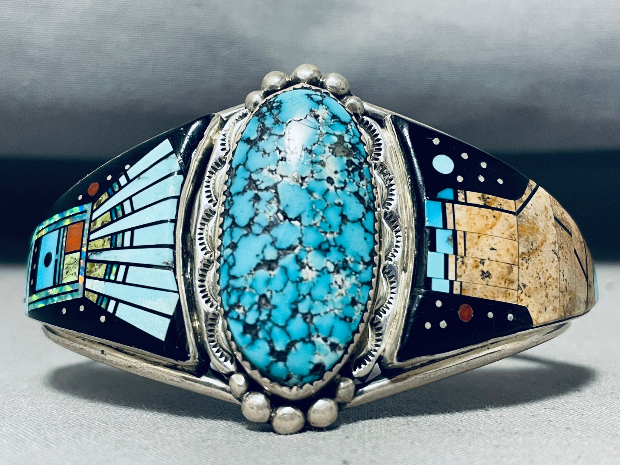 Extreme Detailed Vintage Native American Navajo Cosmic Sterling Silver Turquoise Bracelet