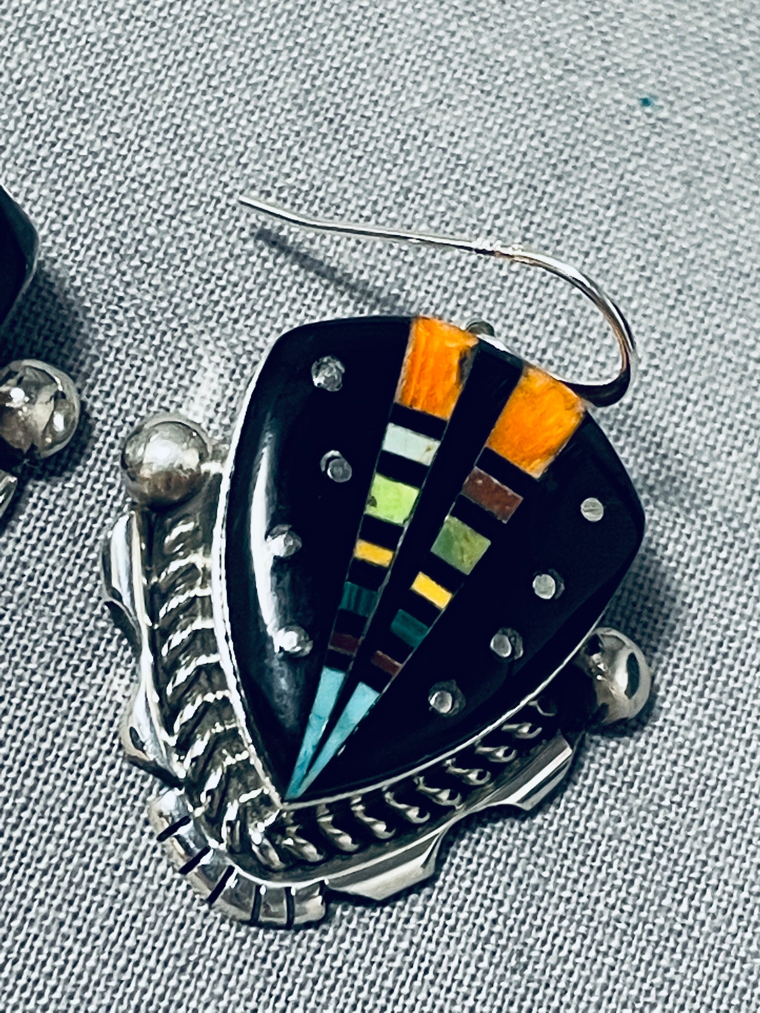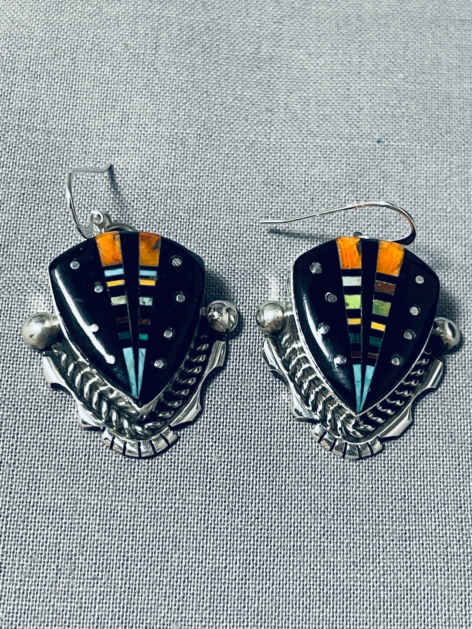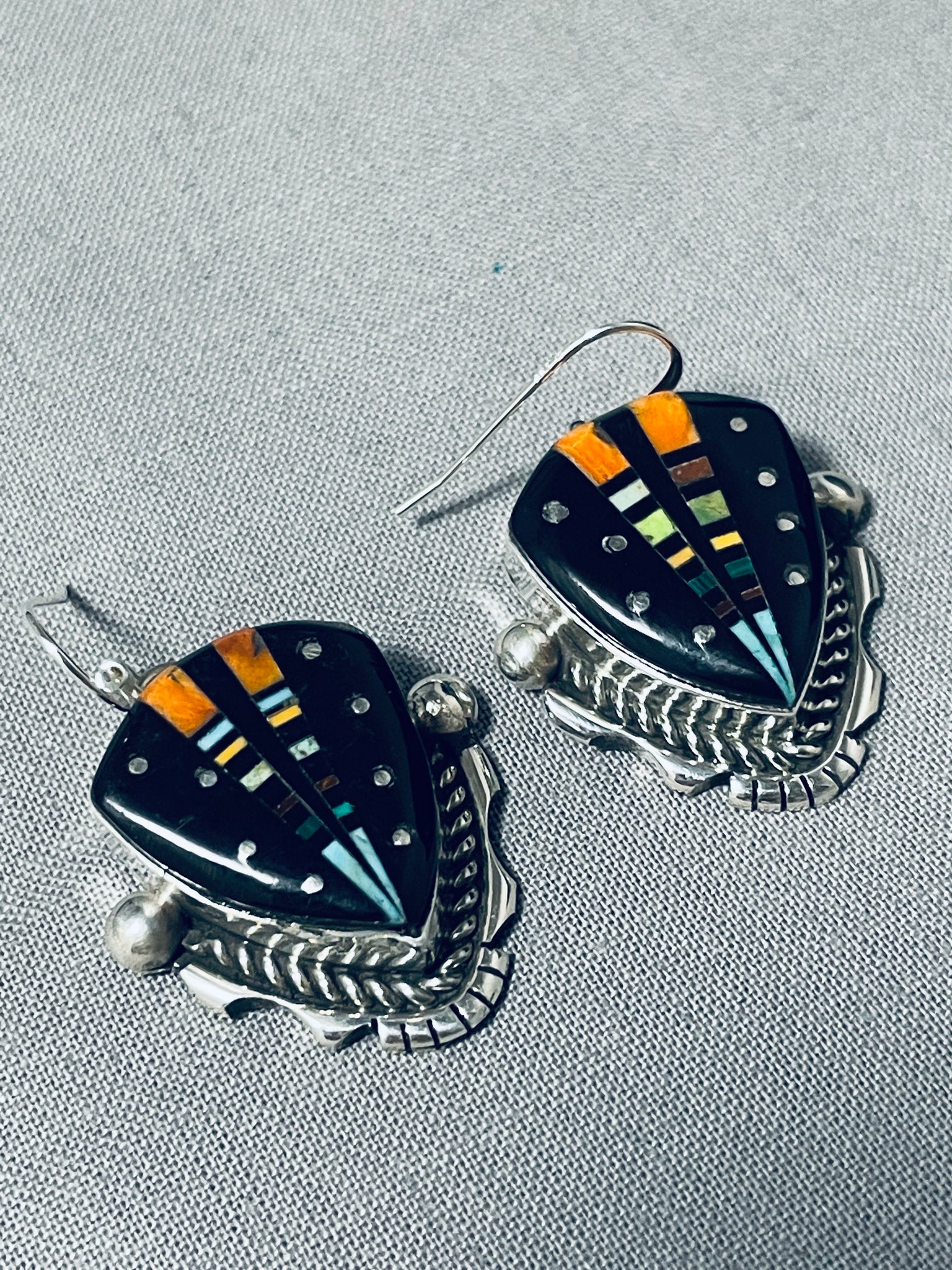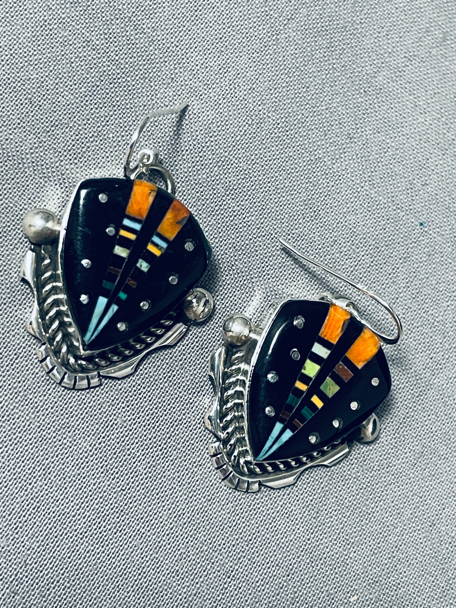 Extreme Intricacy Native American Navajo Space Turquoise Sterling Silver Earrings