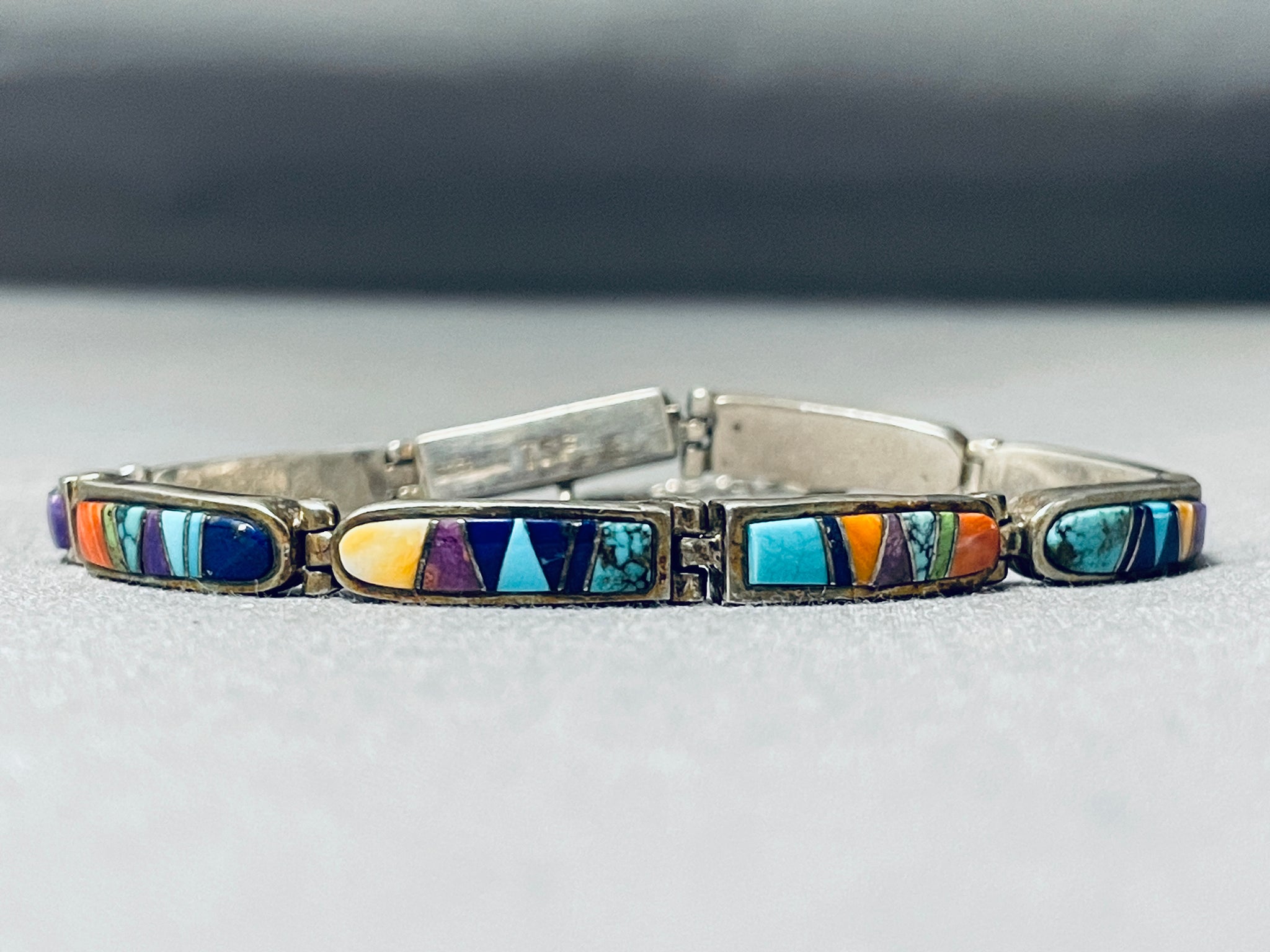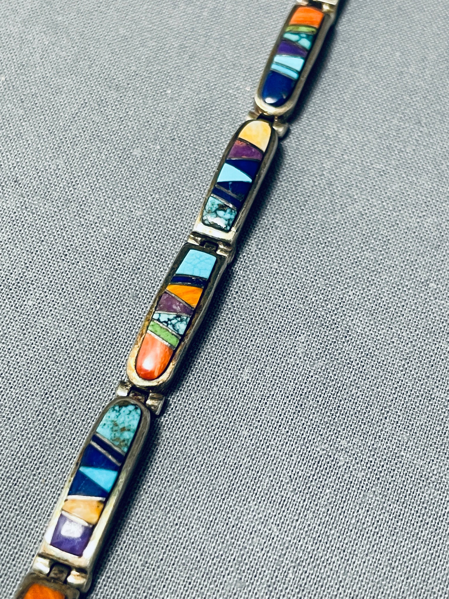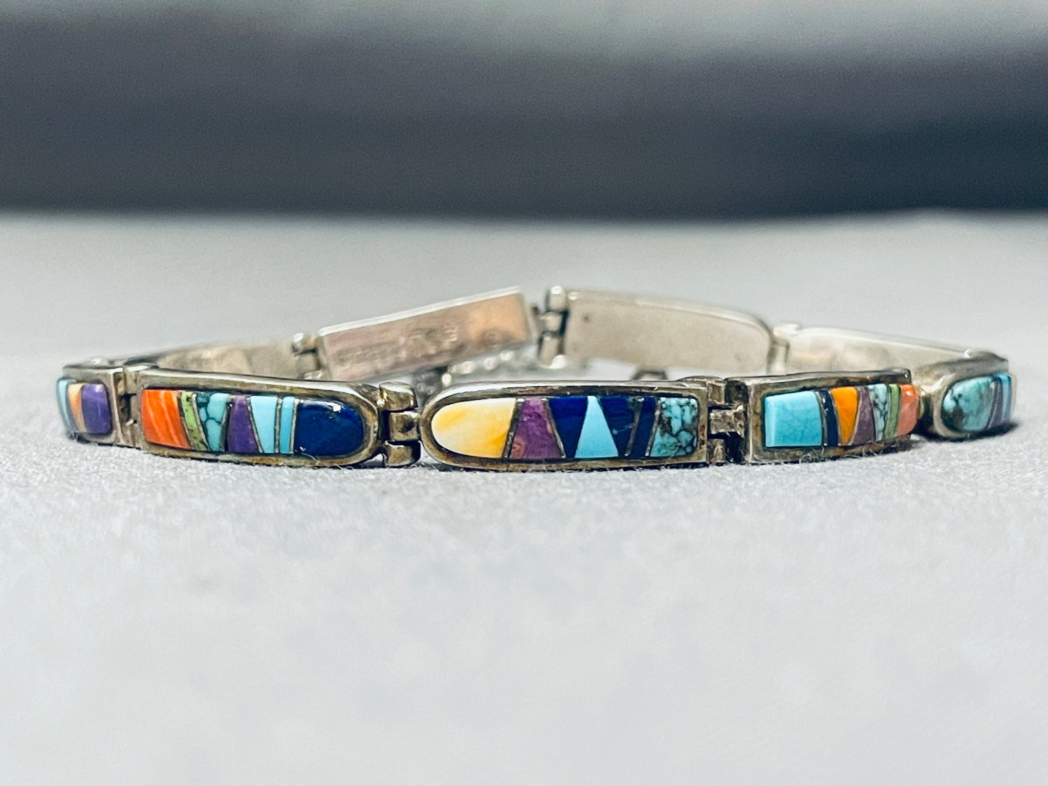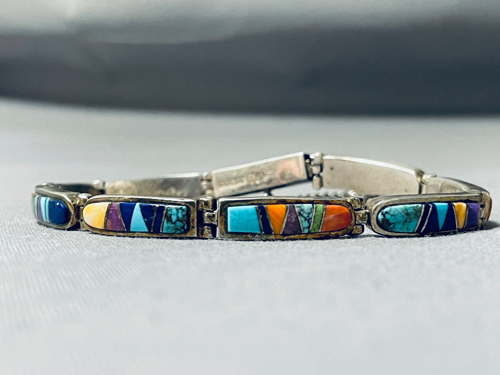 Extreme Intricacy Vintage Native American Navajo Turquoise Sterling Silver Clasp Bracelet