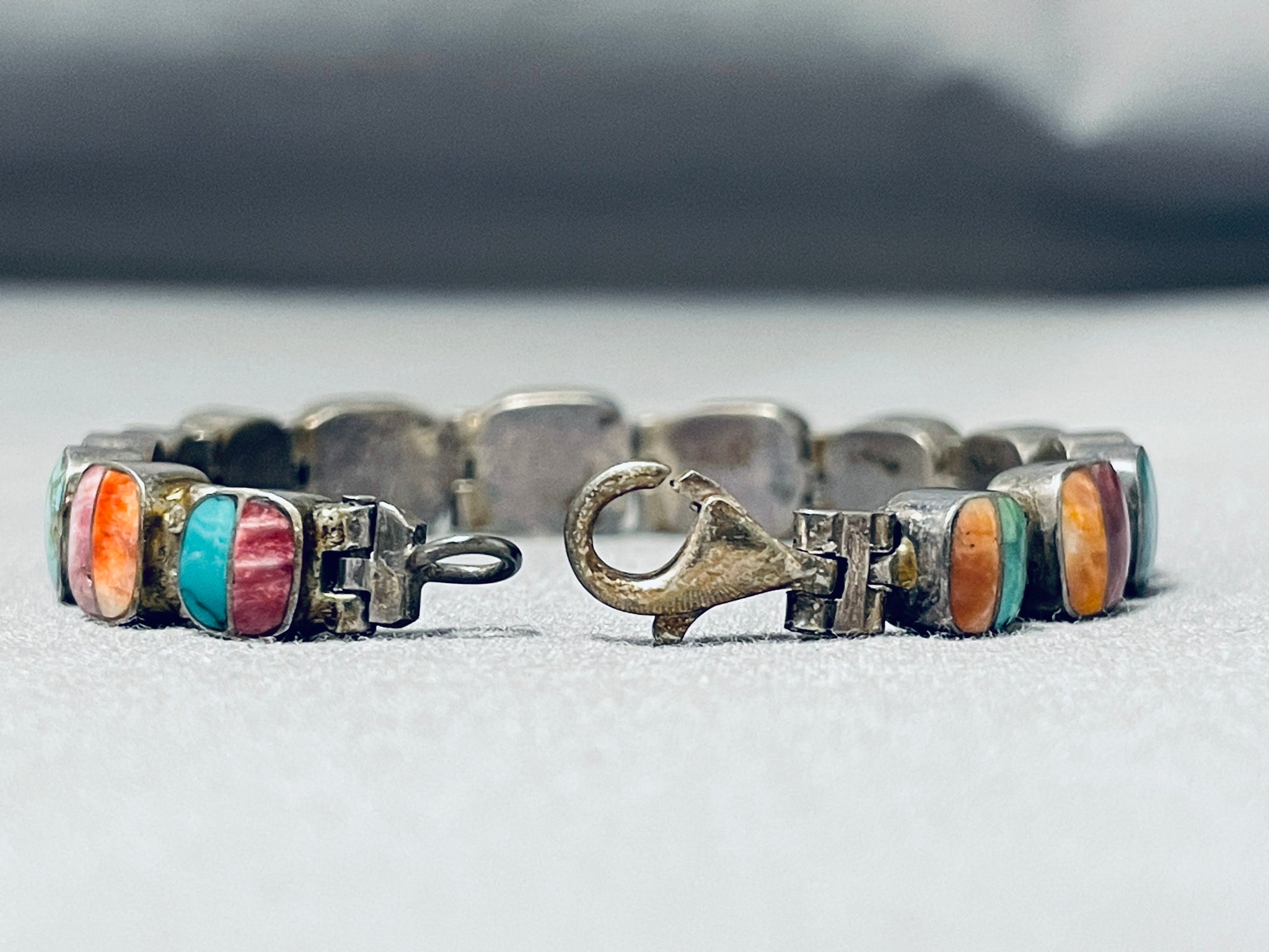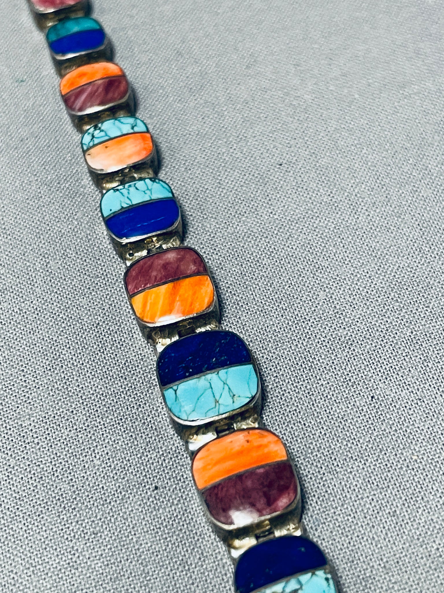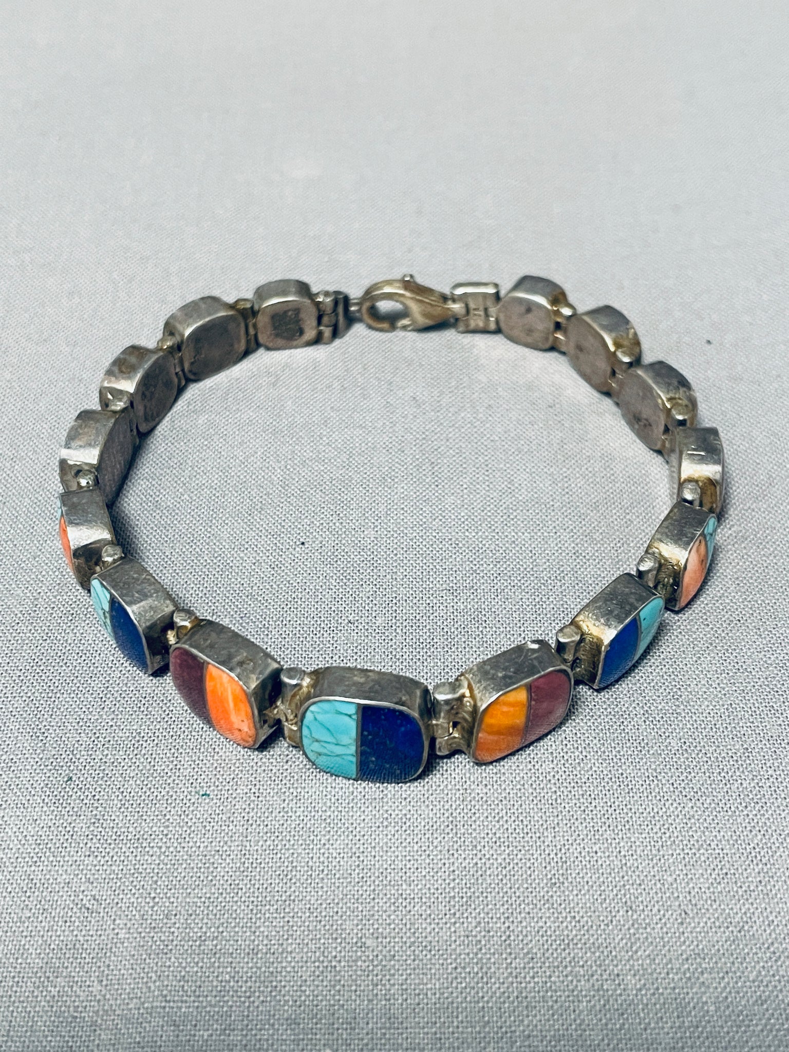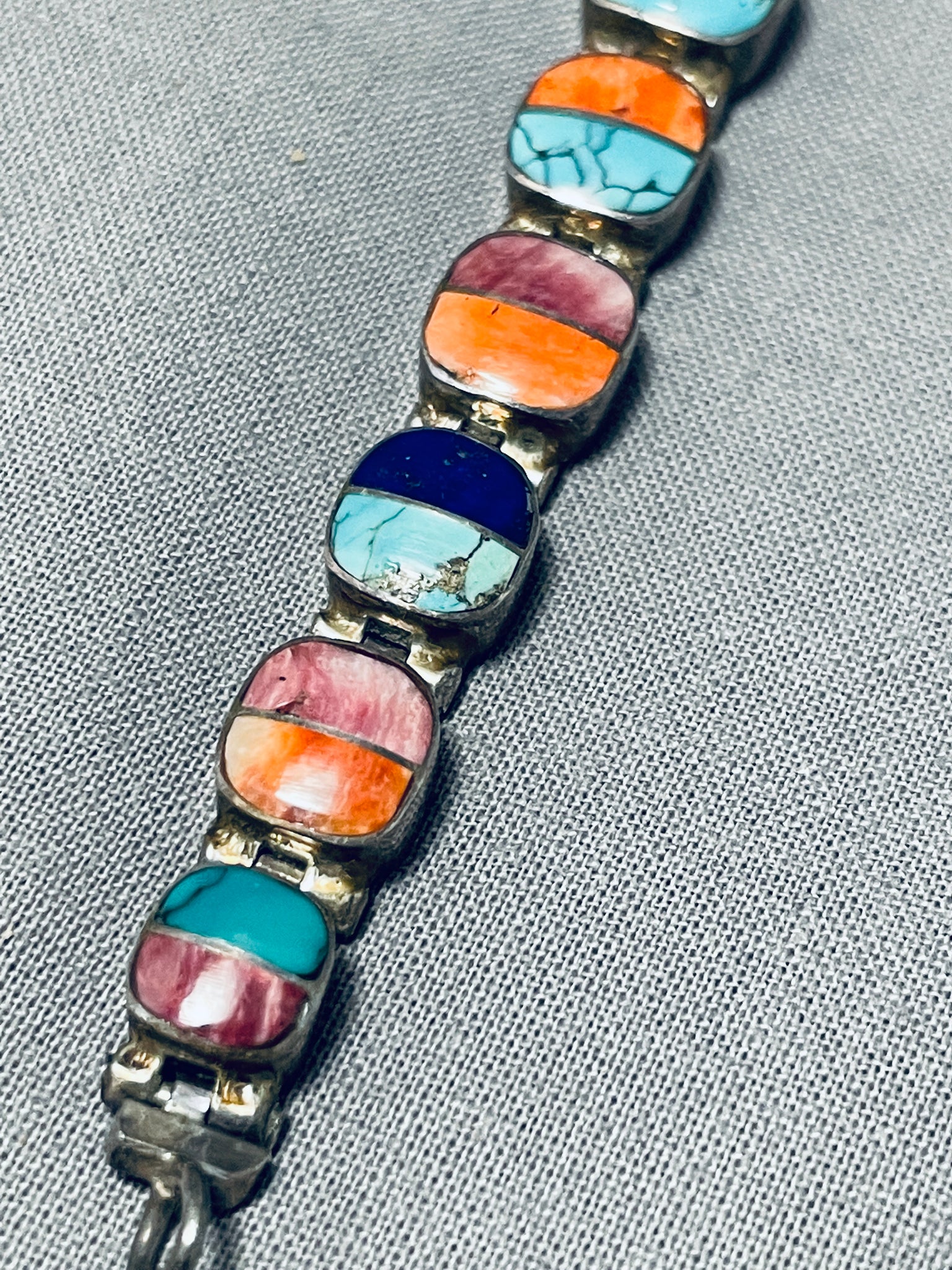 Extremely Detailed Vintage Native American Navajo Turquoise Sterling Silver Link Bracelet