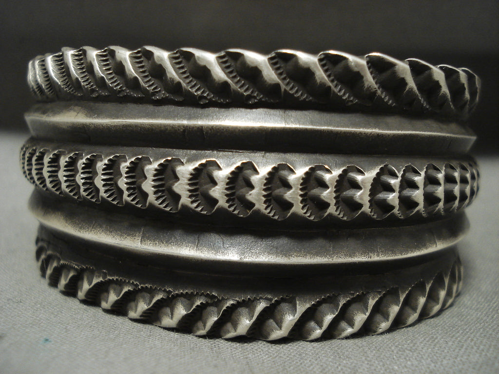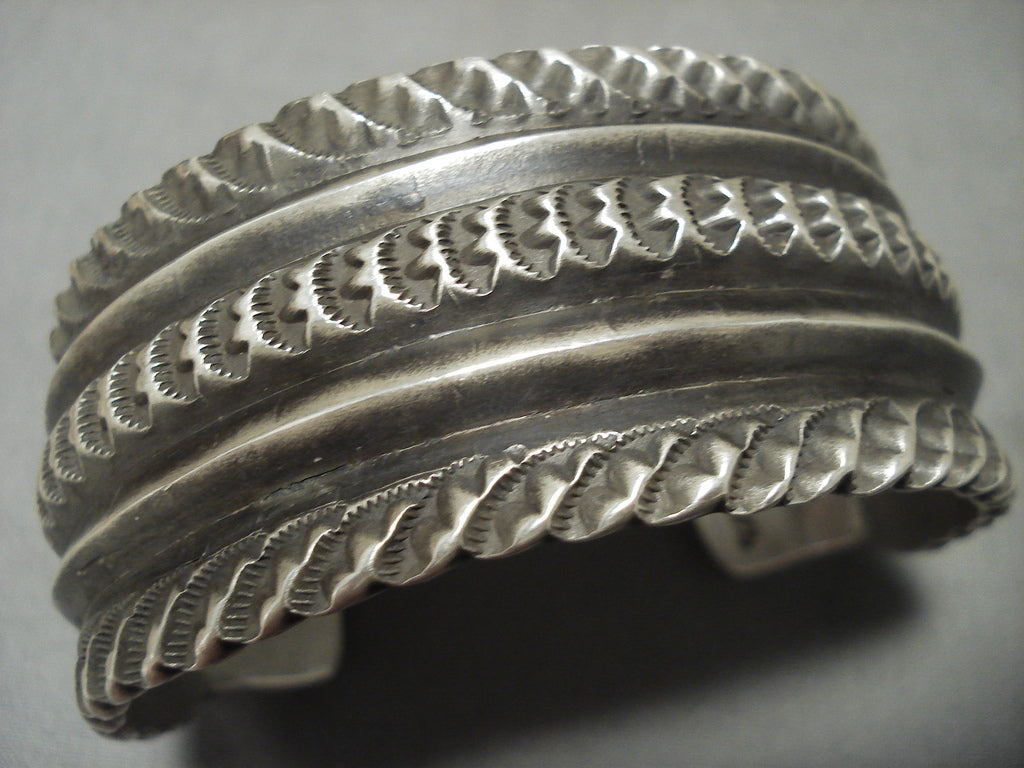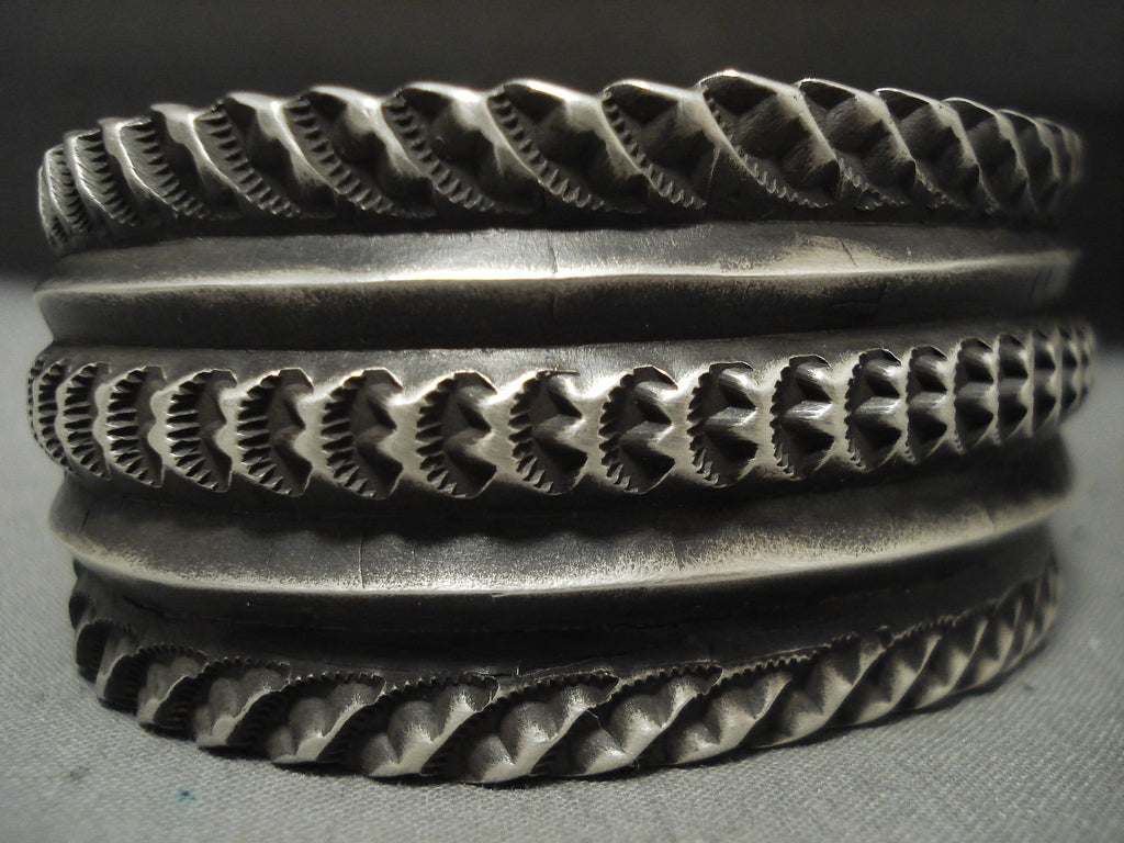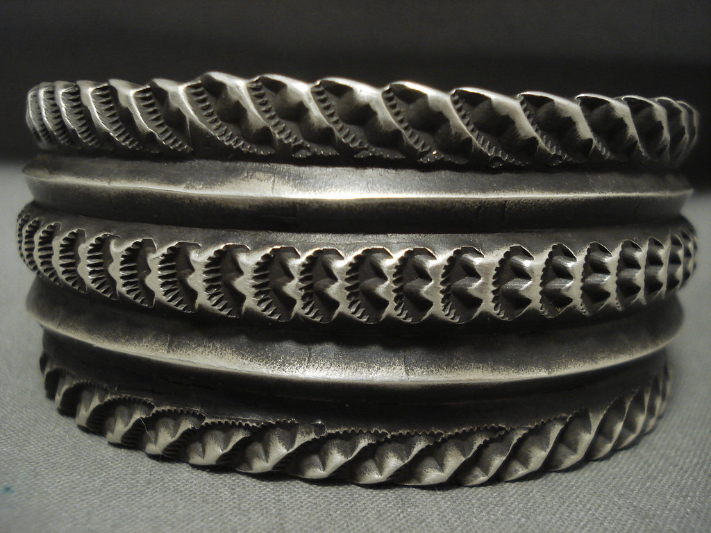 Extremely Detailed Vintage Navajo 112 Grams Native American Jewelry Silver Bracelet
