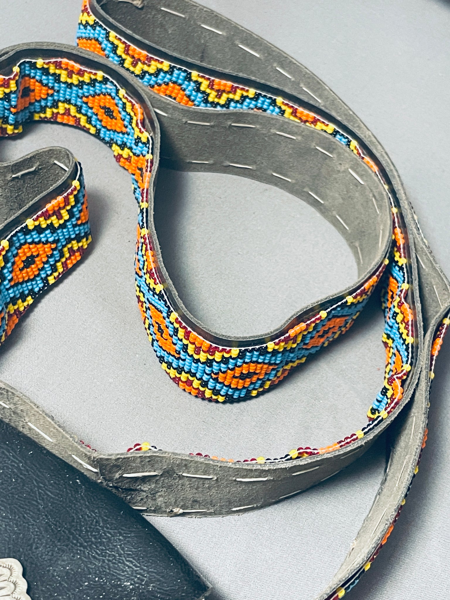 Extremely Rare Hand Beaded Vintage Native American Navajo Sterling Silver Concho Puse