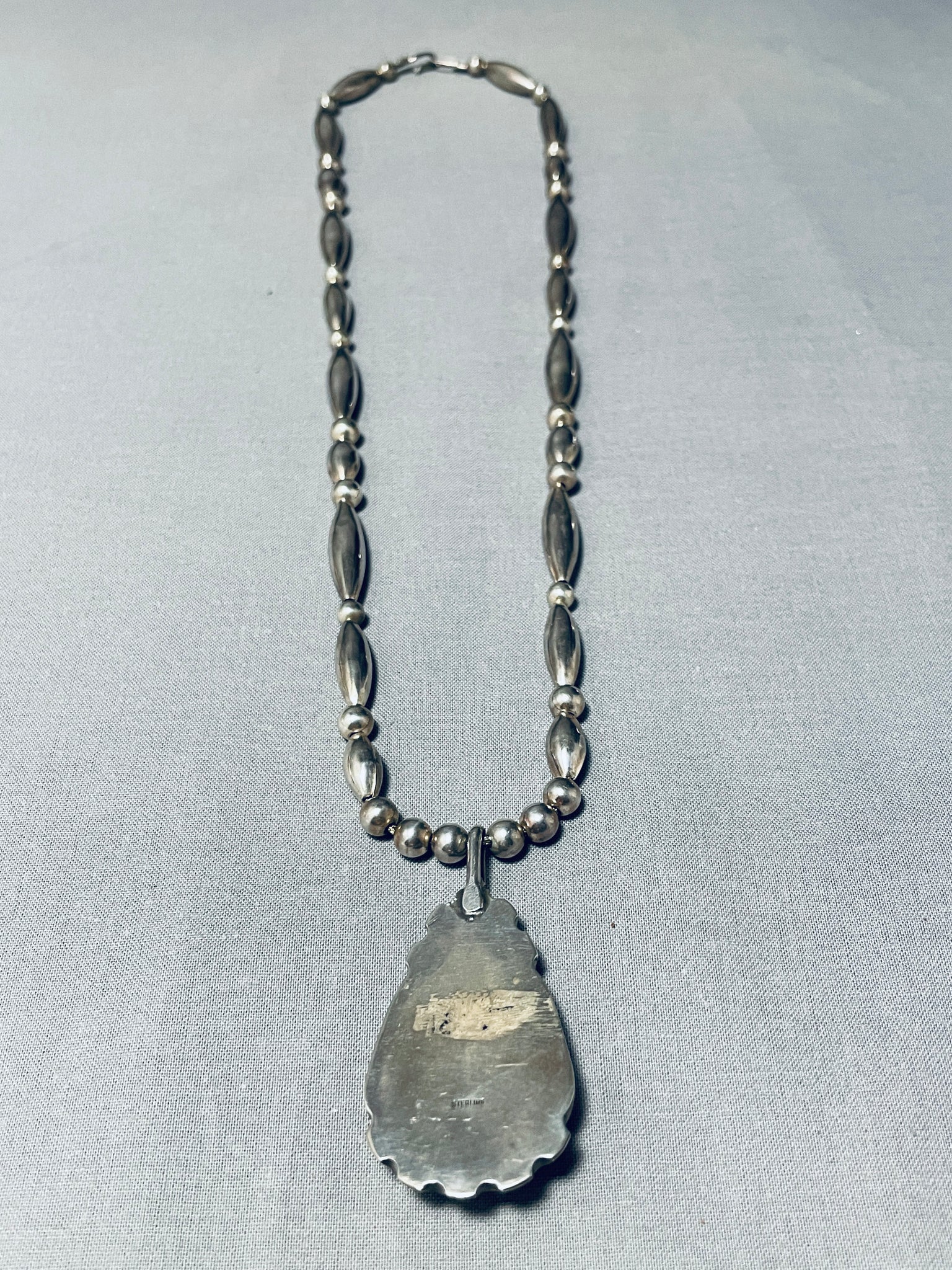 Extremely Rare Vintage Native American Navajo Damale Turquoise Sterling Silver Necklace