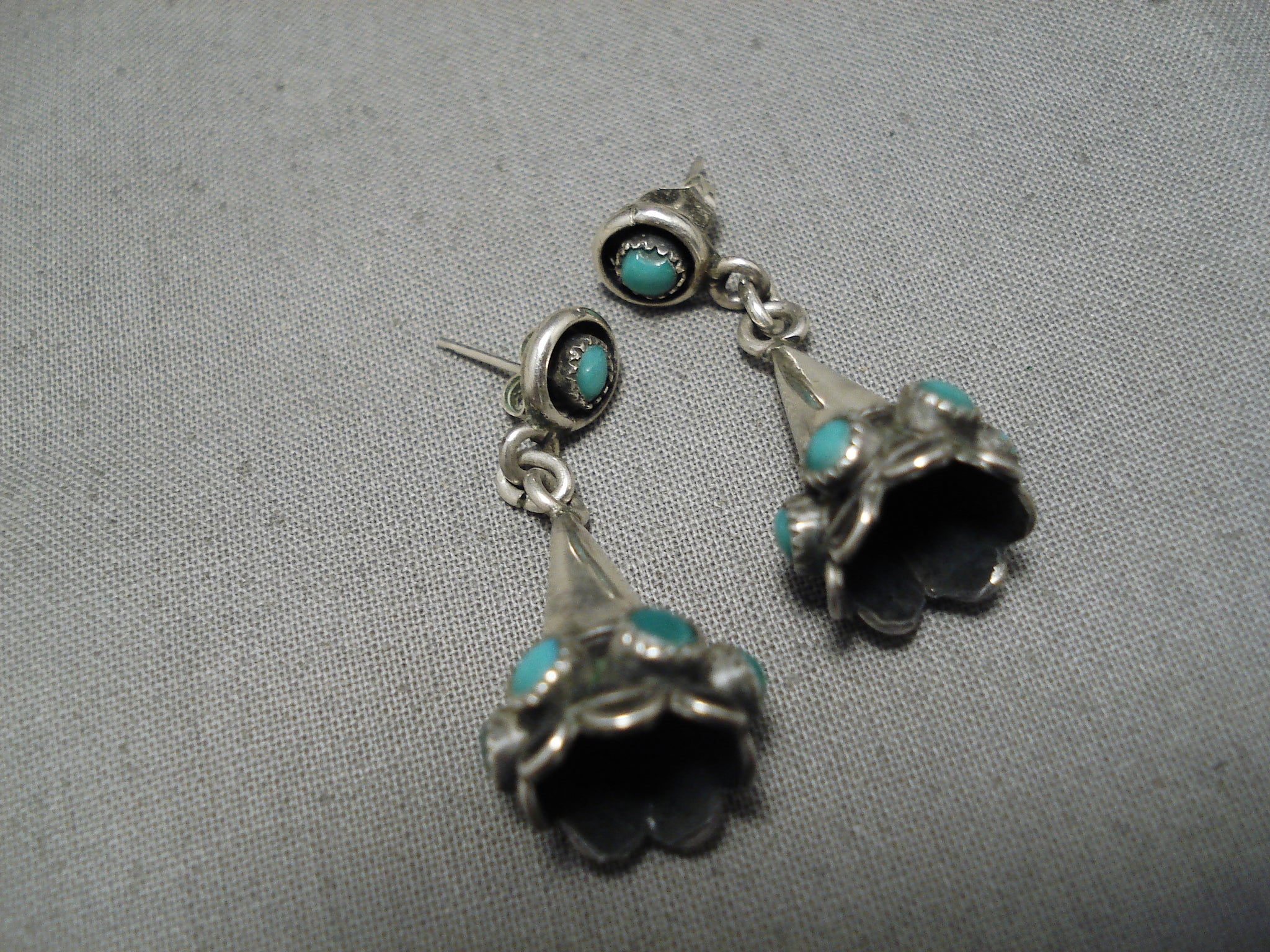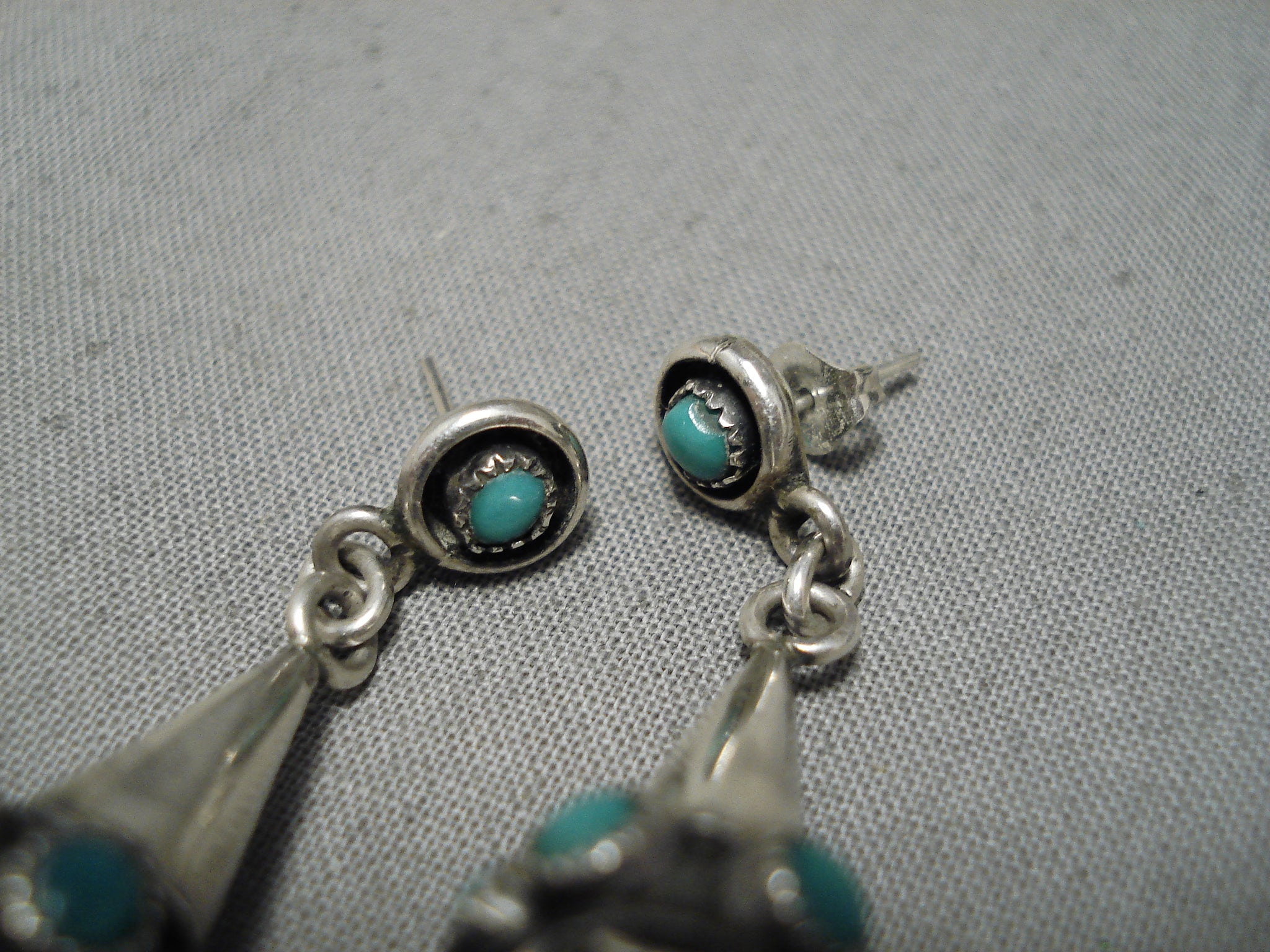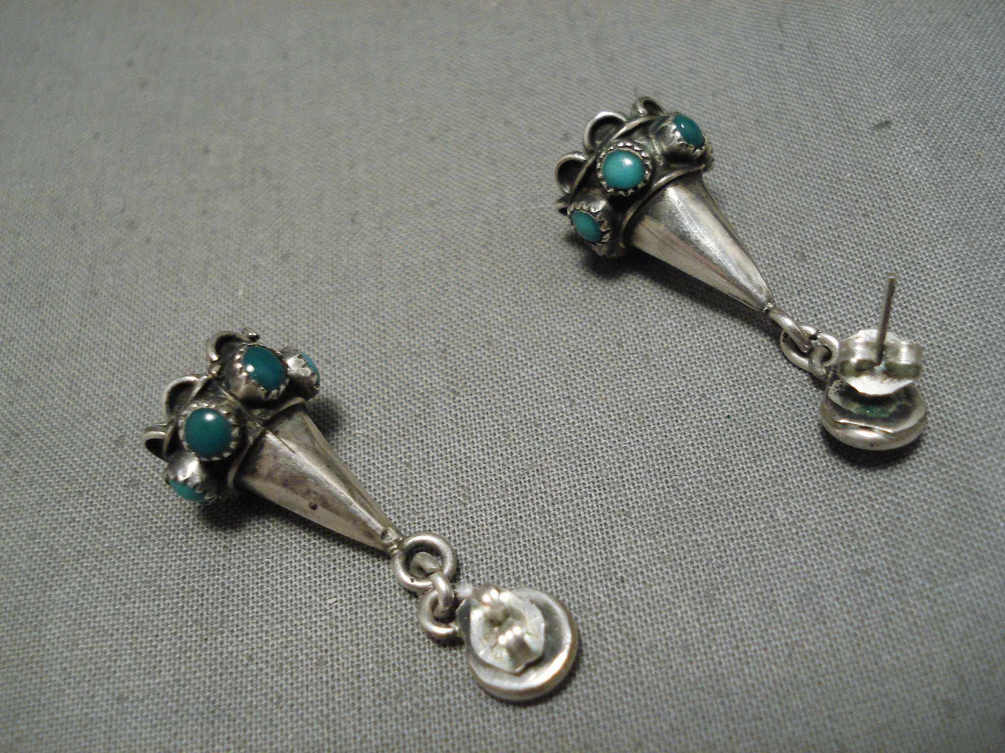 Extremely Rare Vintage Native American Navajo Snake Eyes Turquoise Sterling Silver Cone Earrings