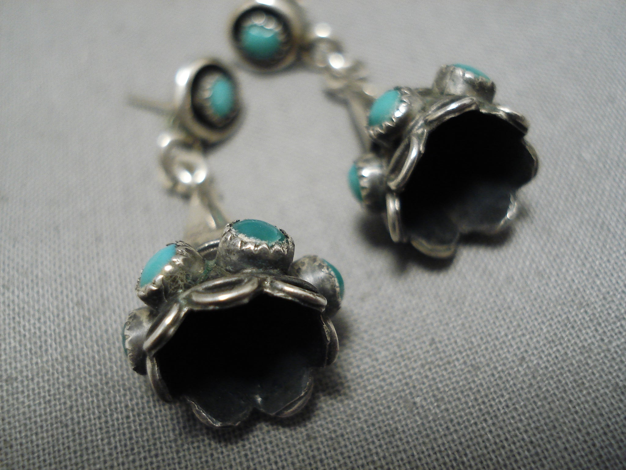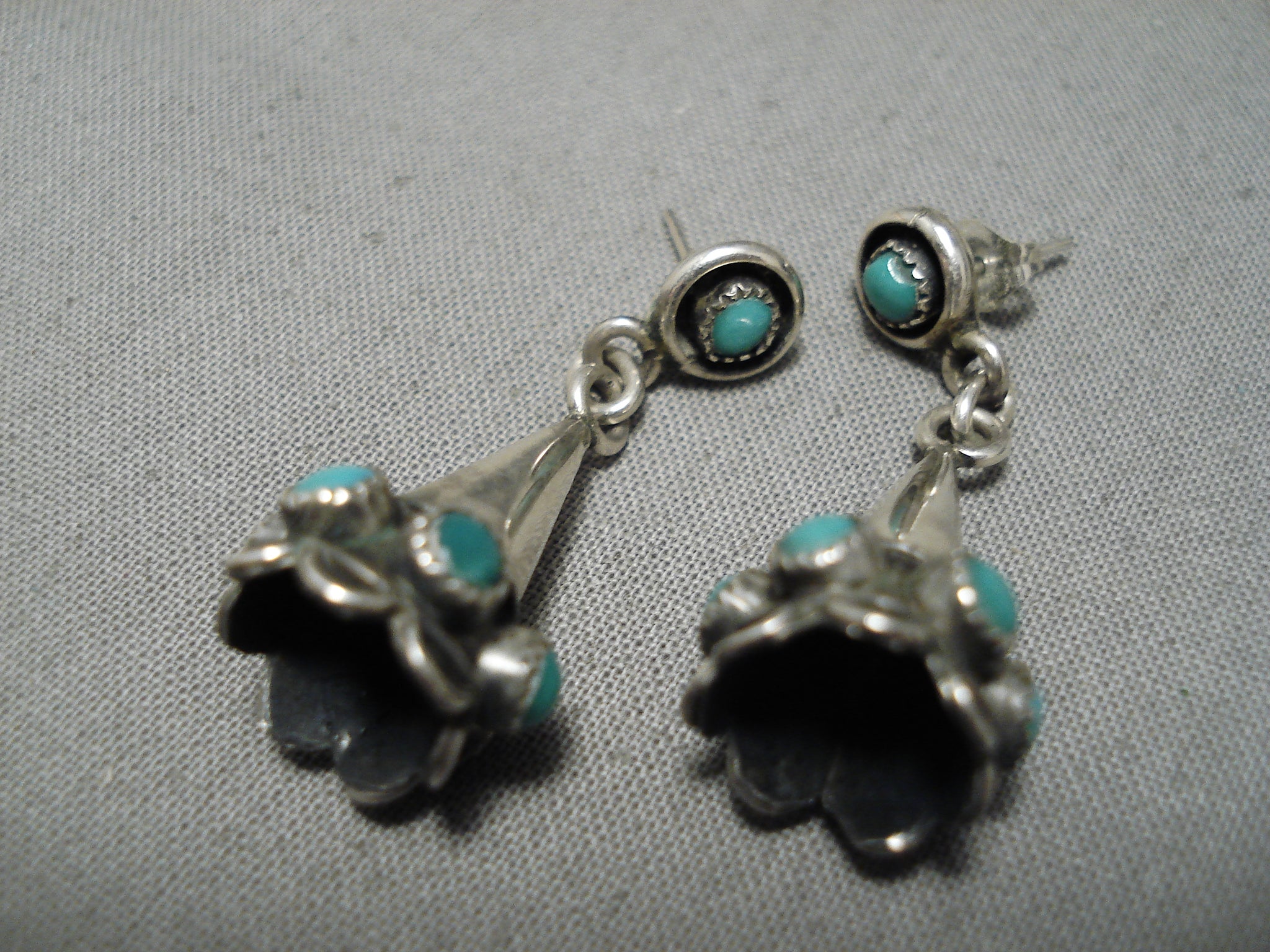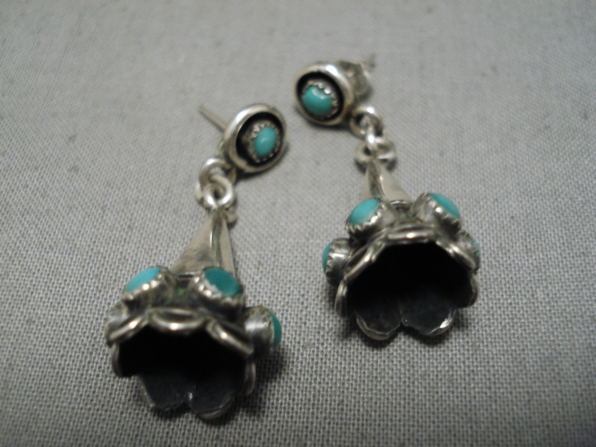 Extremely Rare Vintage Native American Navajo Snake Eyes Turquoise Sterling Silver Cone Earrings