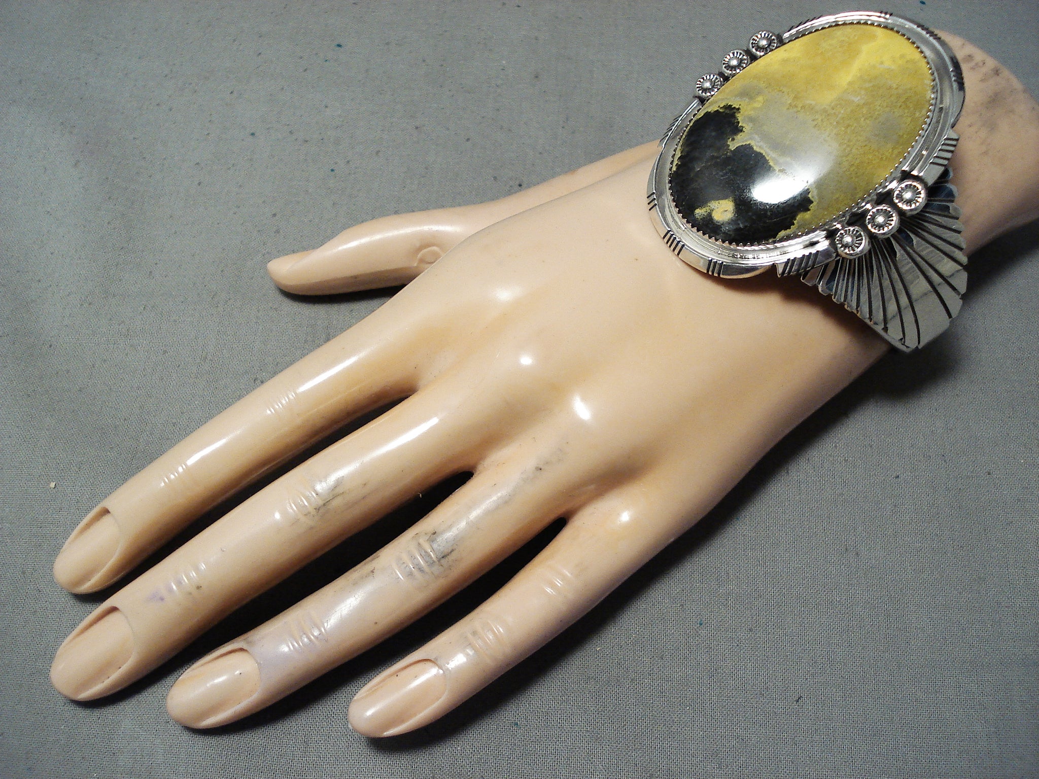 Eye-catching Navajo Honey Jasper Sterling Silver Bracelet Native American