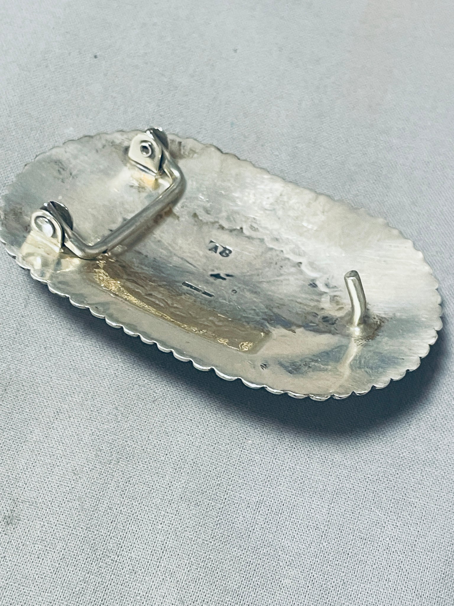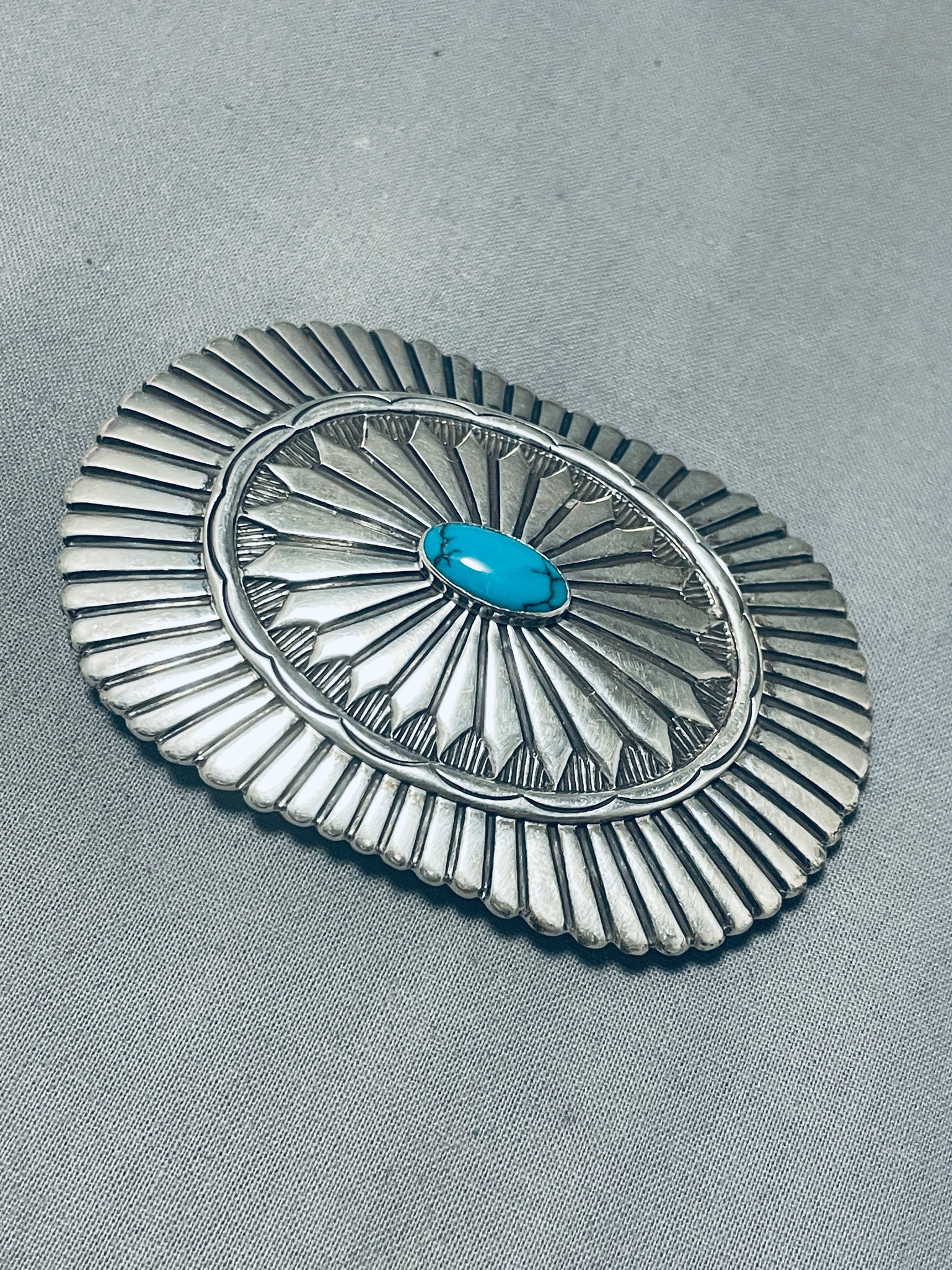 Eye Catching Vintage Native American Navajo Blue Diamond Turquoise Sterling Silver Buckle