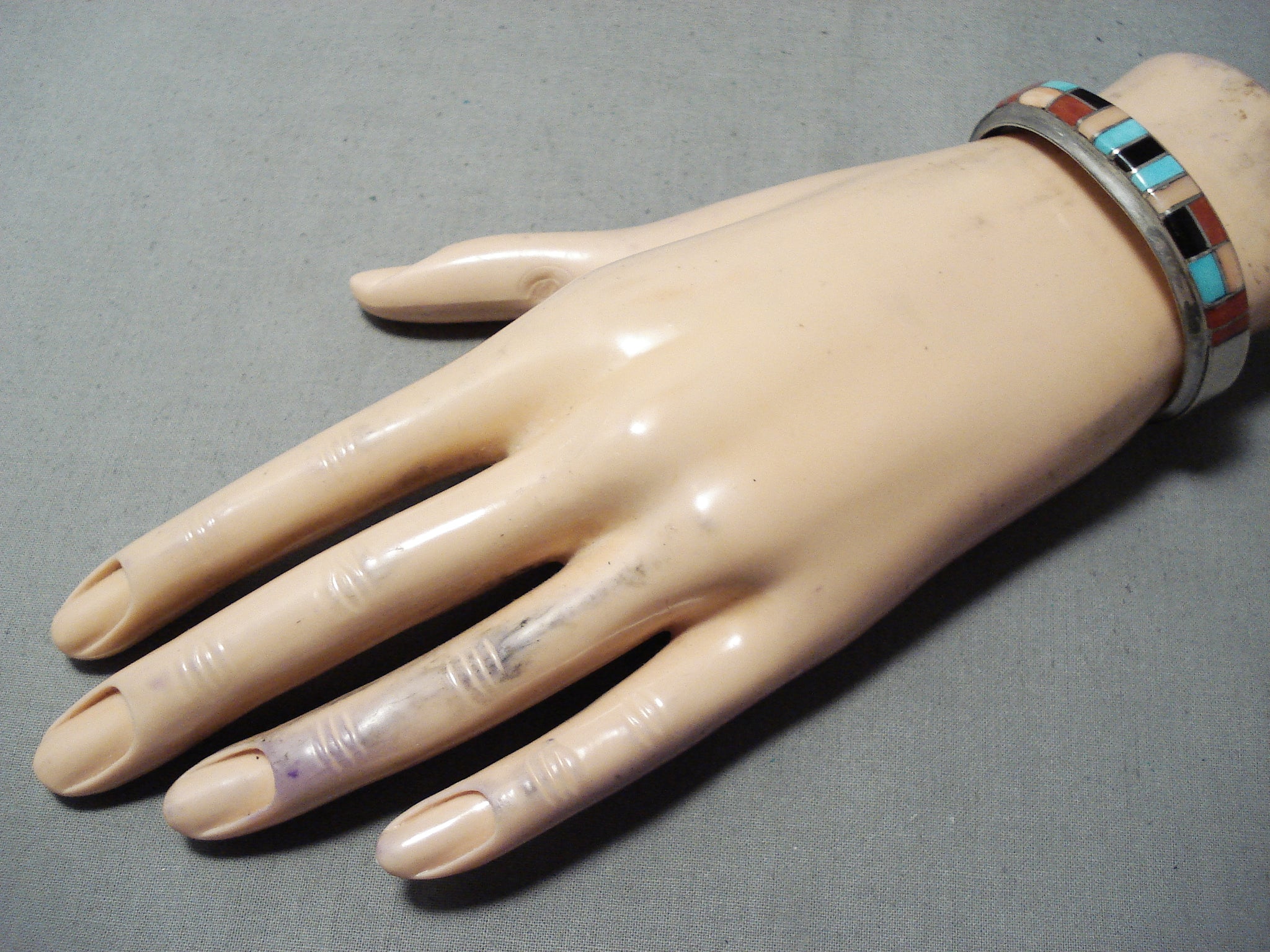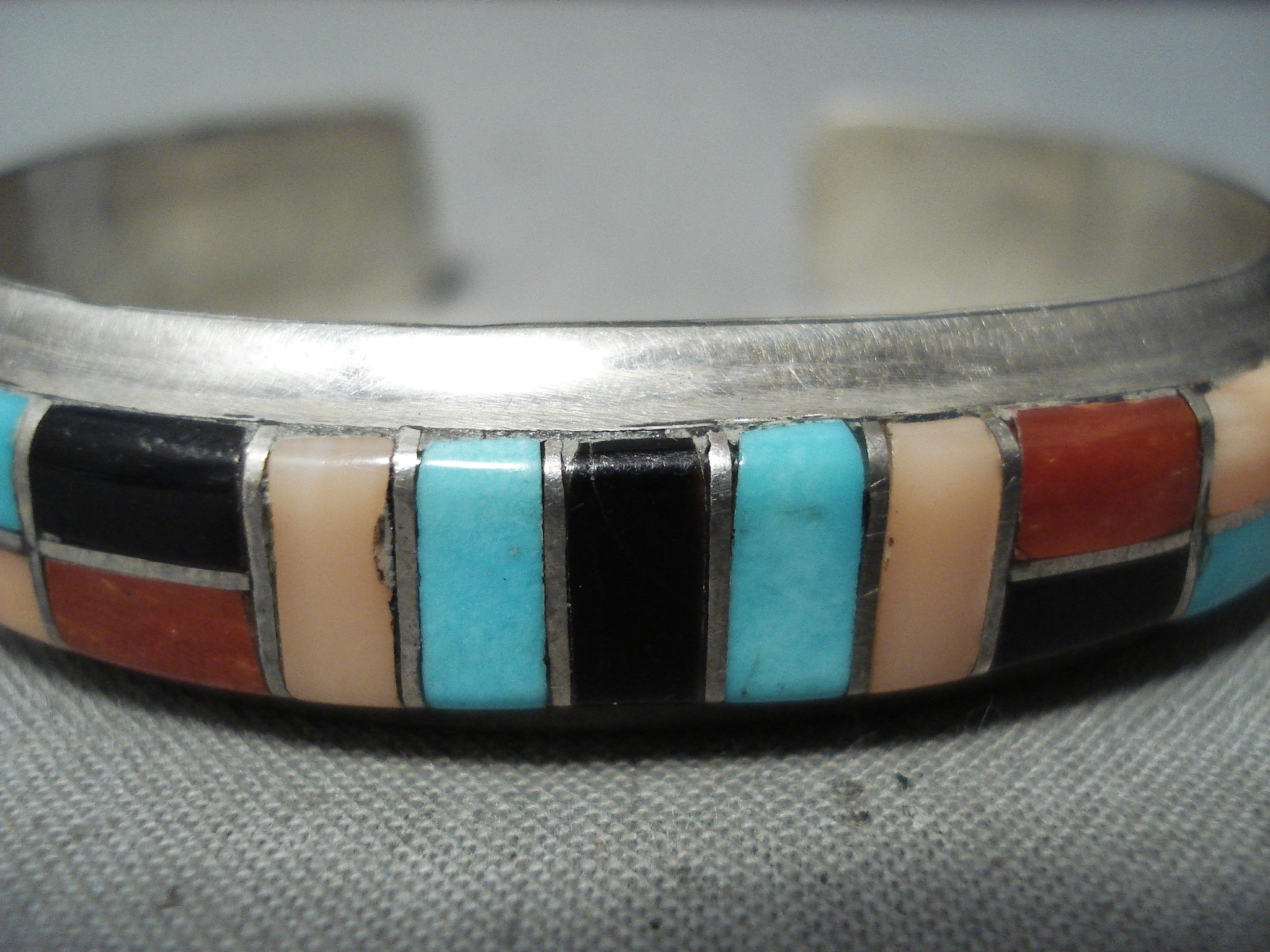 Eye-catching Vintage Native American Zuni Turquoise Sterling Silver Bracelet Old