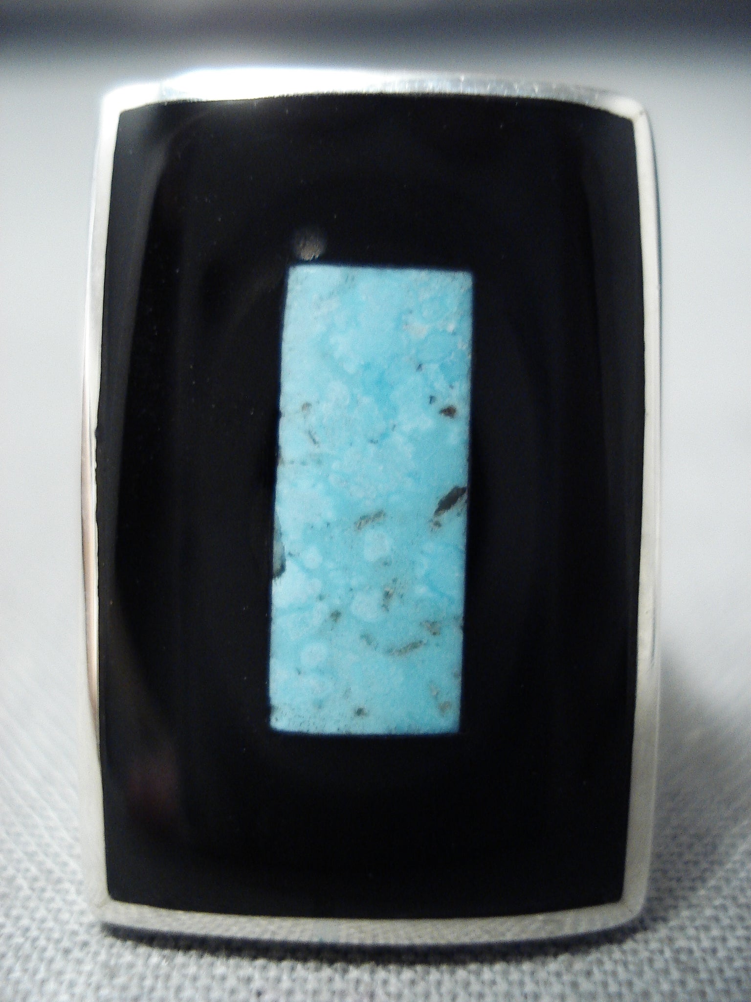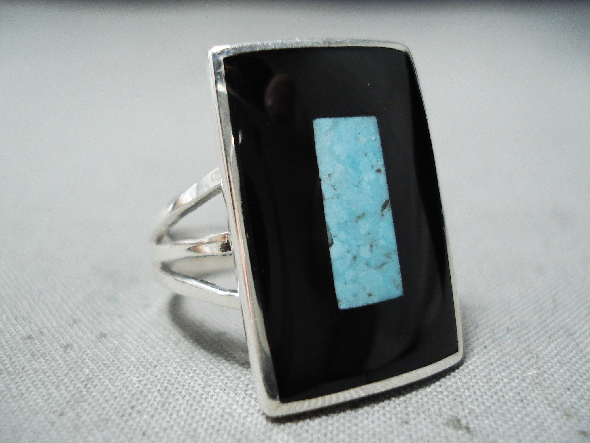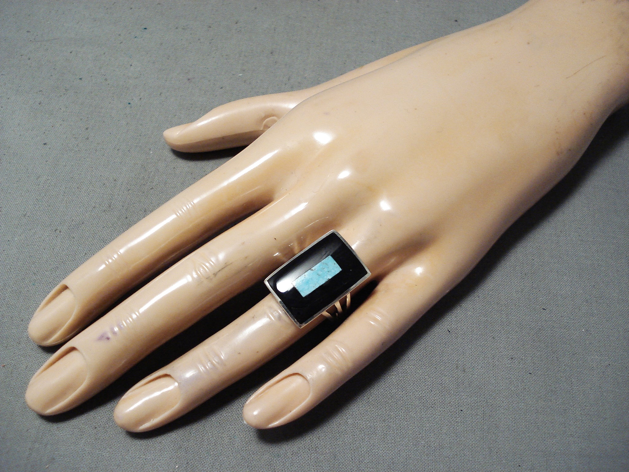 Eye Catching Zuni Native American Turquoise Jet Sterling Silver Ring