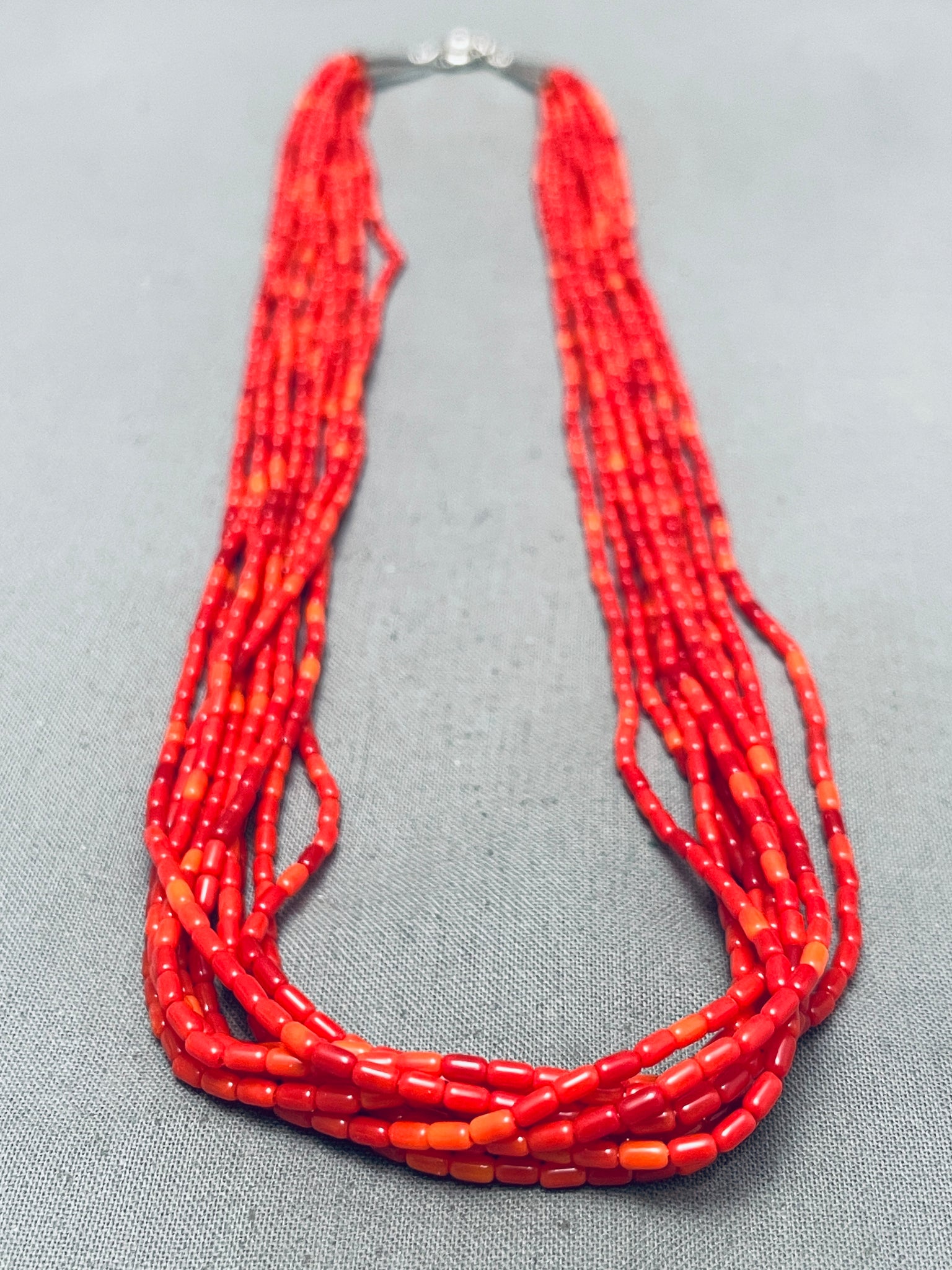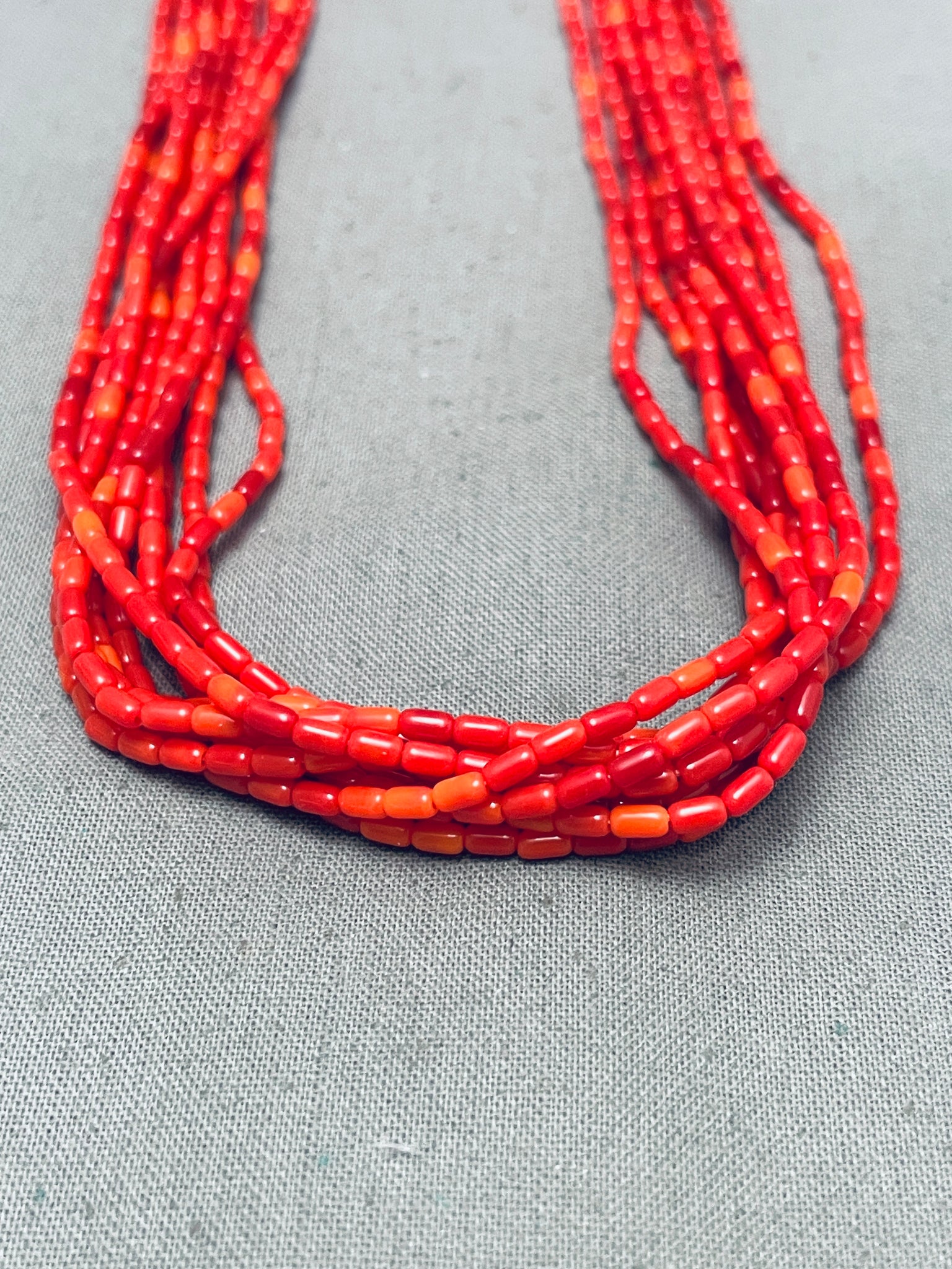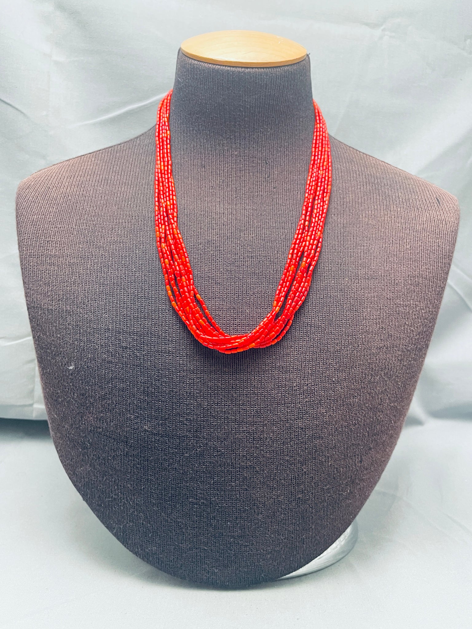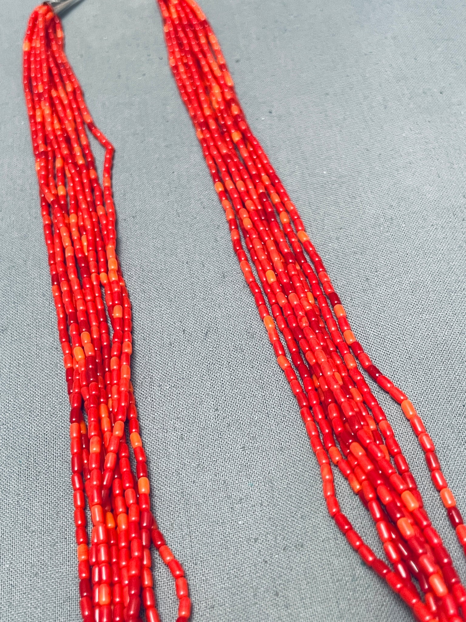 Fab Native American Navajo Tubed Coral Sterling Silver Heishi Necklace