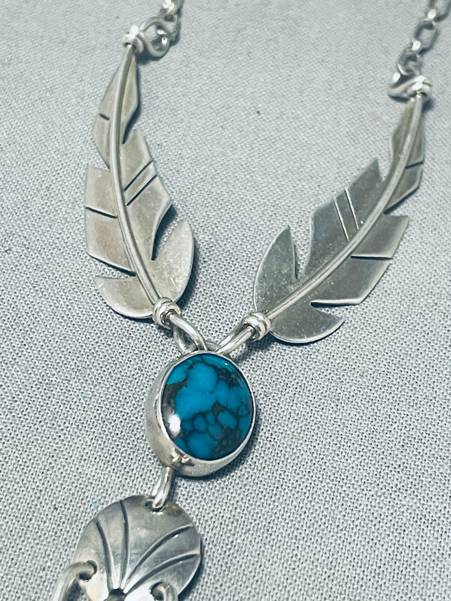 Fabulous Native American Navajo Bisbee Turquoise Sterling Silver Necklace