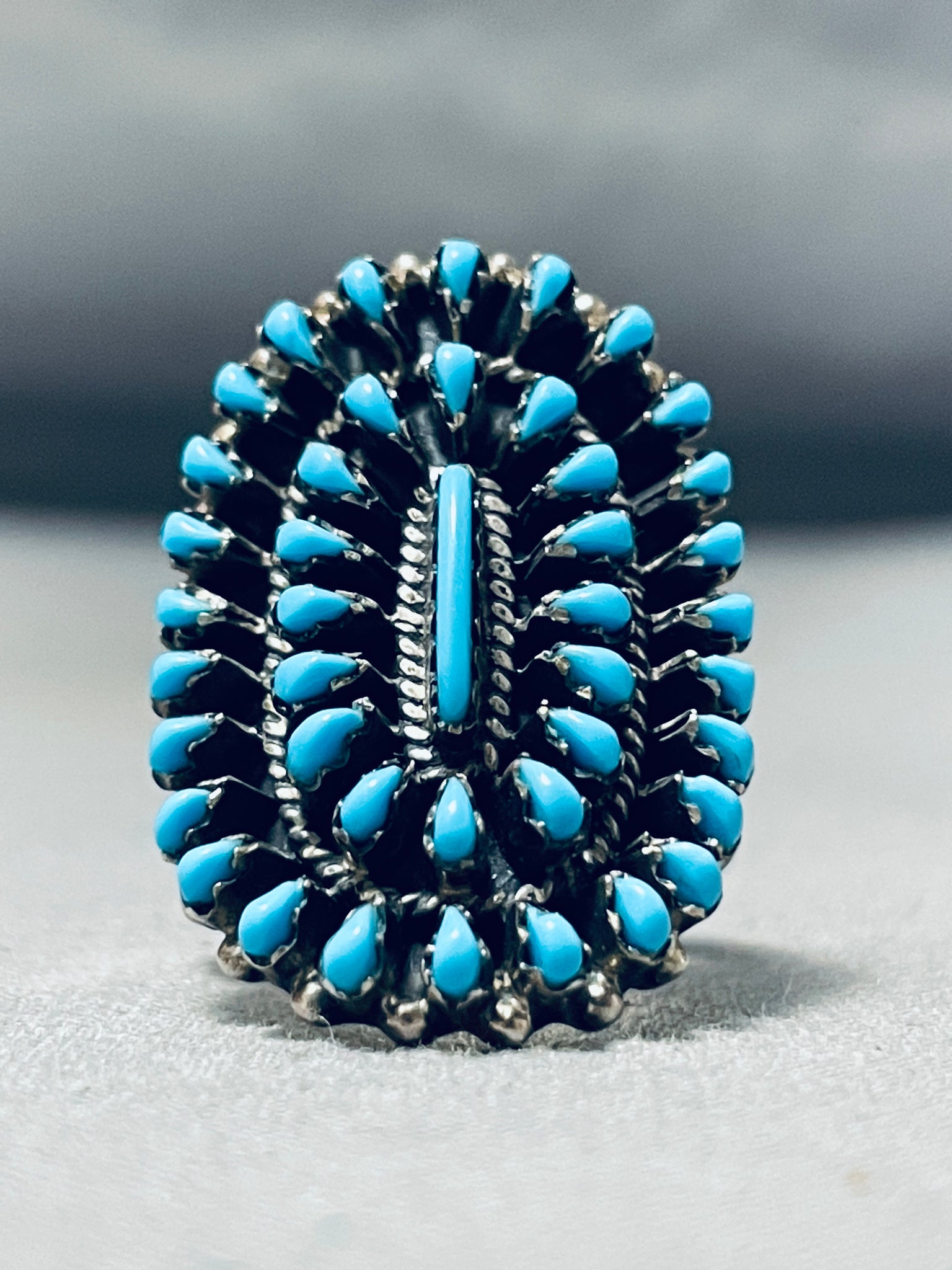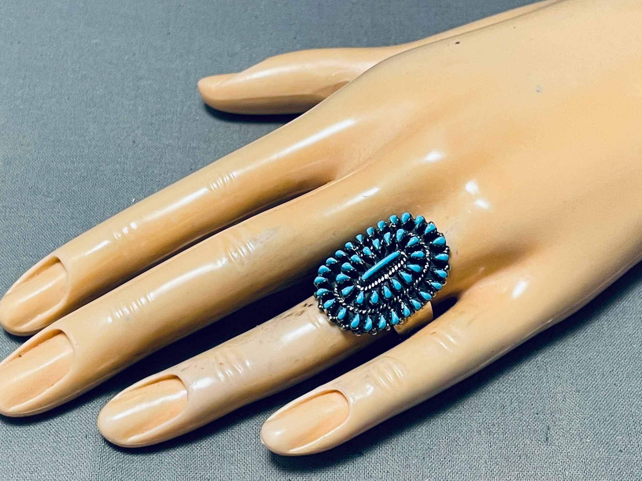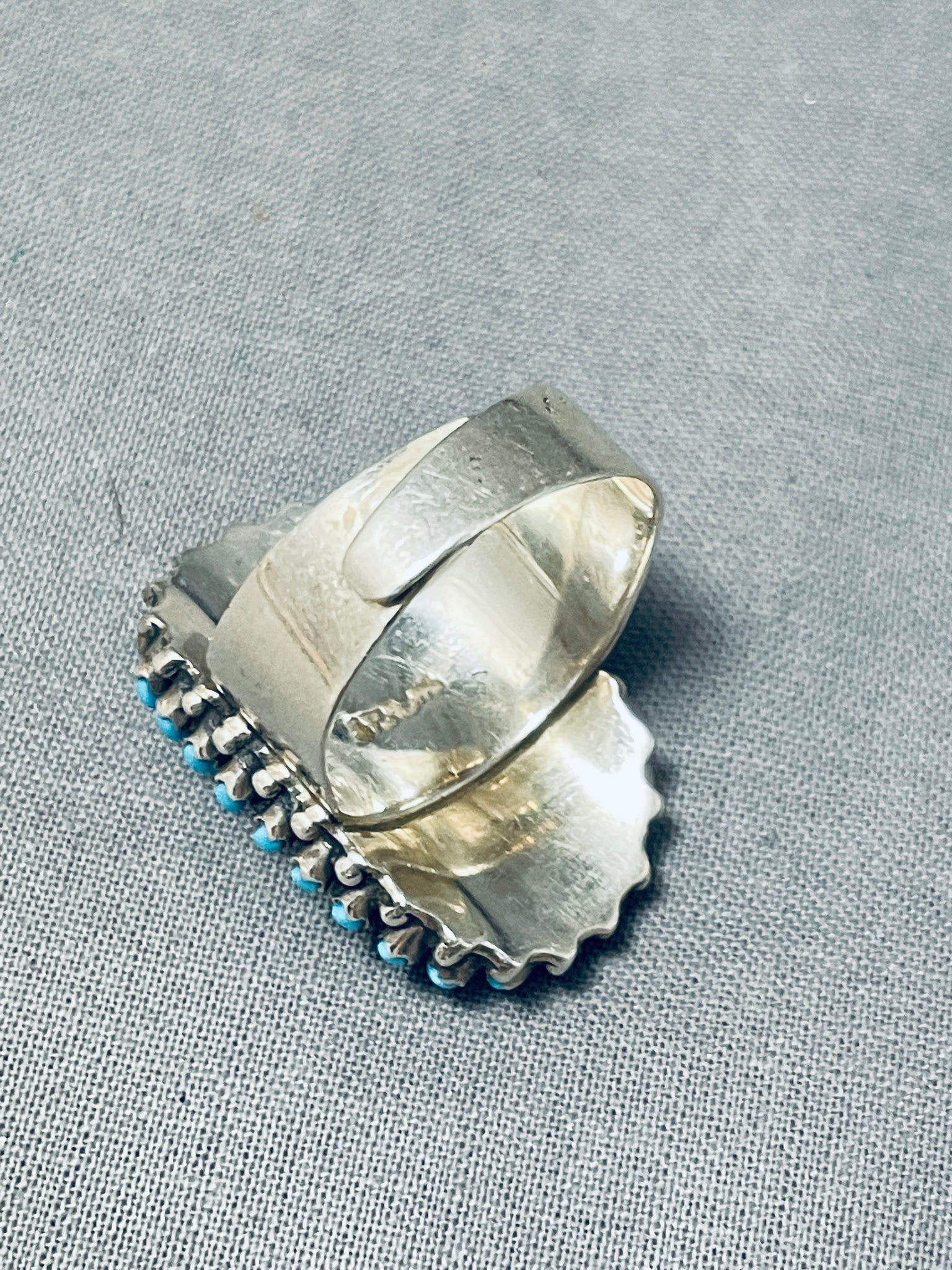 Fabulous Native American Navajo Sleeping Beauty Turquoise Cluster Sterling Silver Large Ring