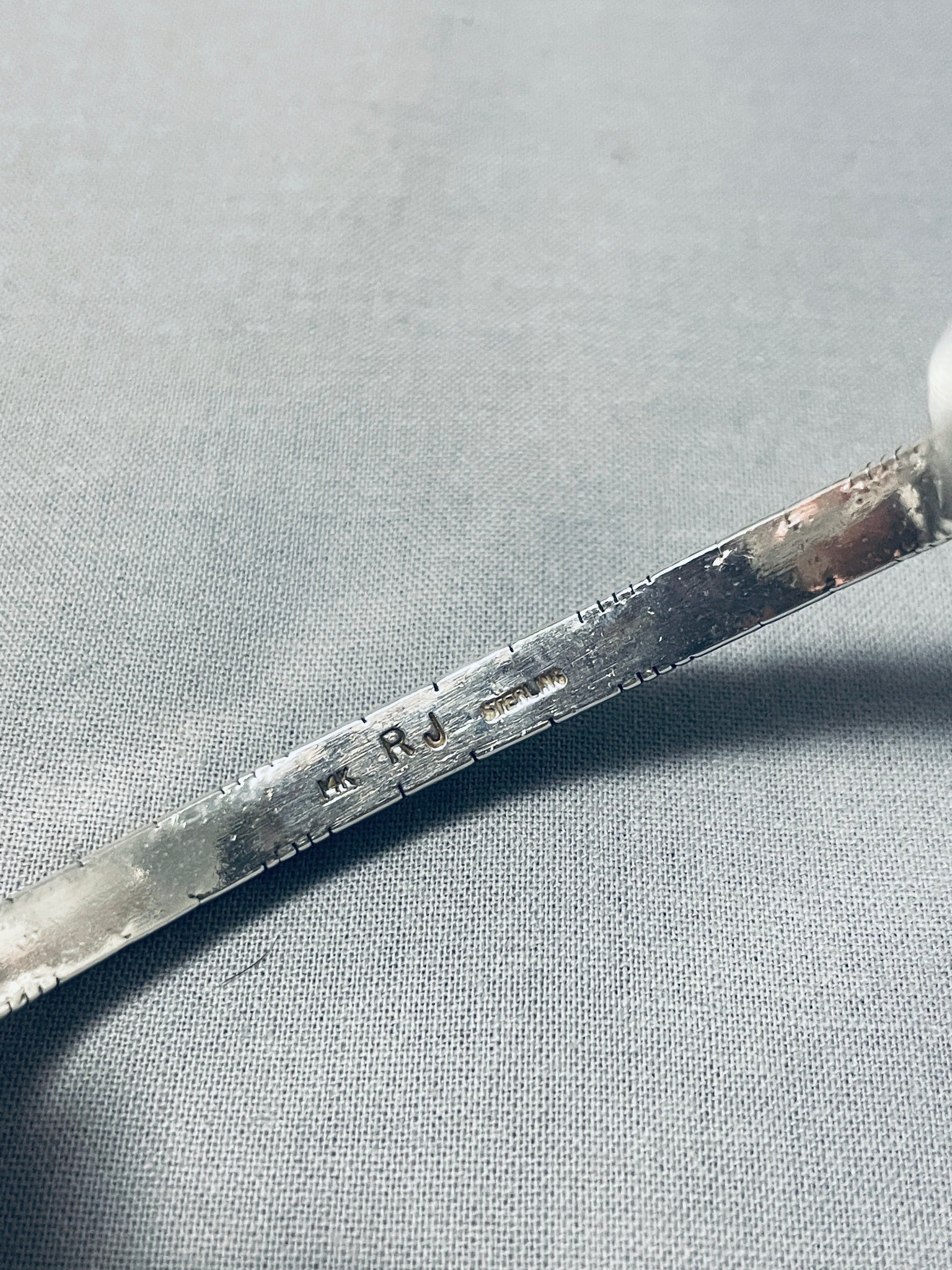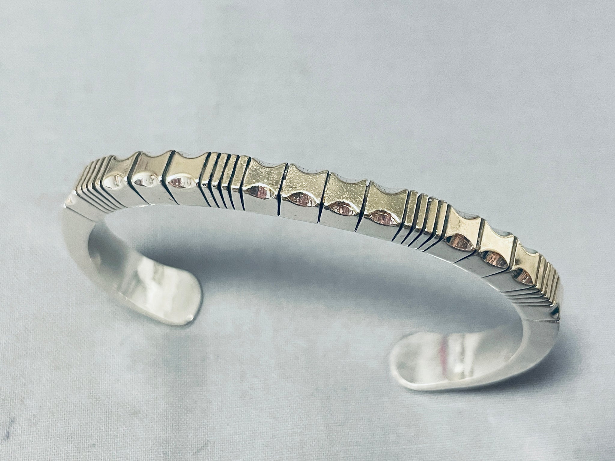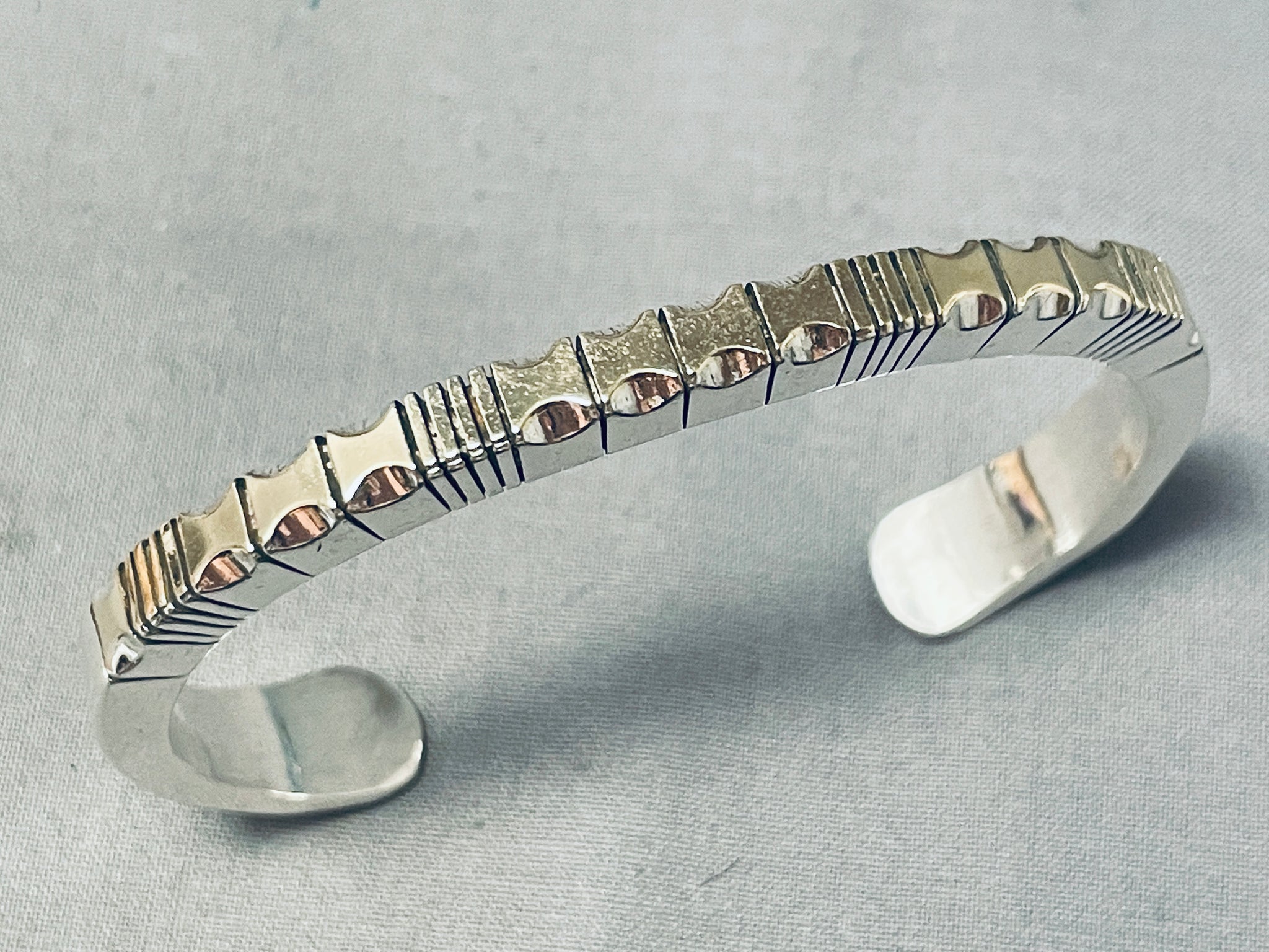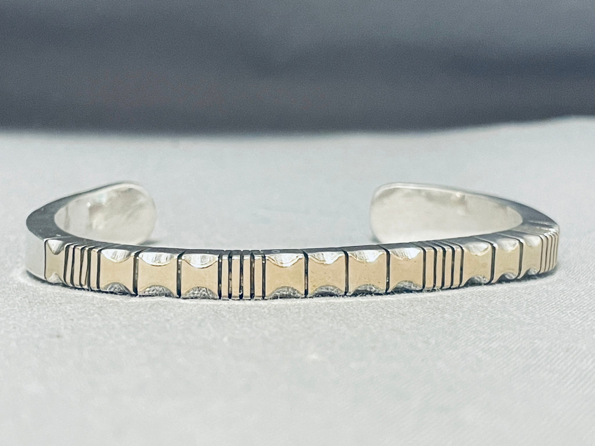 Fabulous Native American Navajo Sterling Silver And 14k Gold Signed Bracelet