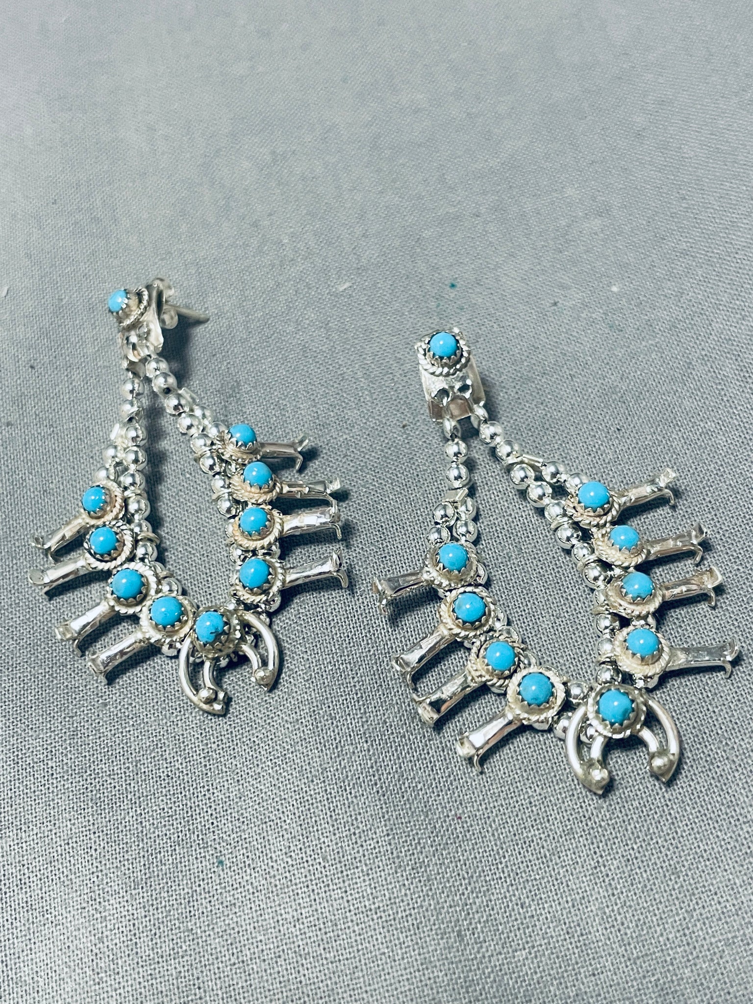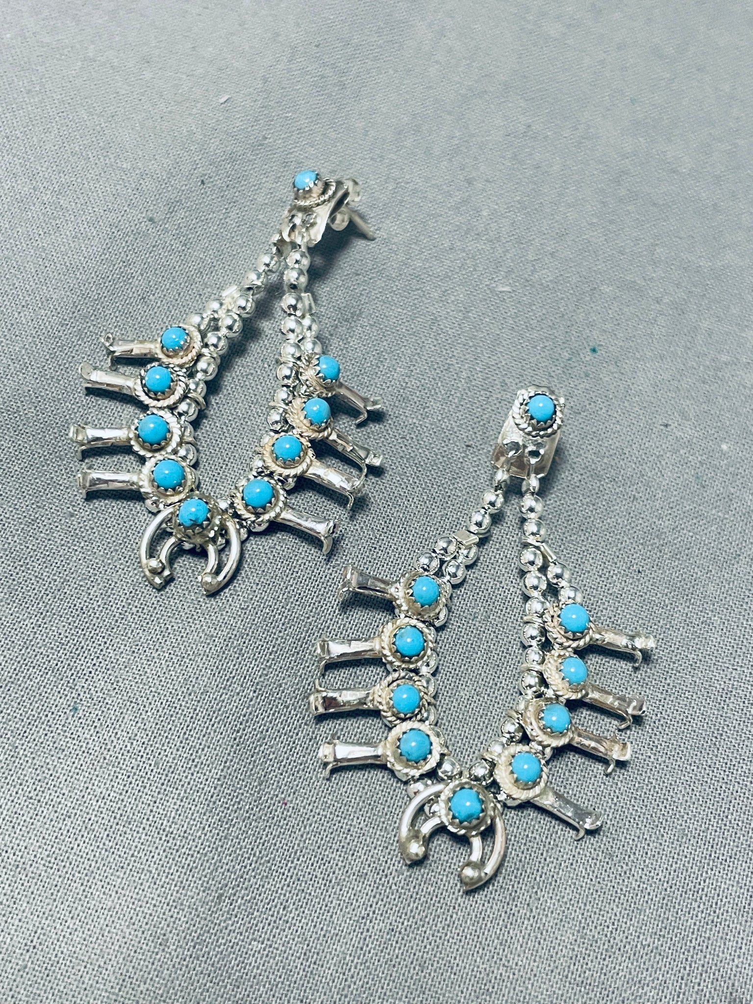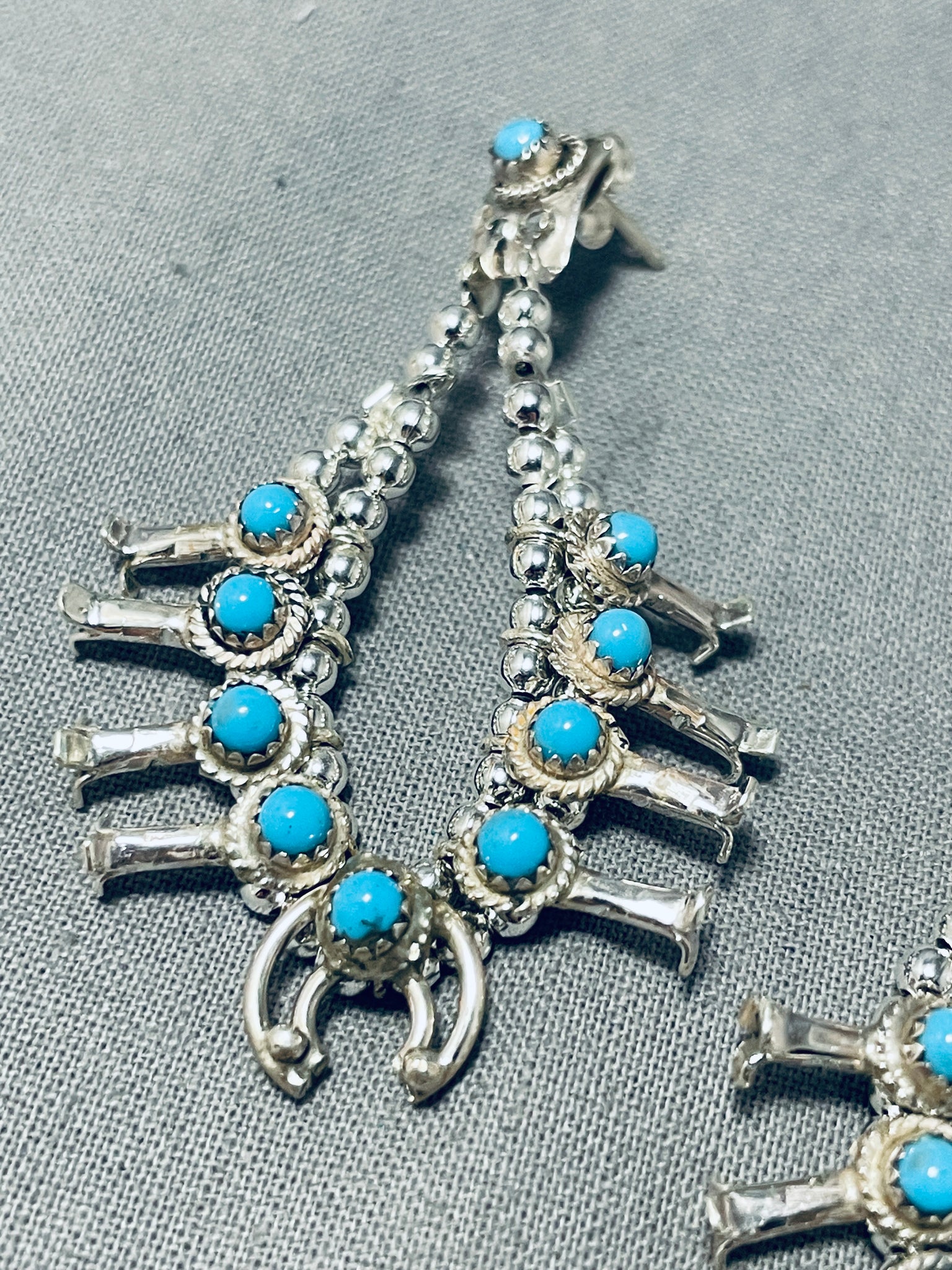 Fabulous Native American Navajo Turquoise Sterling Silver Squash Earrings