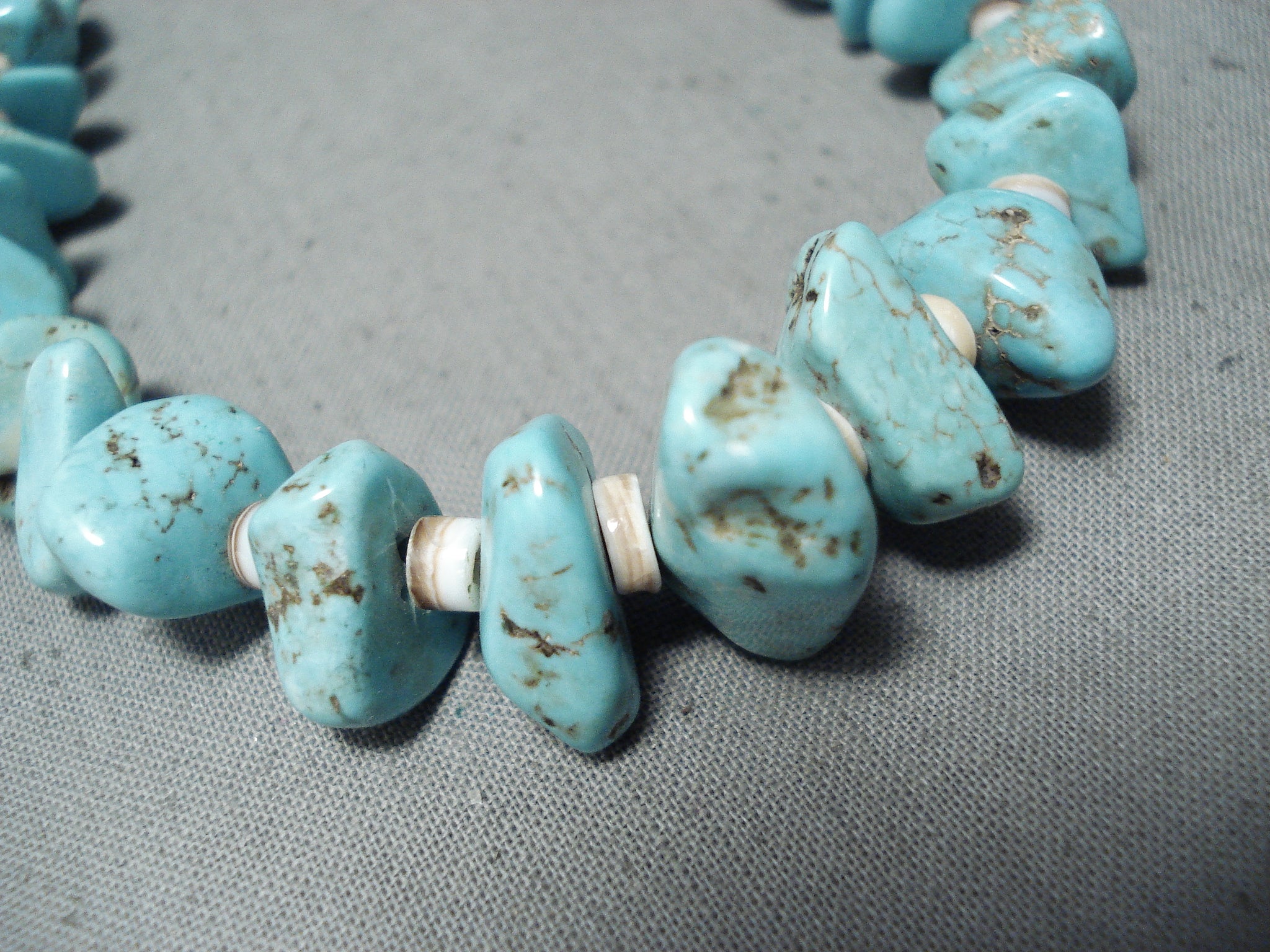 Fabulous Navajo Kingman Turquoise Sterling Silver Necklace Native American
