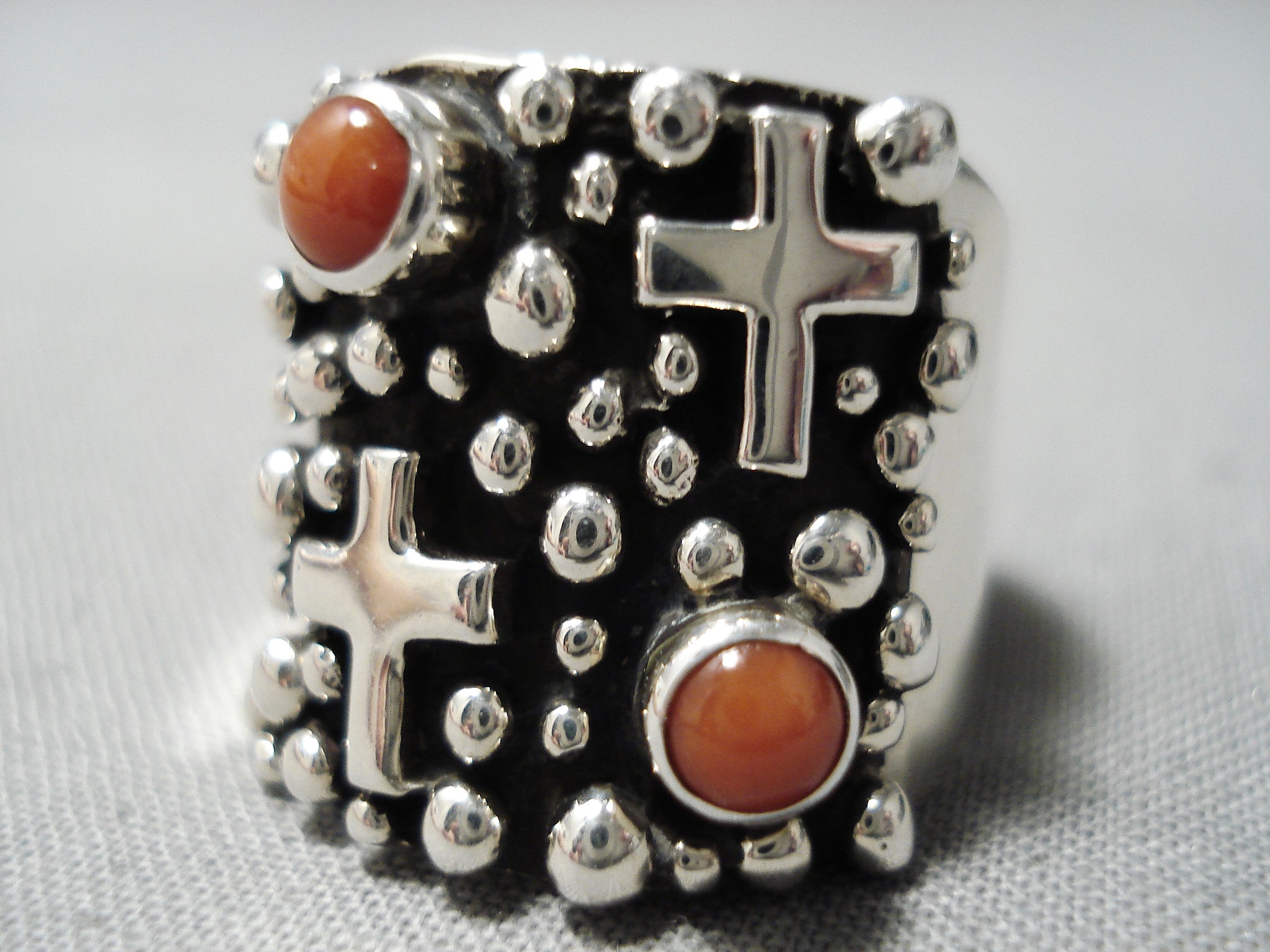 Fabulous Santo Domingo Coral Sterling Silver Ring Native American