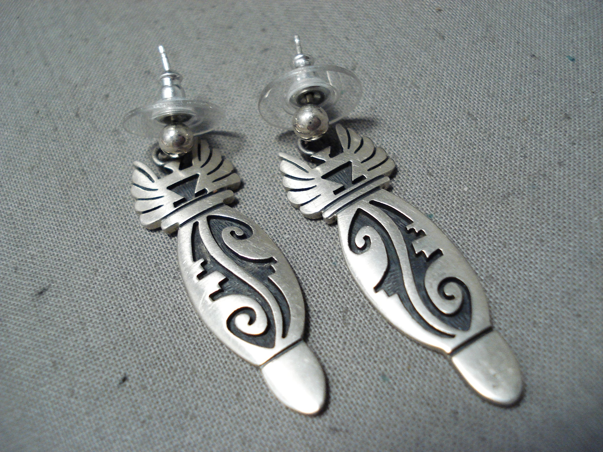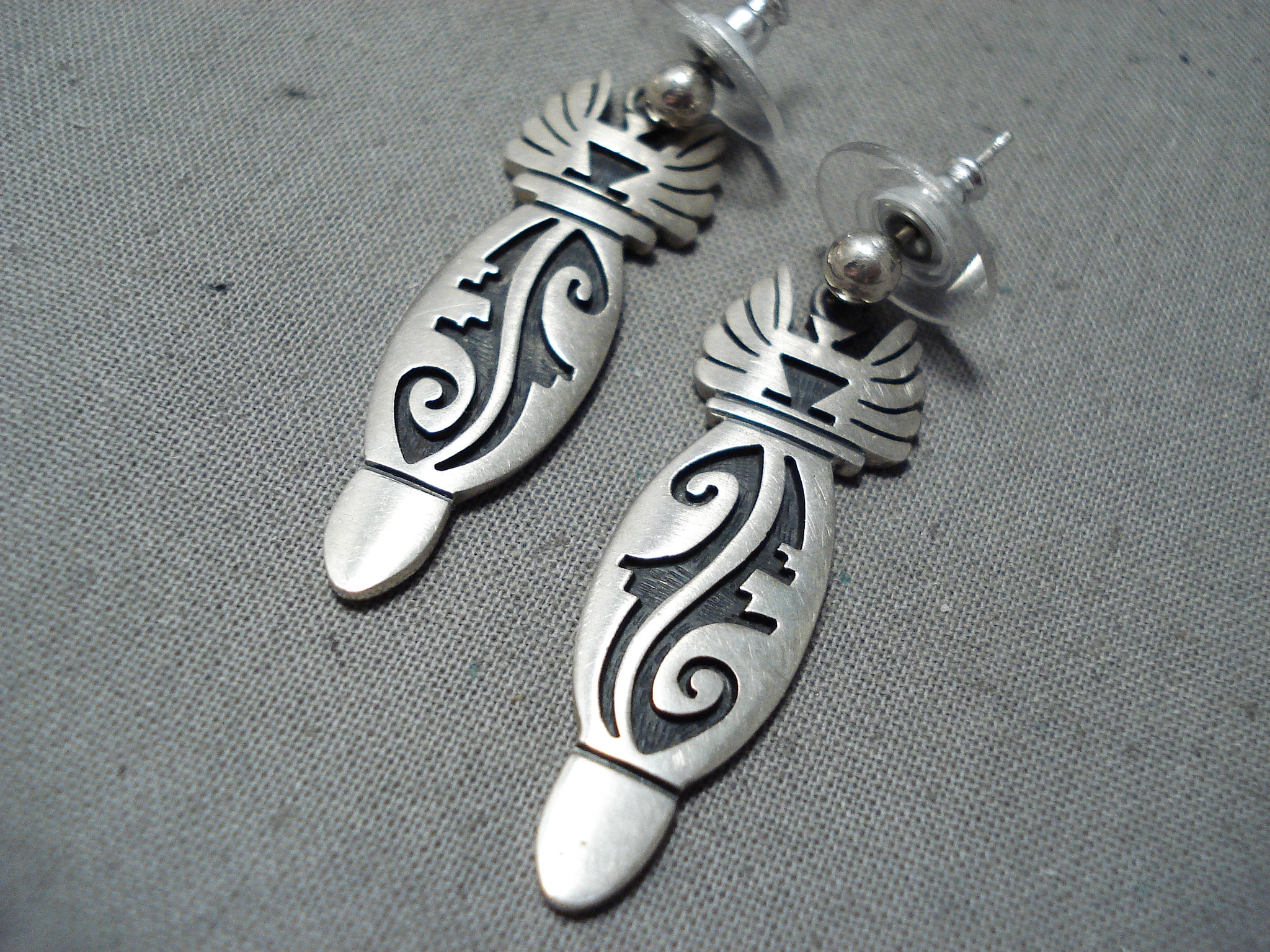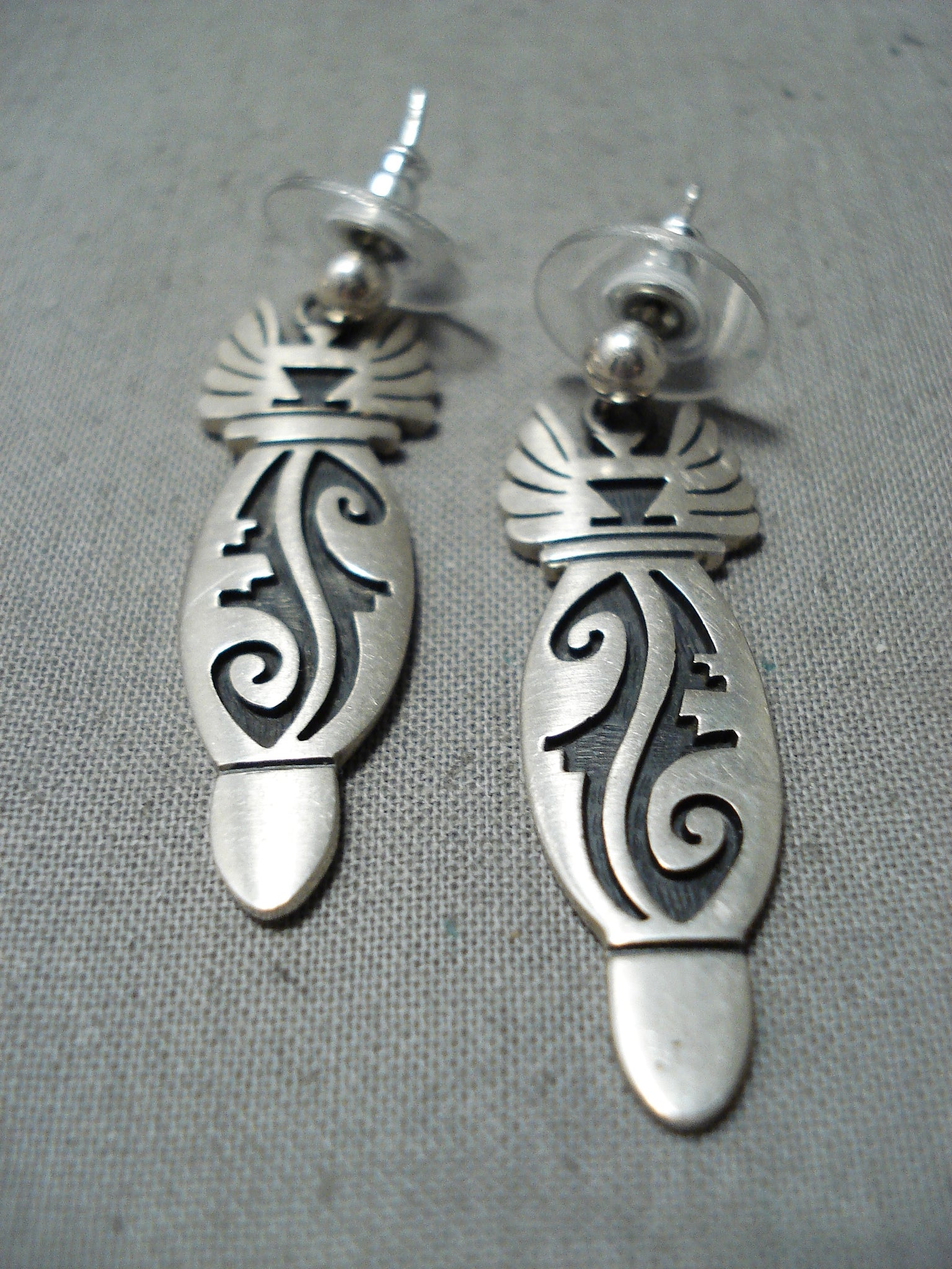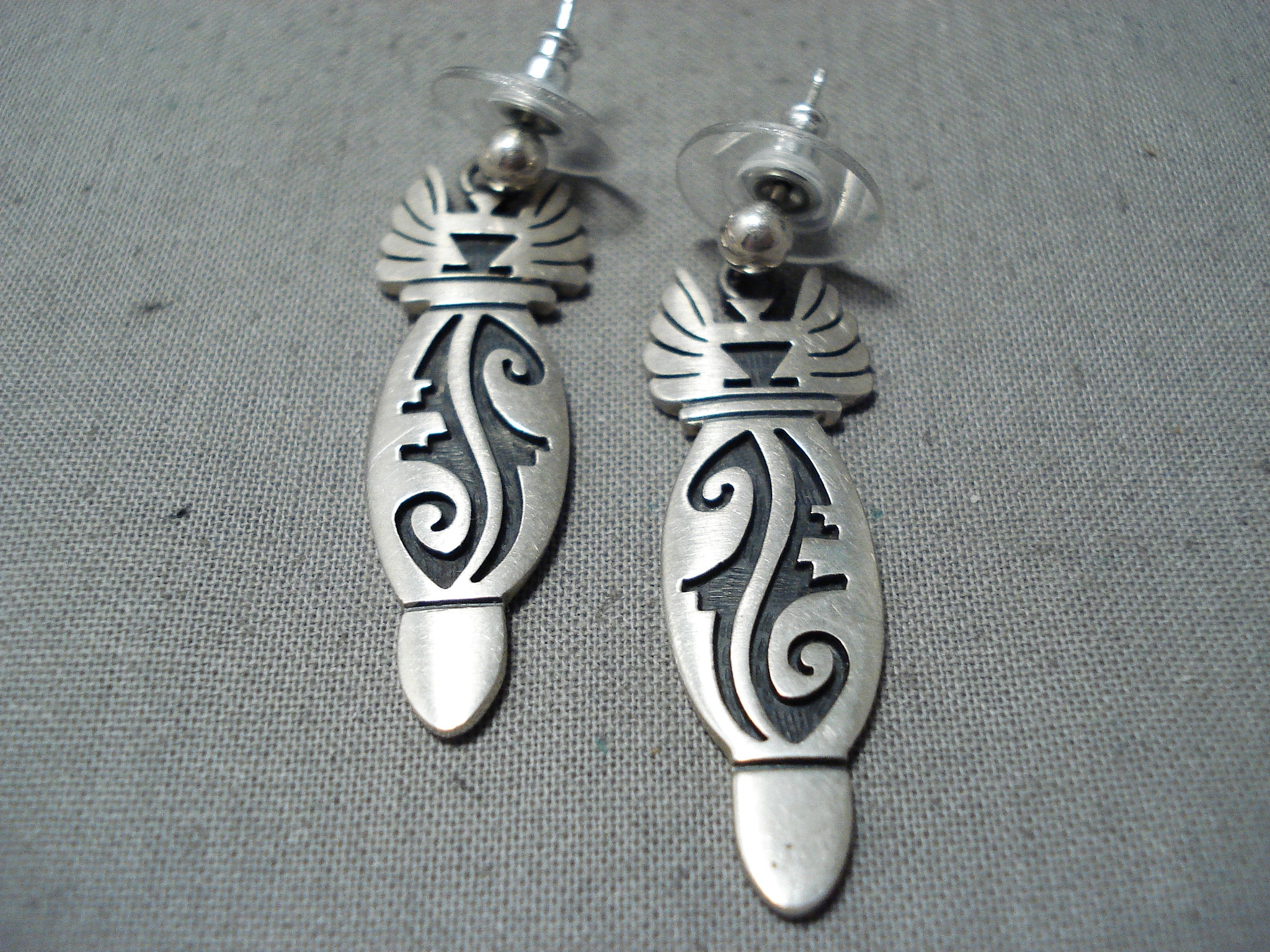 Fabulous Vintage Hopi Native American Sterling Silver Earrings