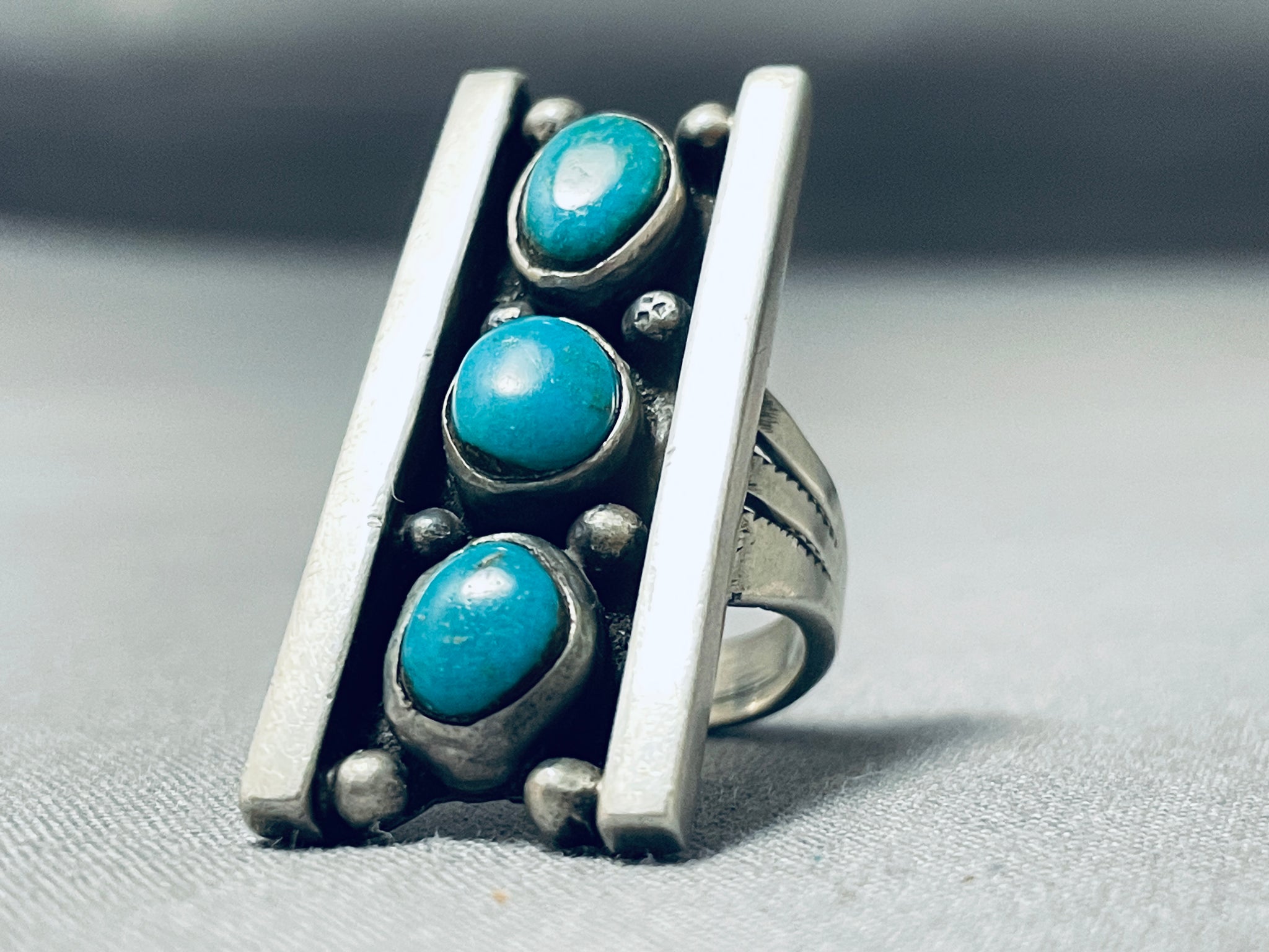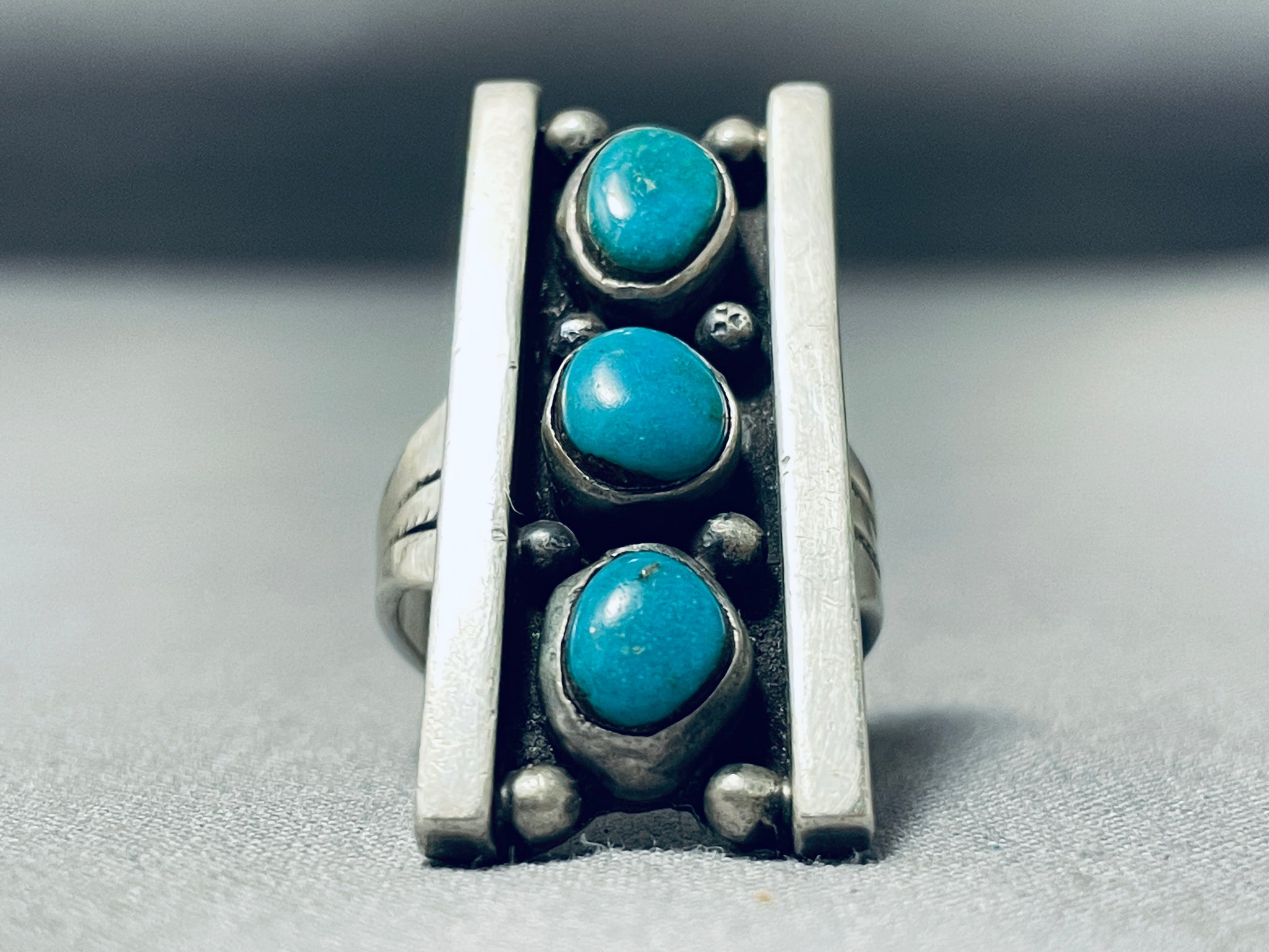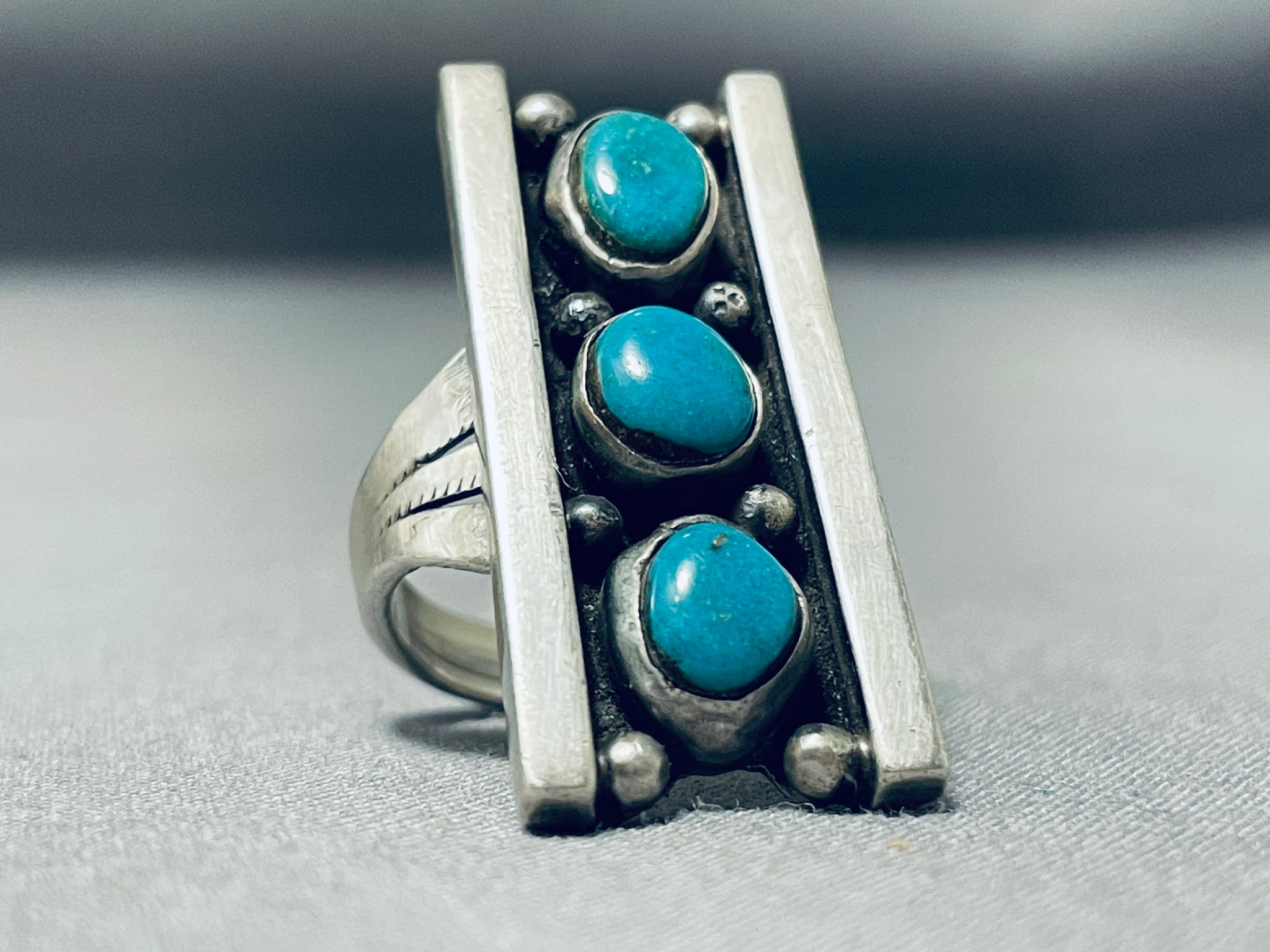 Fabulous Vintage Native American Navajo 3 Pilot Mountain Sterling Silver Huge Ring