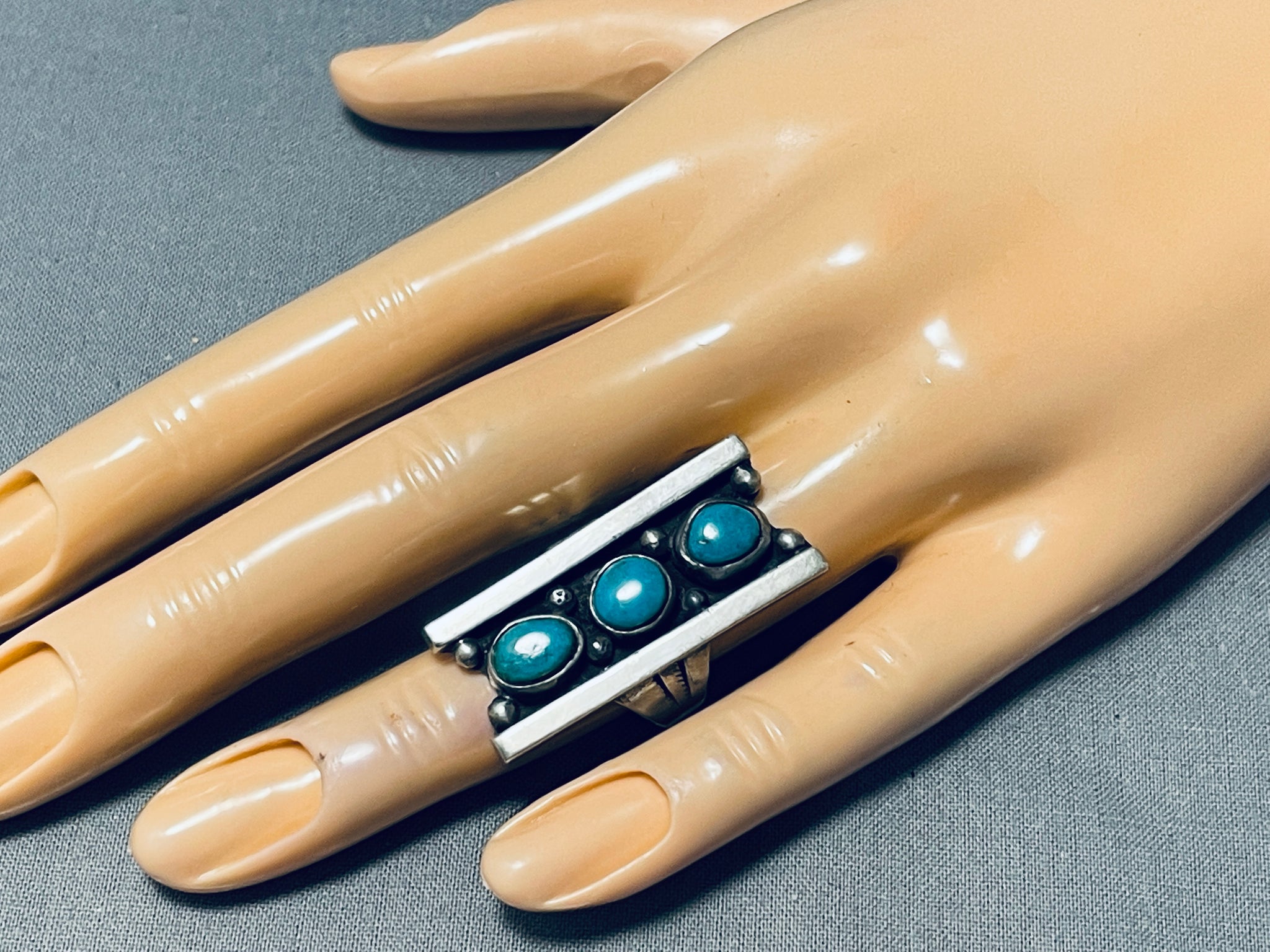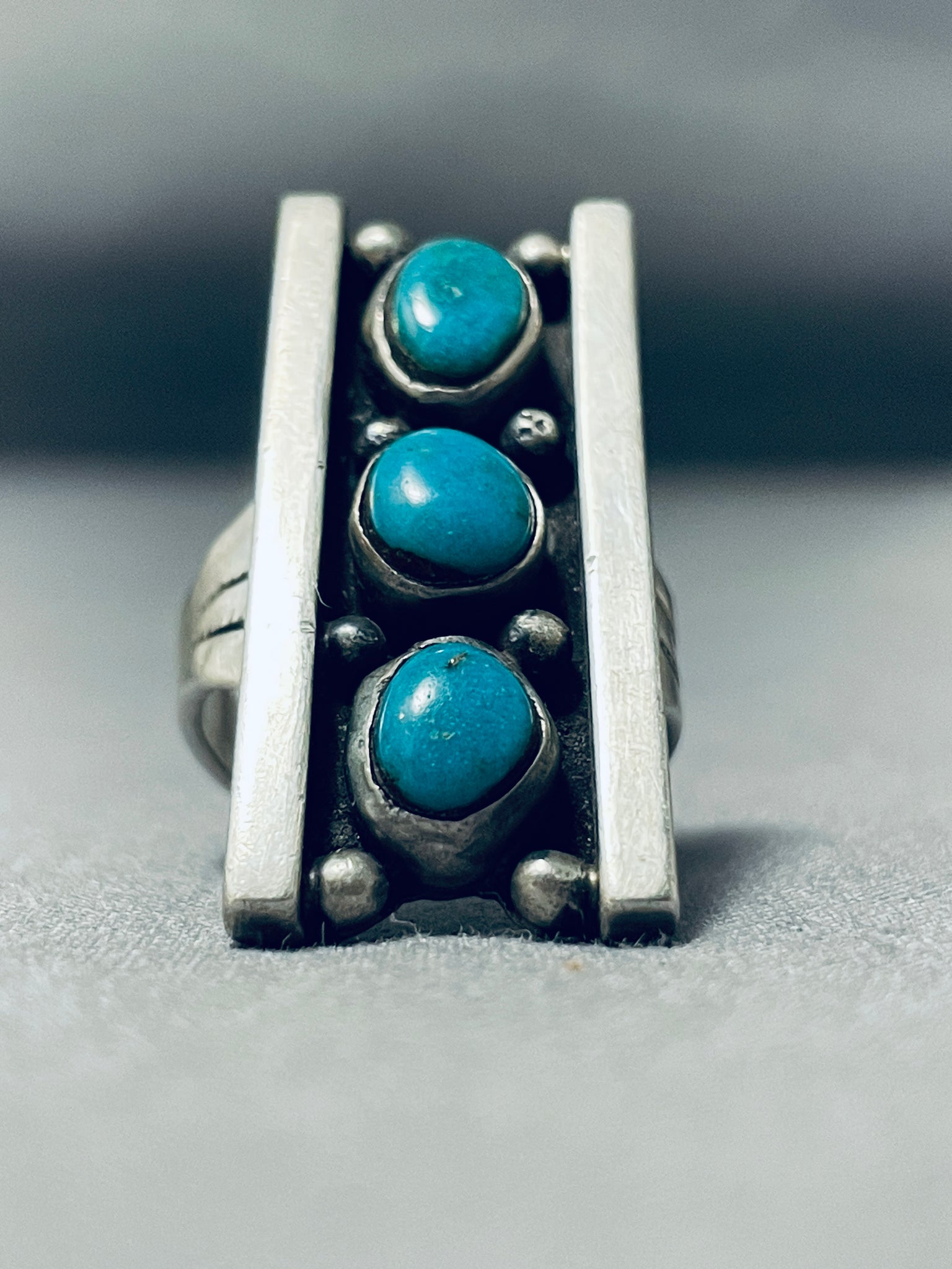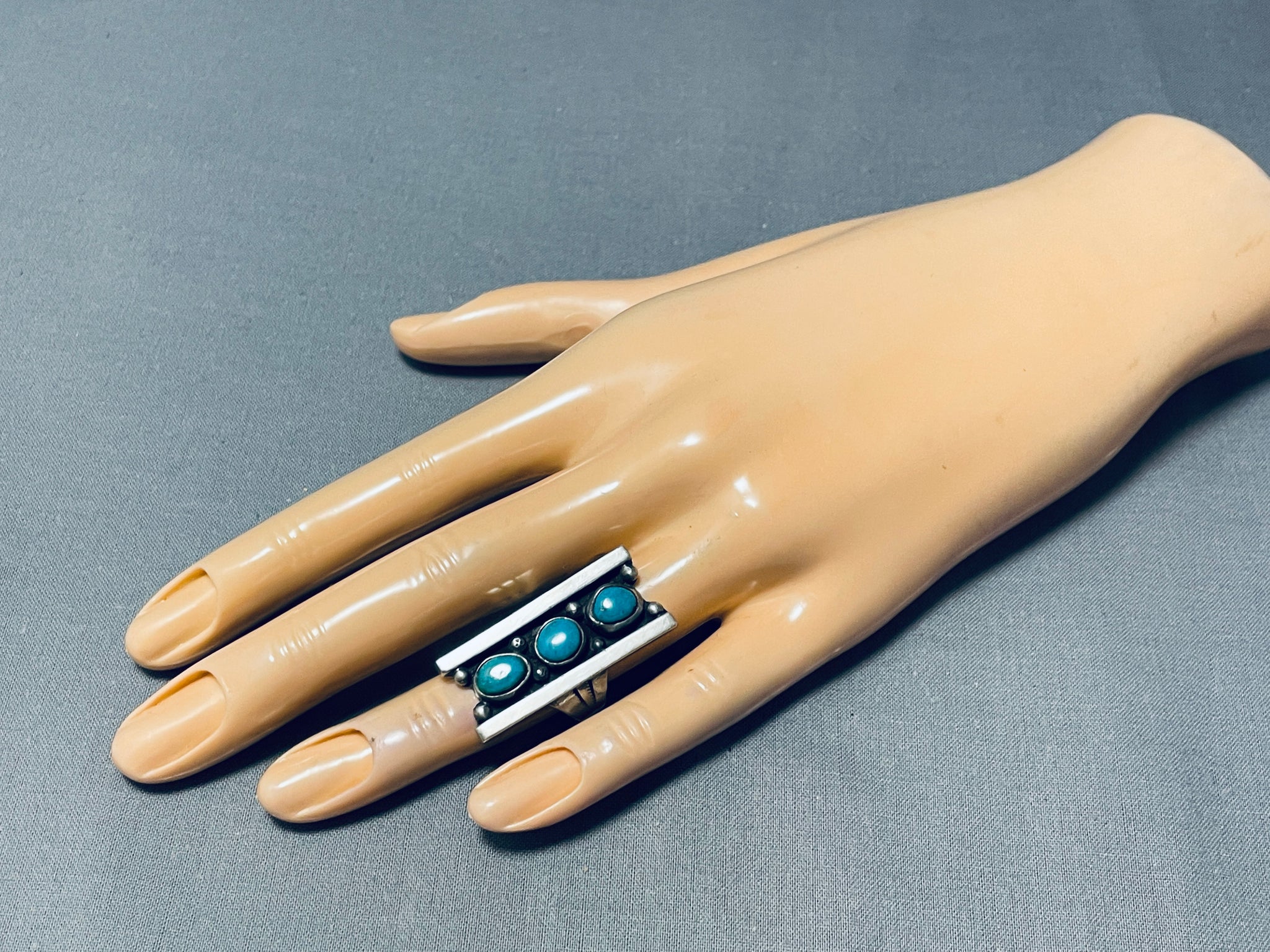 Fabulous Vintage Native American Navajo 3 Pilot Mountain Sterling Silver Huge Ring