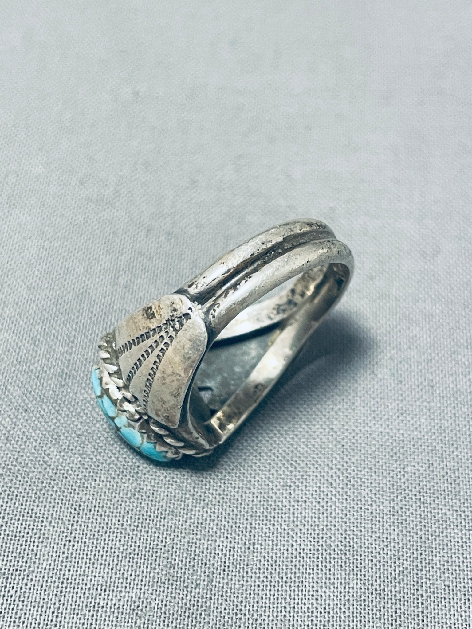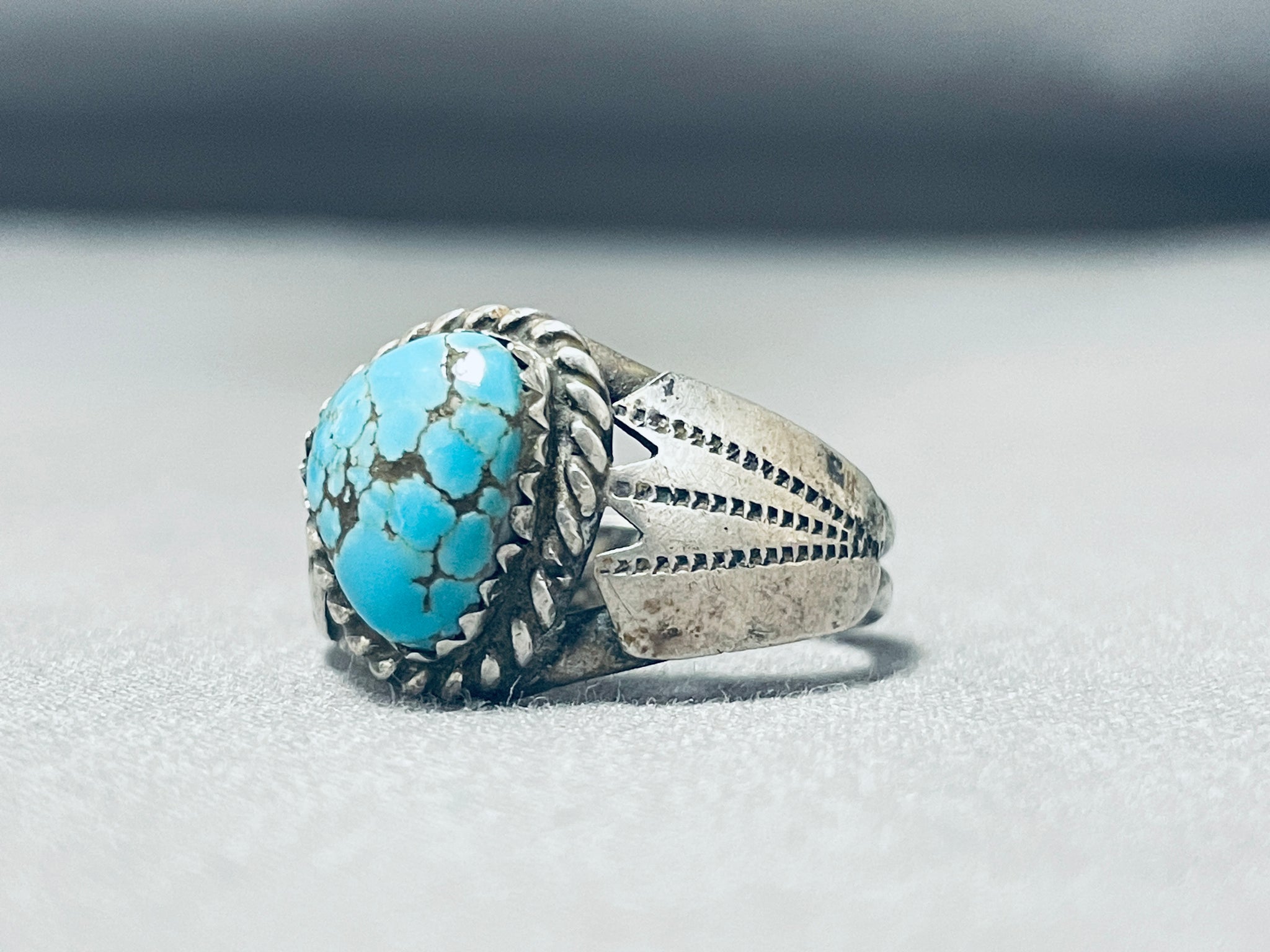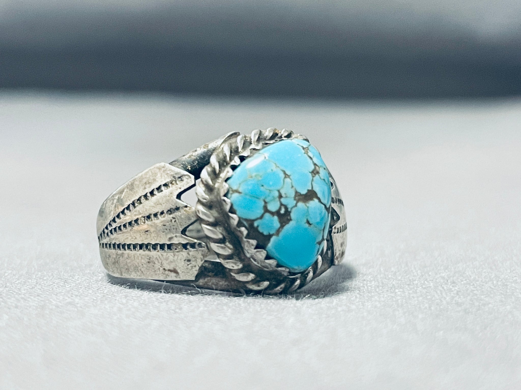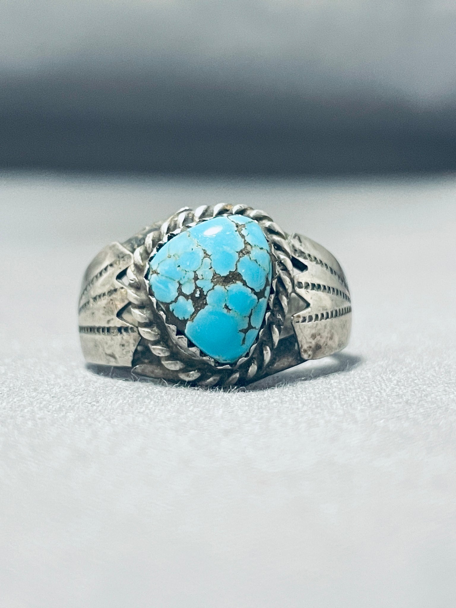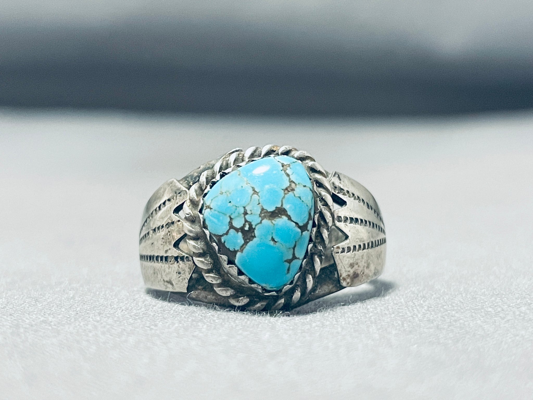 Fabulous Vintage Native American Navajo #8 Mine Turquoise Sterling Silver Ring