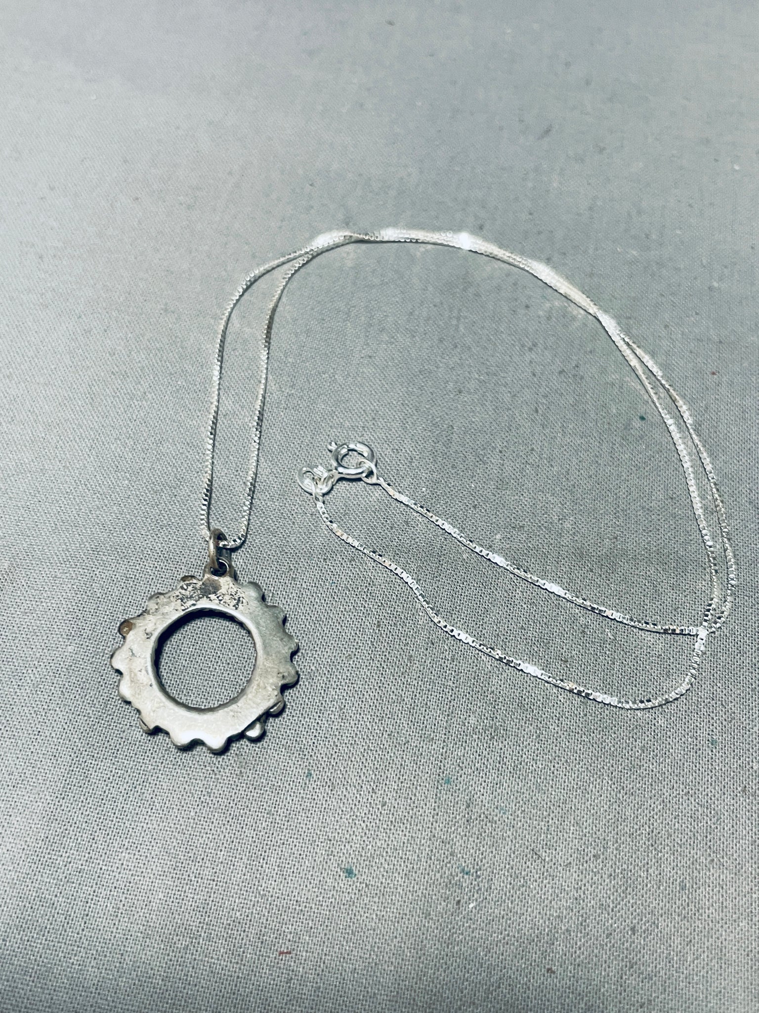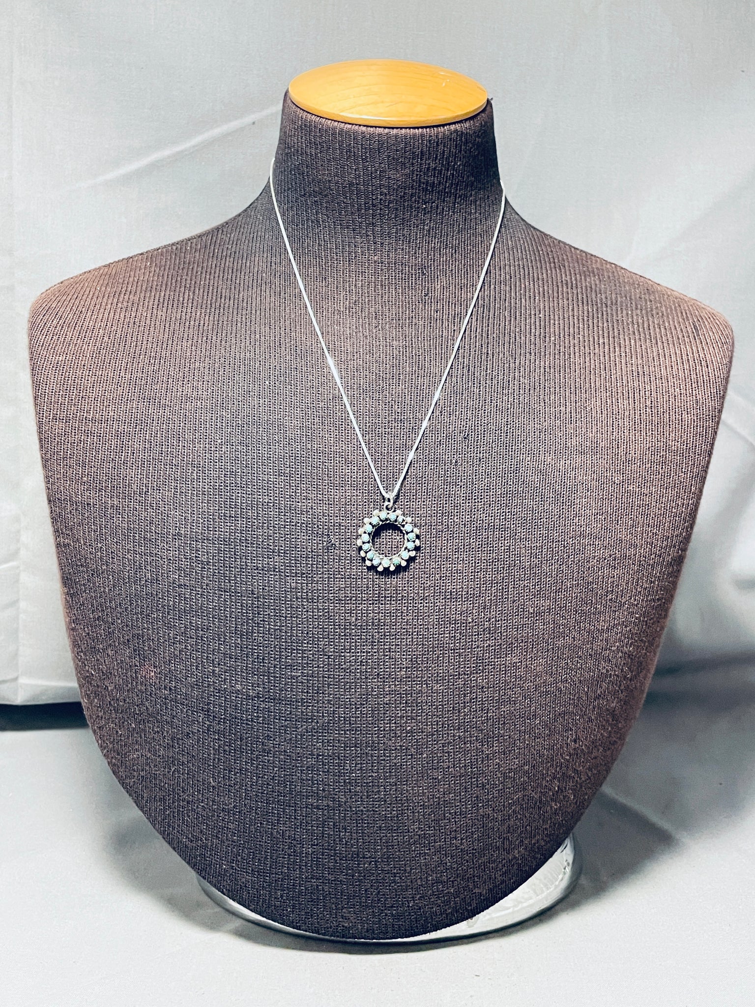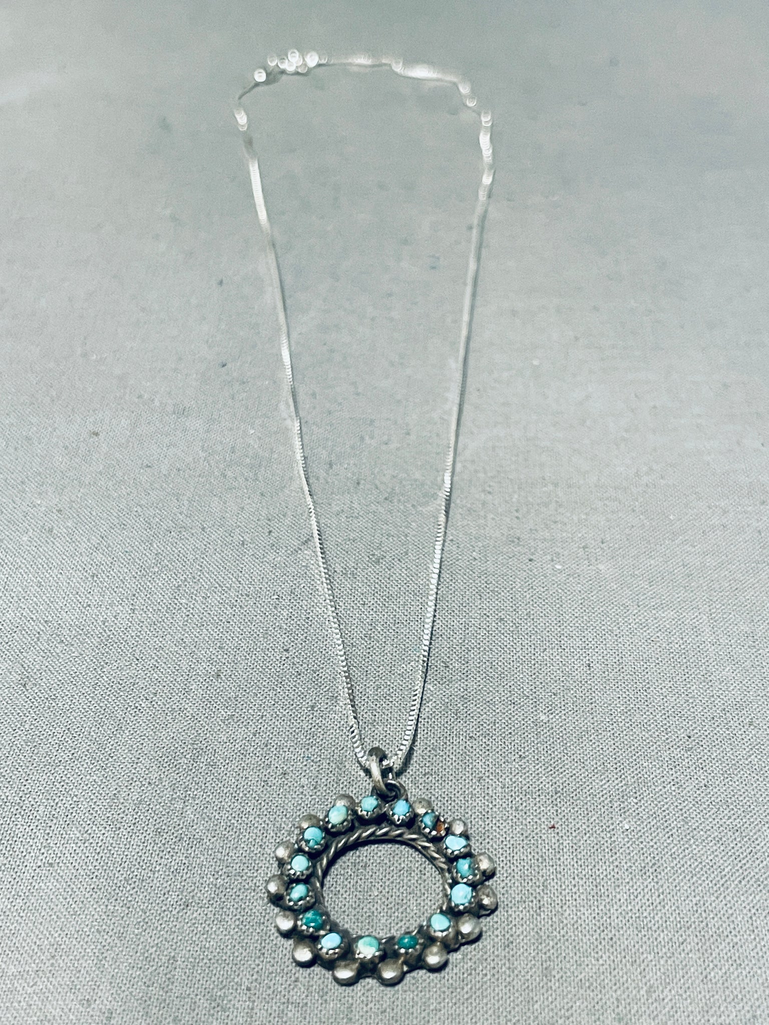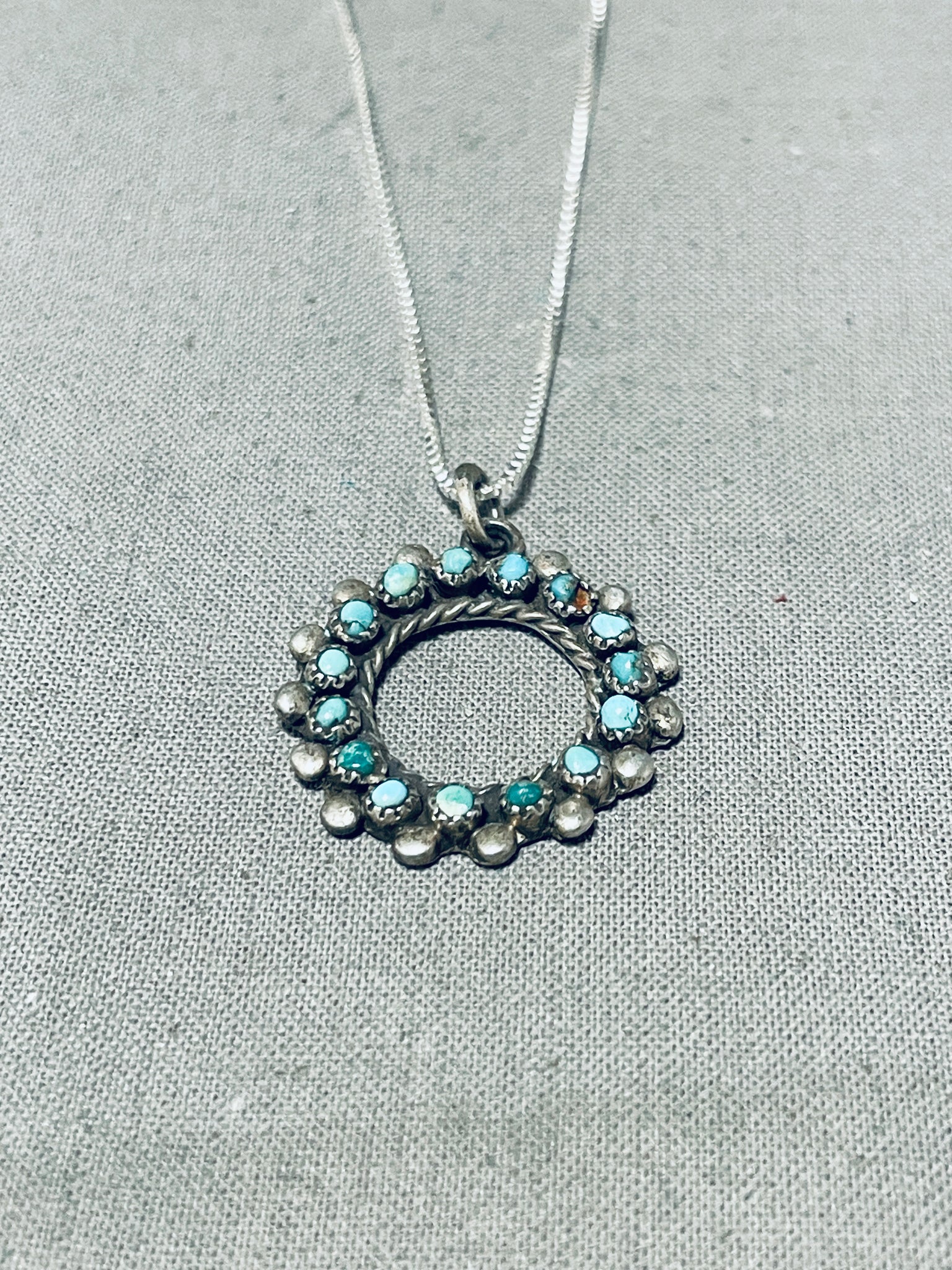 Fabulous Vintage Native American Navajo Blue Gem Turquoise Sterling Silver Wreath Necklace