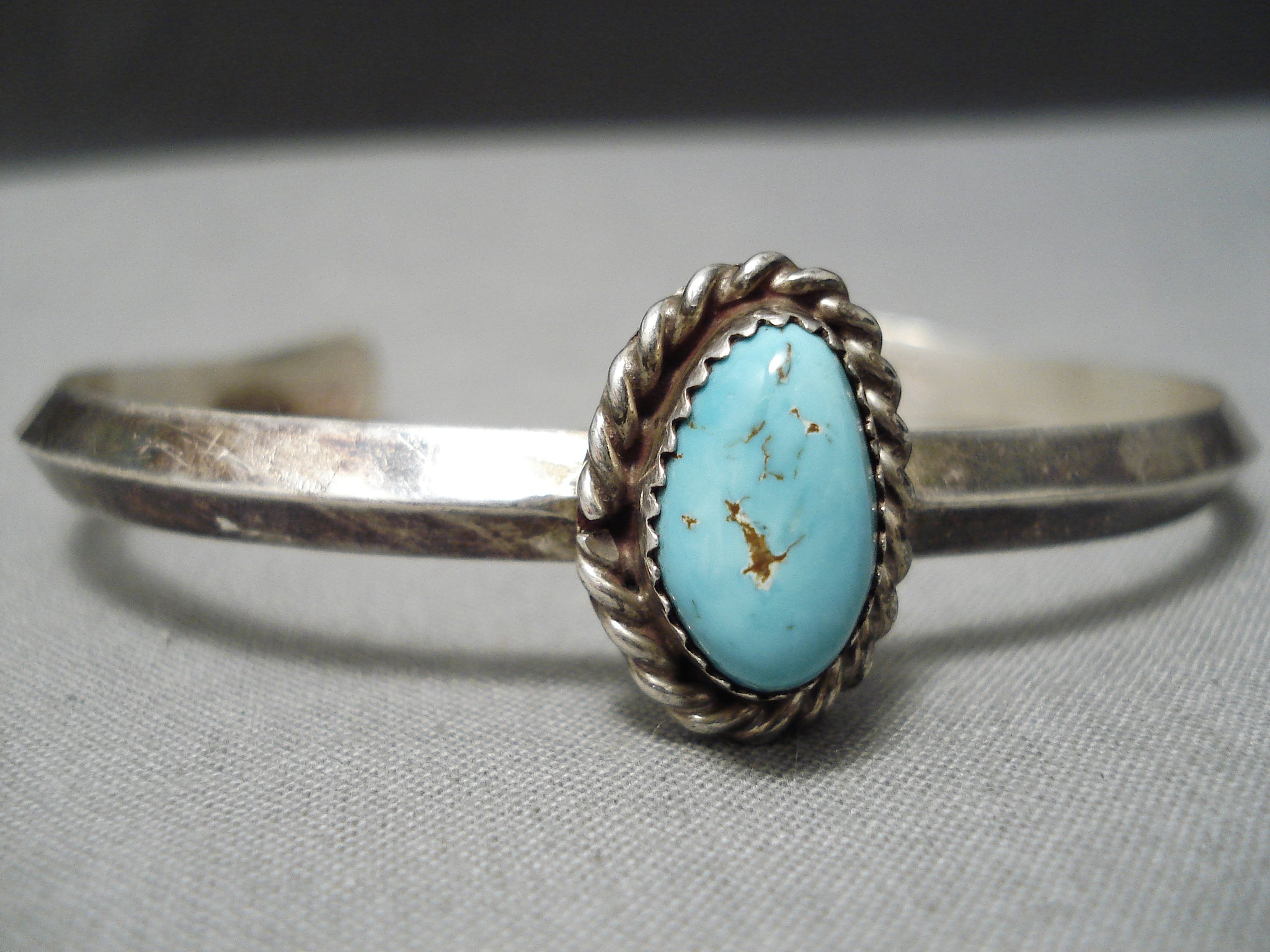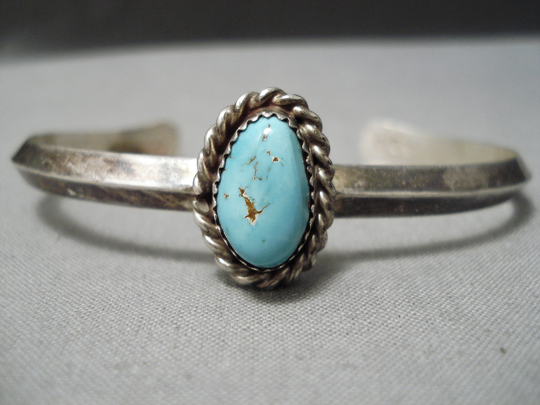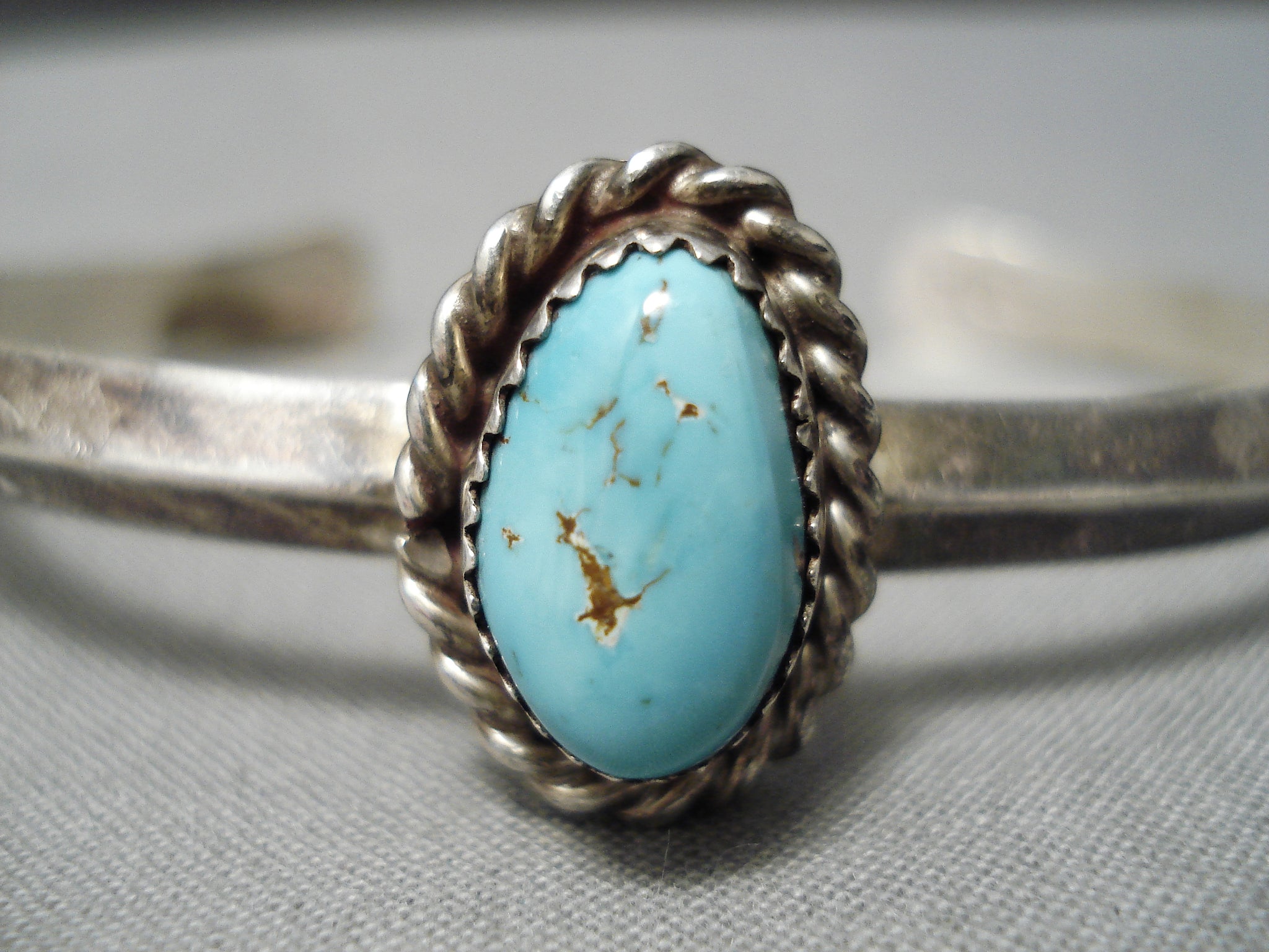 Fabulous Vintage Native American Navajo Domed Turquoise Sterling Silver Bracelet Old