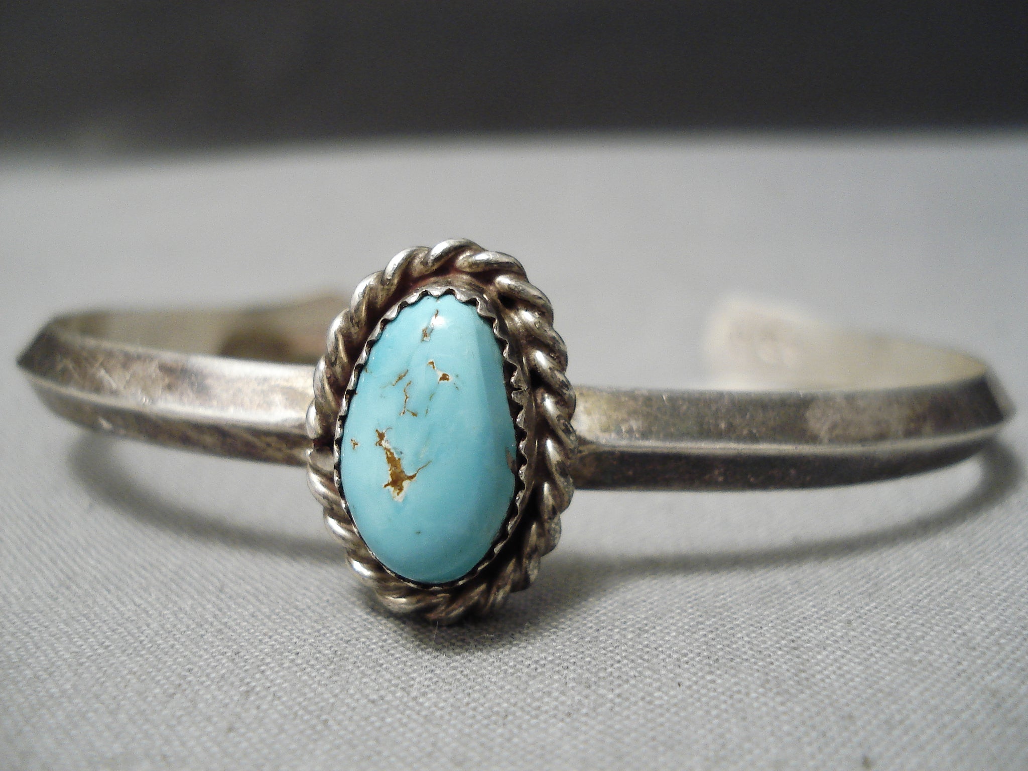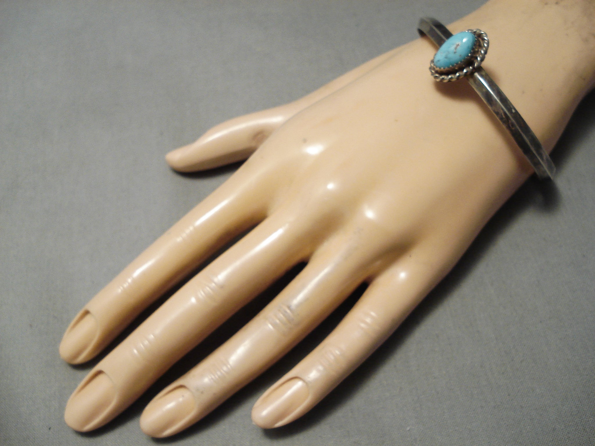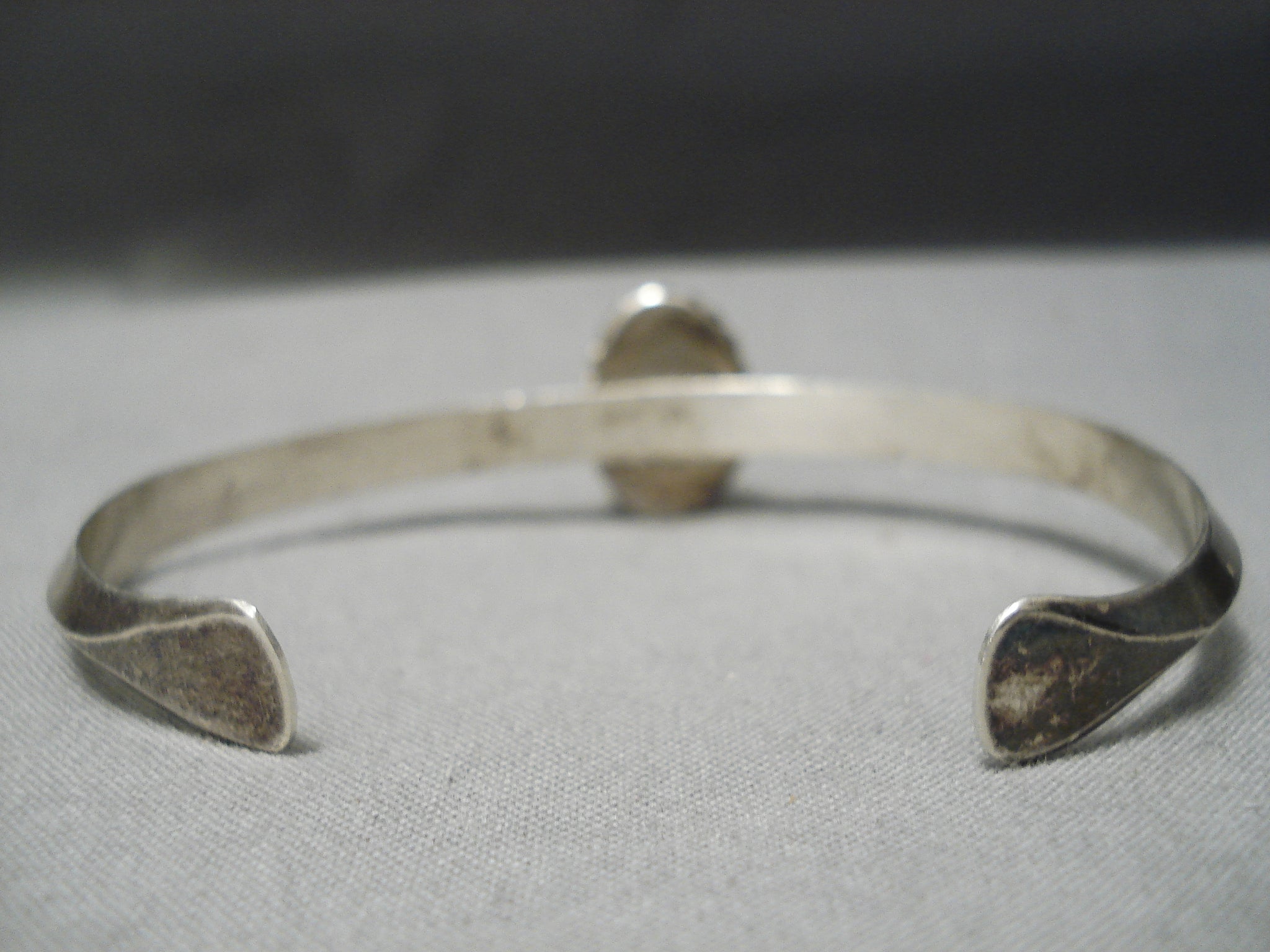 Fabulous Vintage Native American Navajo Domed Turquoise Sterling Silver Bracelet Old