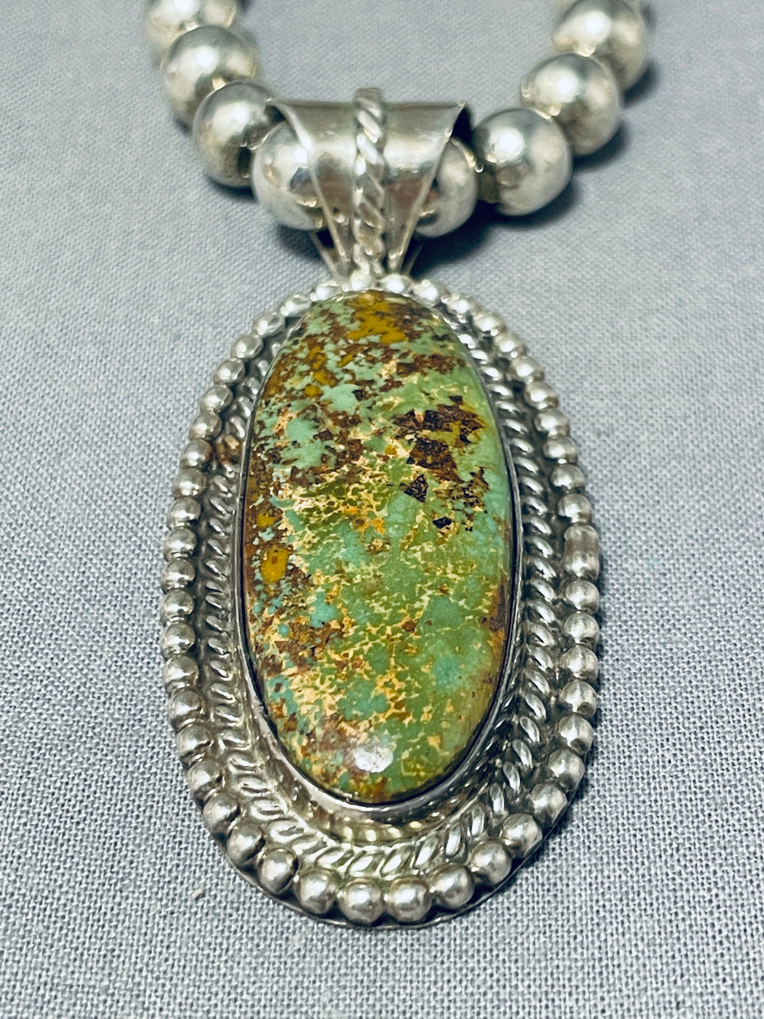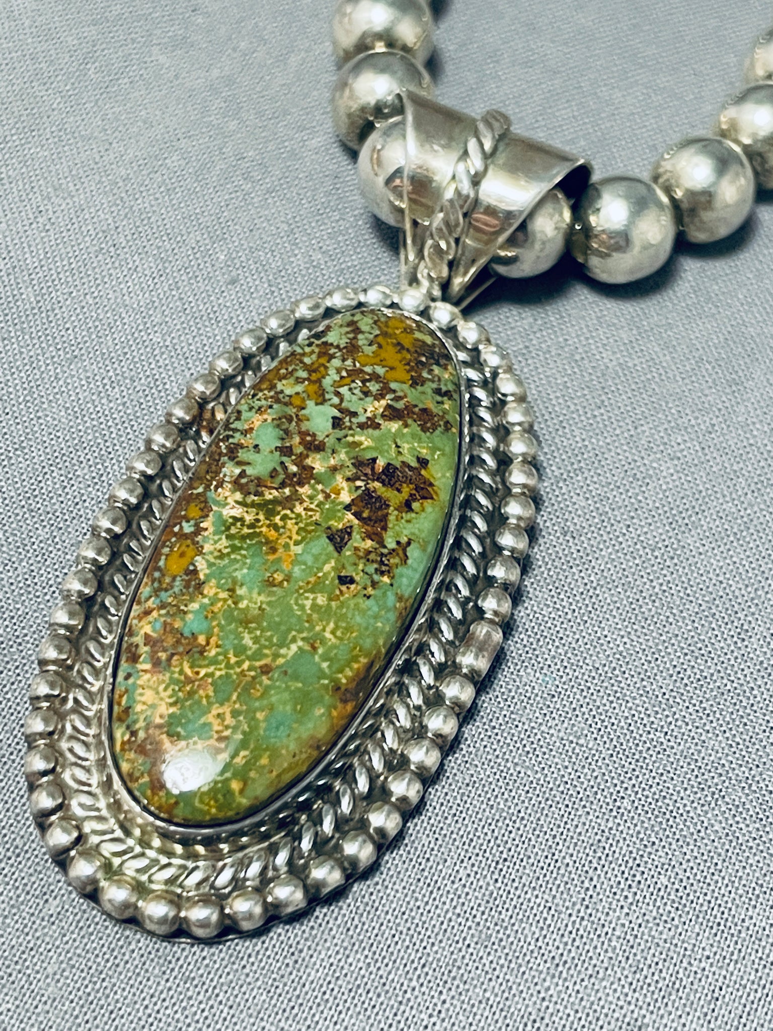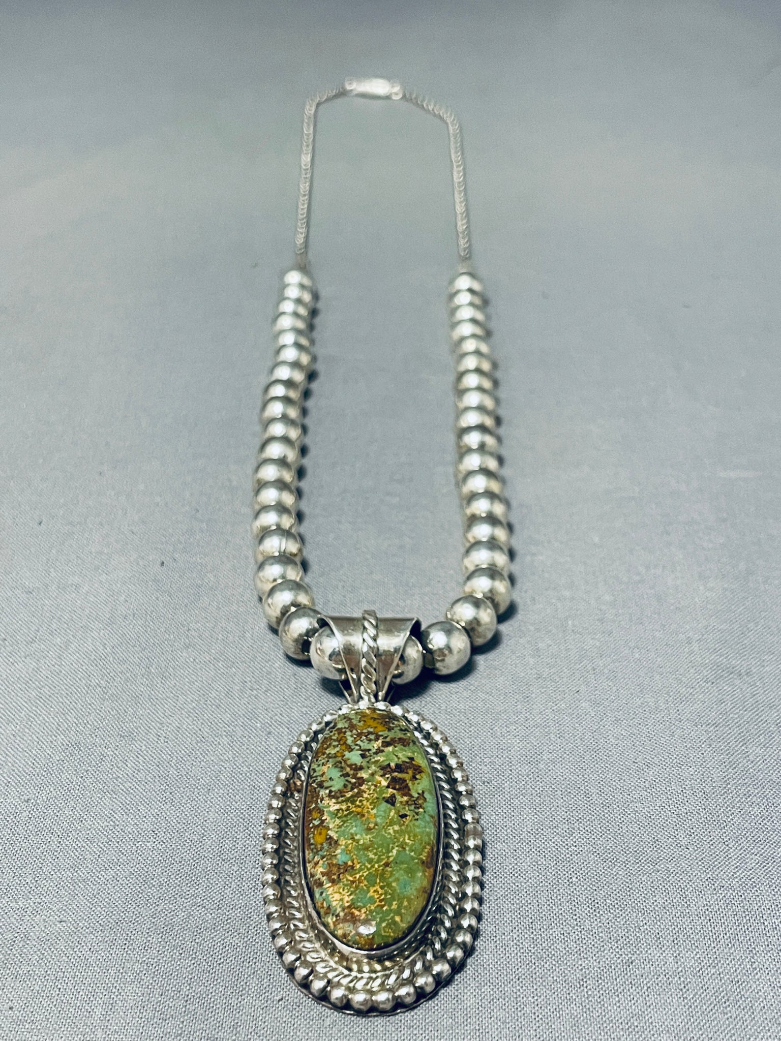 Fabulous Vintage Native American Navajo Green Turquoise Sterling Silver Necklace Signed
