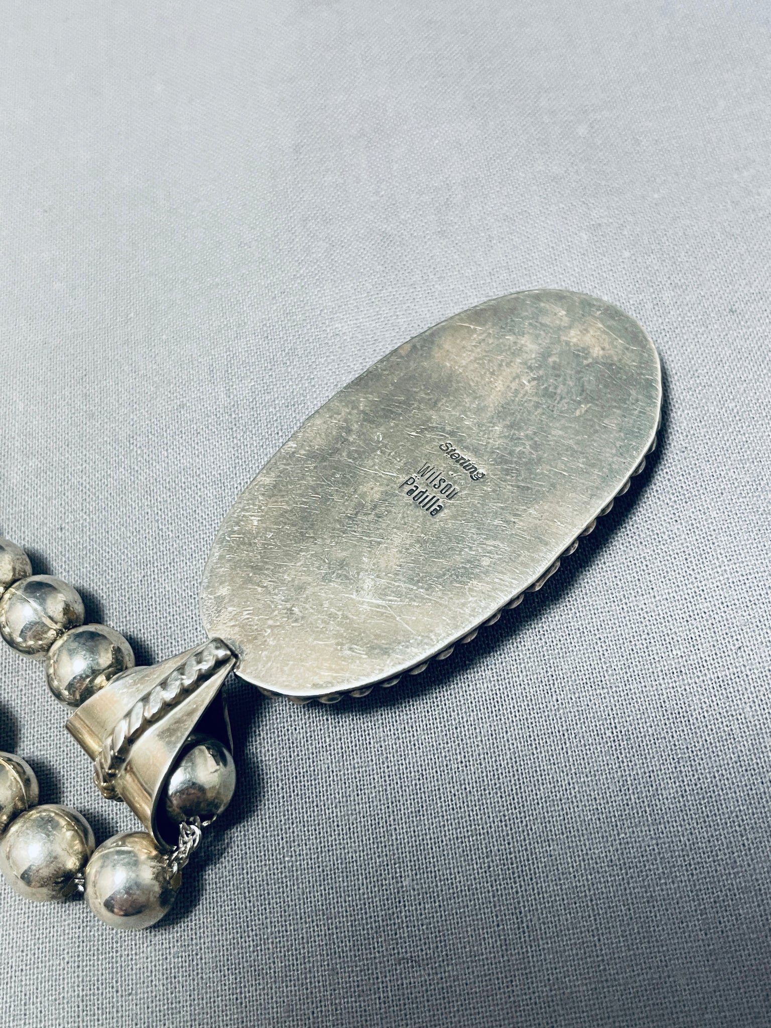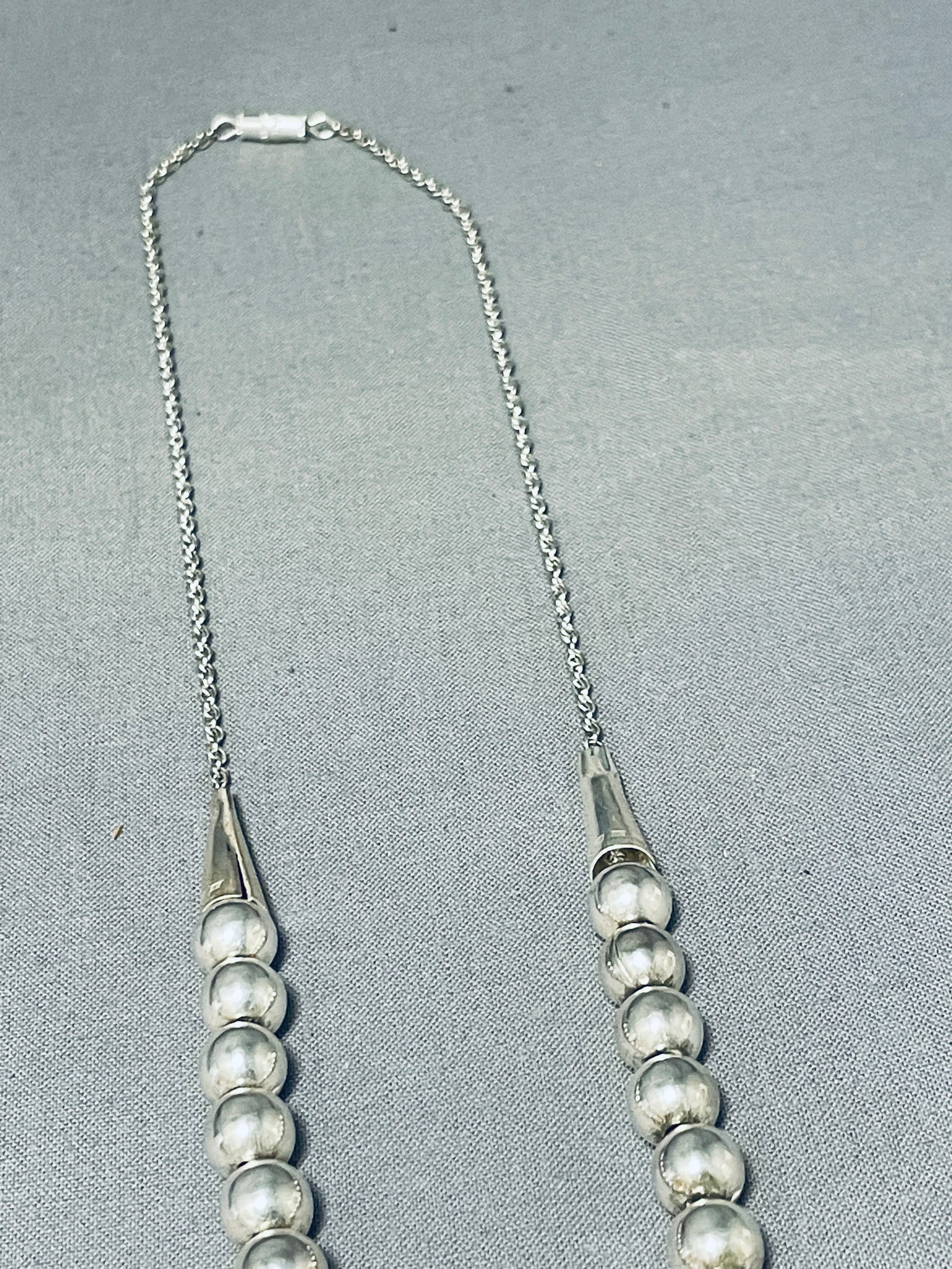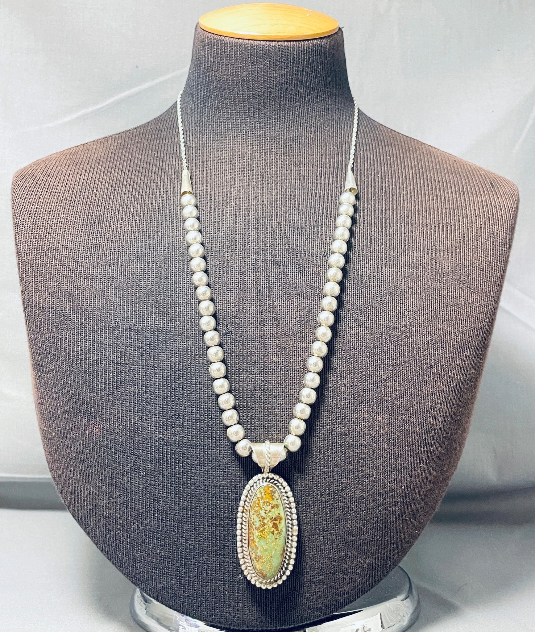 Fabulous Vintage Native American Navajo Green Turquoise Sterling Silver Necklace Signed