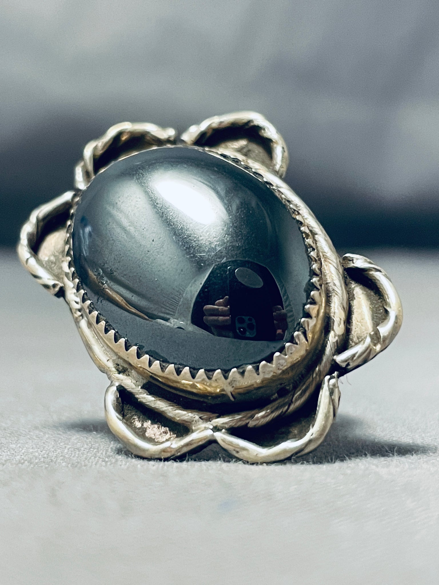 Fabulous Vintage Native American Navajo Hematite Sterling Silver Ring
