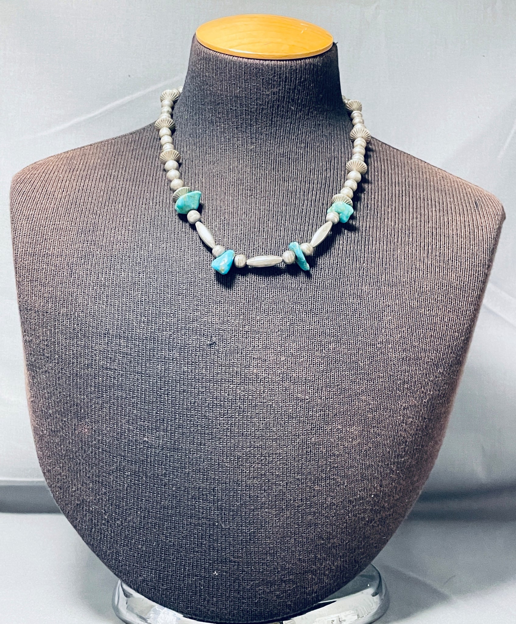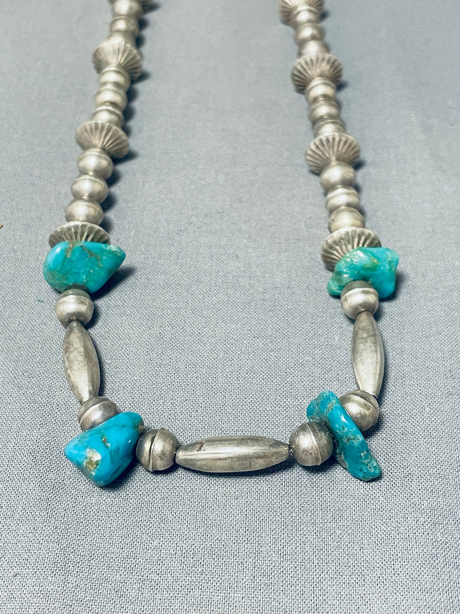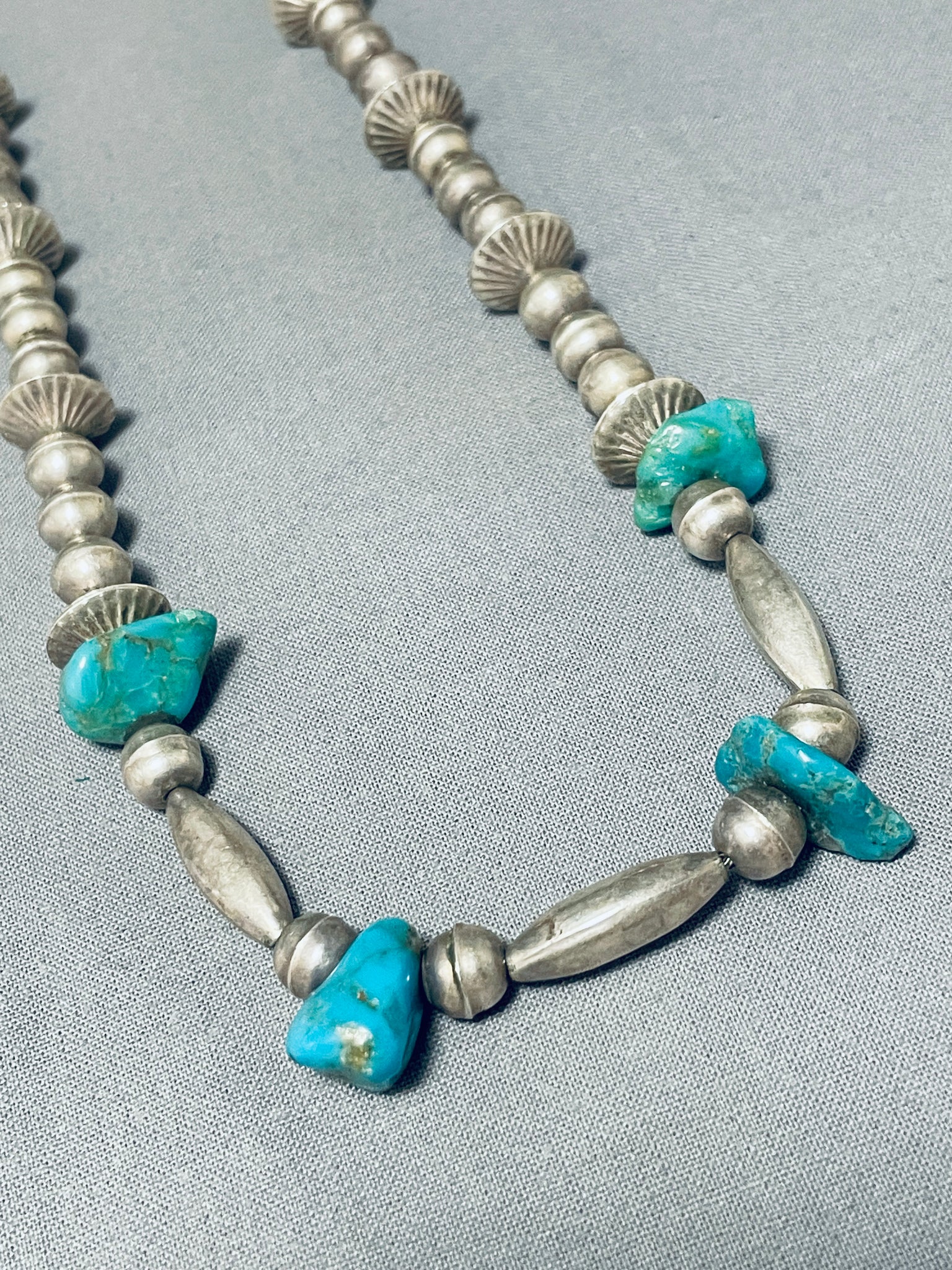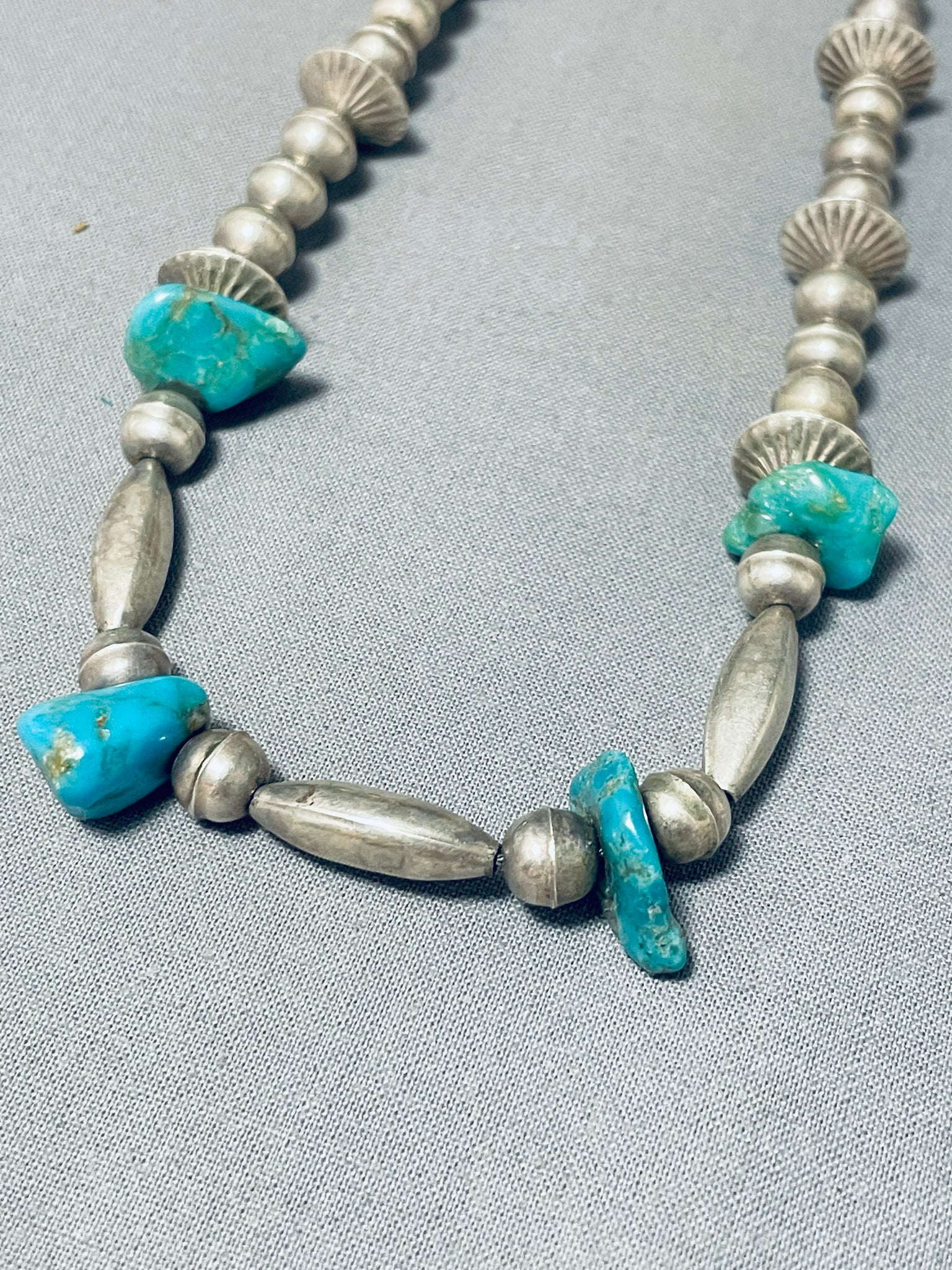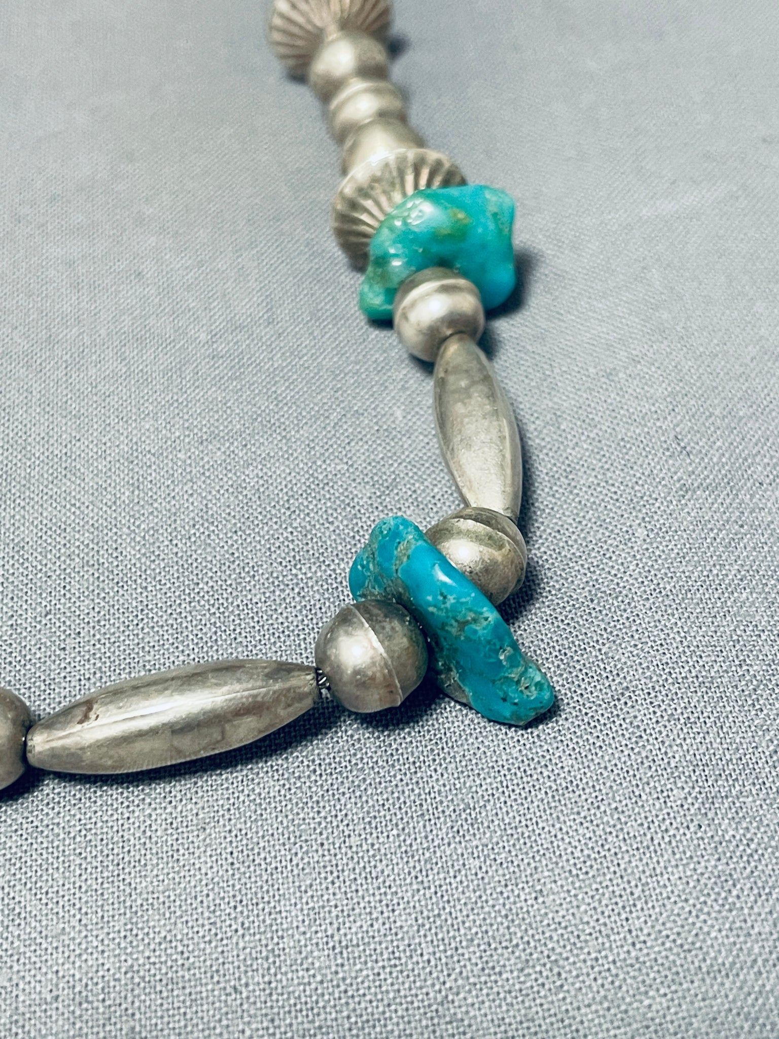 Fabulous Vintage Native American Navajo Kingman Turquoise Sterling Silver Necklace