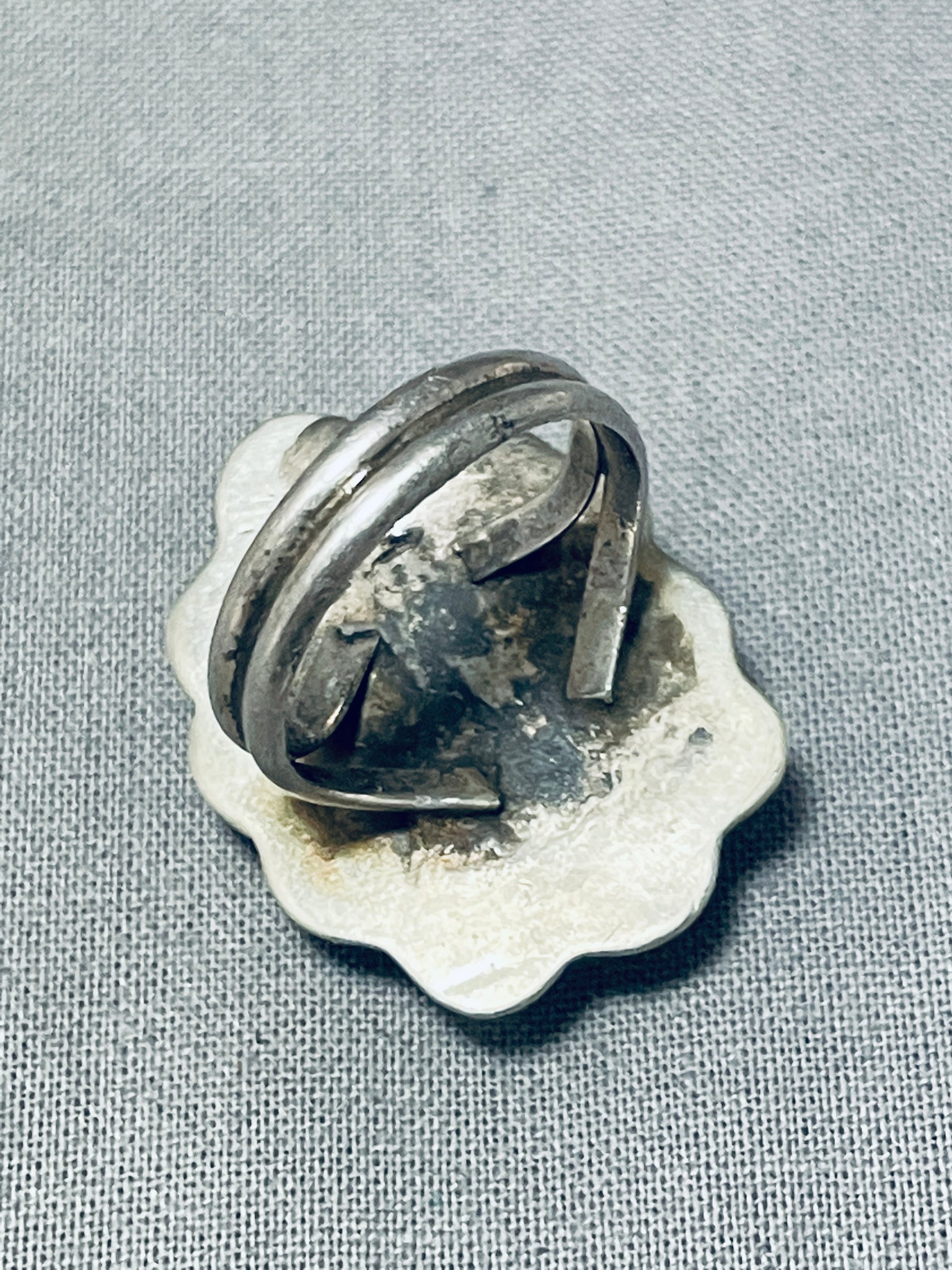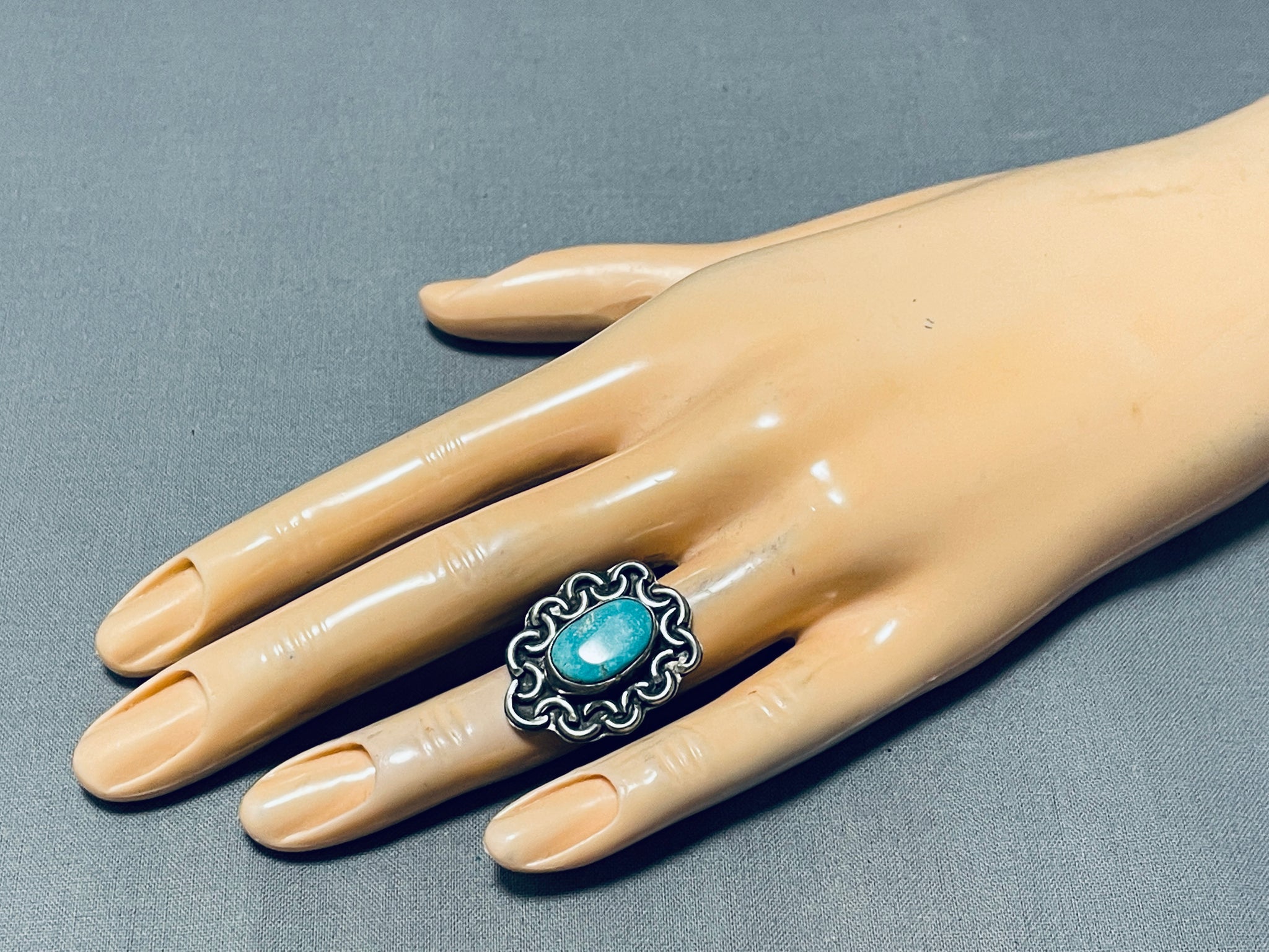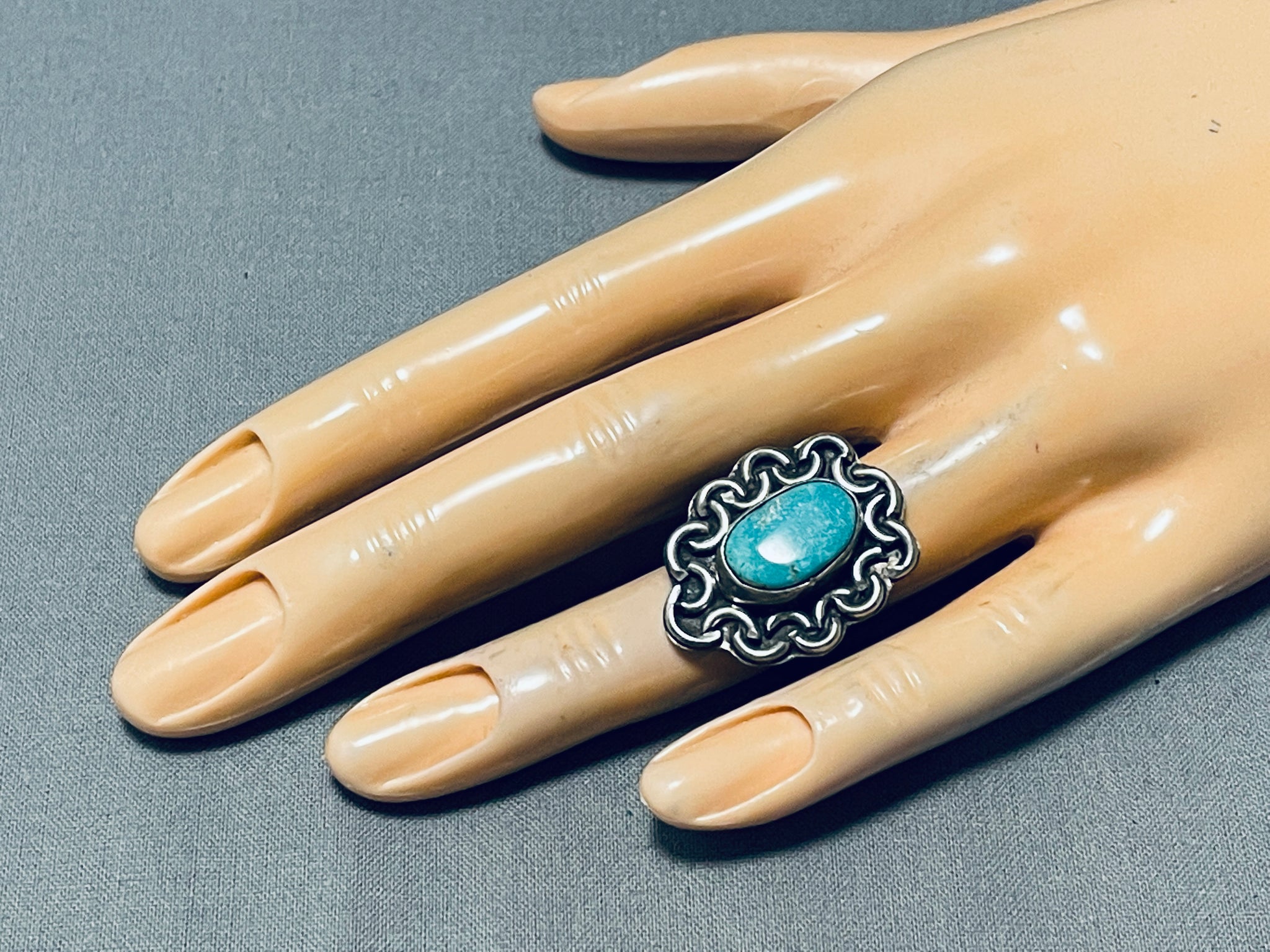 Fabulous Vintage Native American Navajo Pilot Mountain Turquoise Sterling Silver Ring