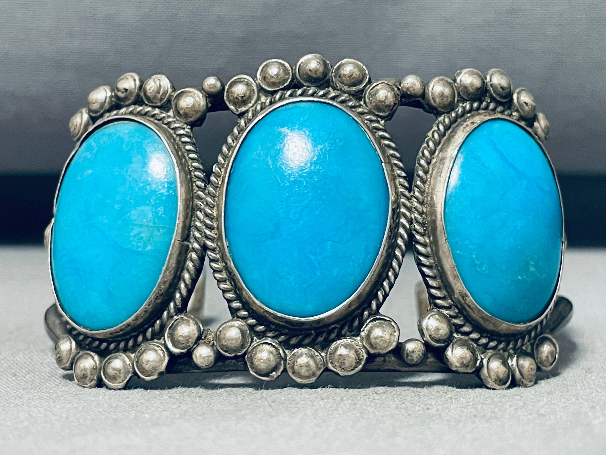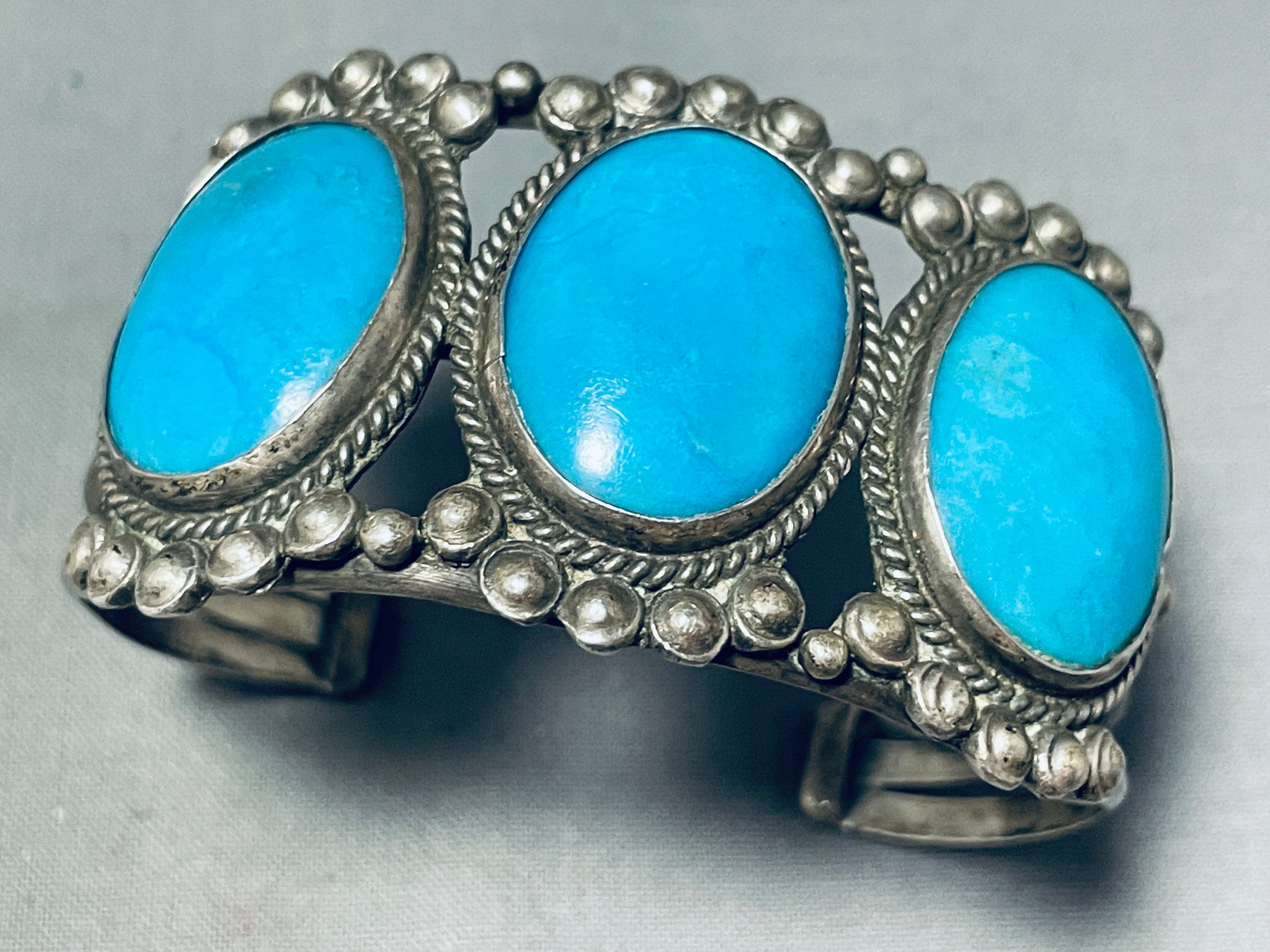 Fabulous Vintage Native American Navajo Sleeping Beauty Turquoise Sterling Silver Bracelet