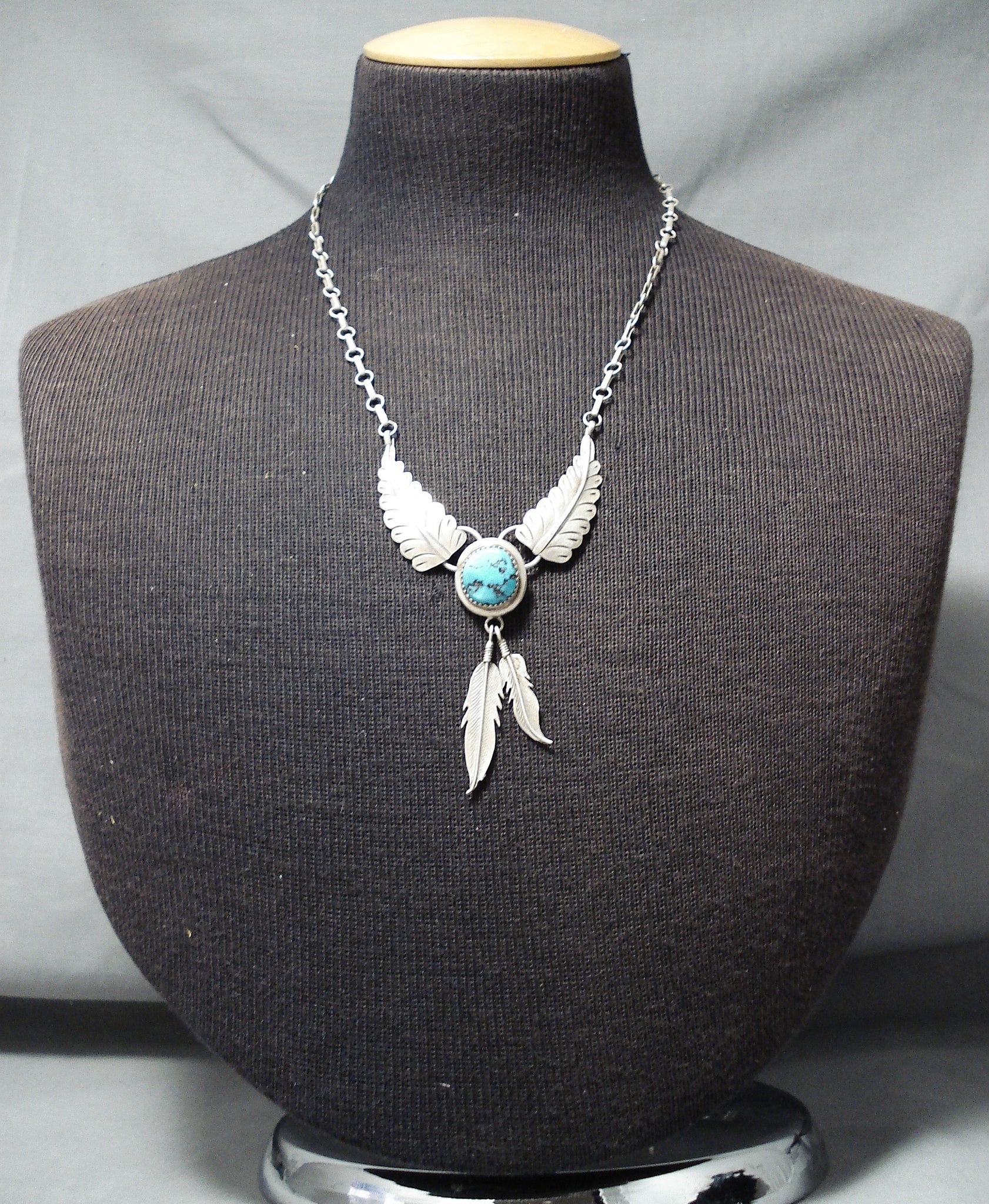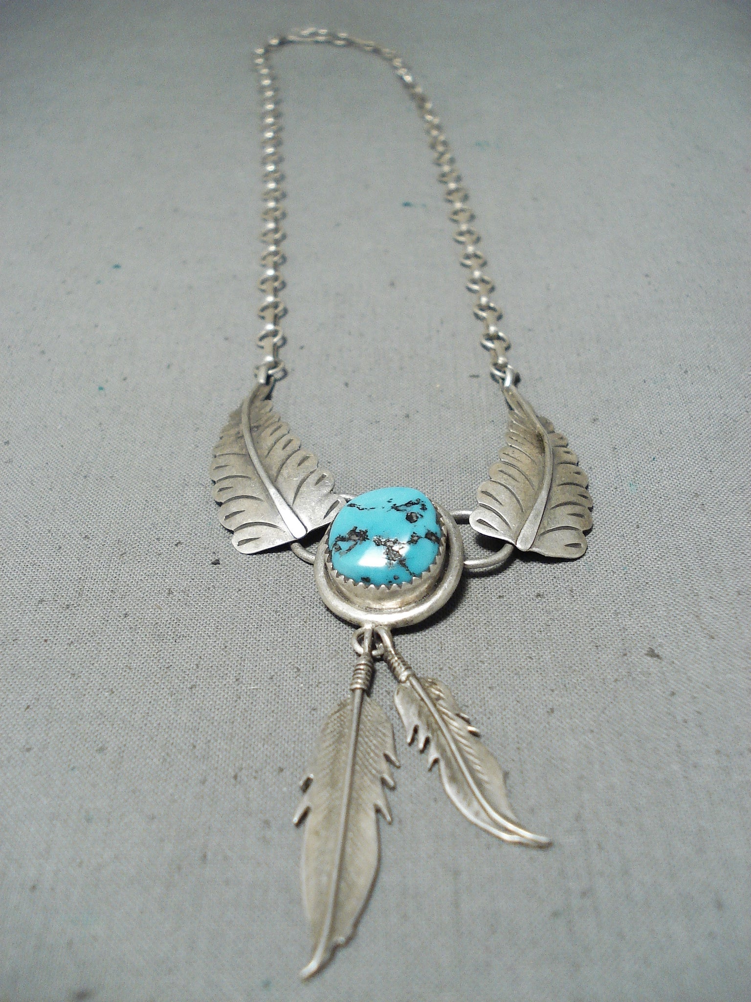 Fabulous Vintage Native American Navajo Sleeping Beauty Turquoise Sterling Silver Necklace