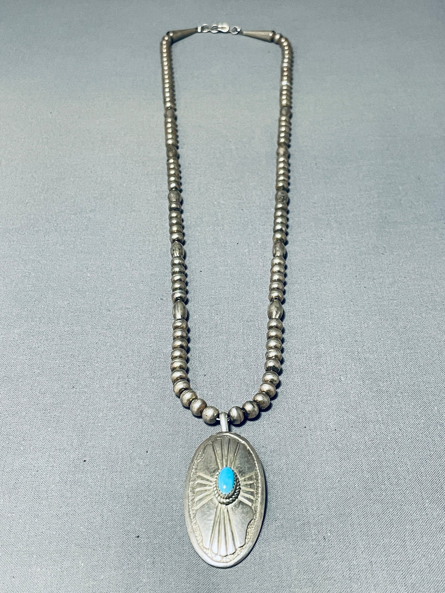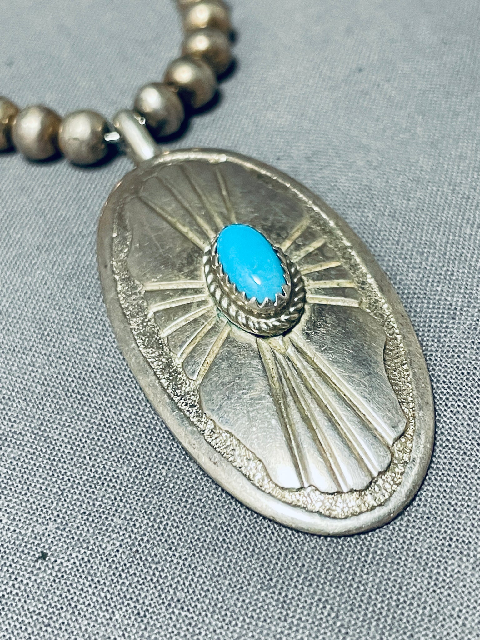Fabulous Vintage Native American Navajo Sleeping Beauty Turquoise Sterling Silver Necklace
