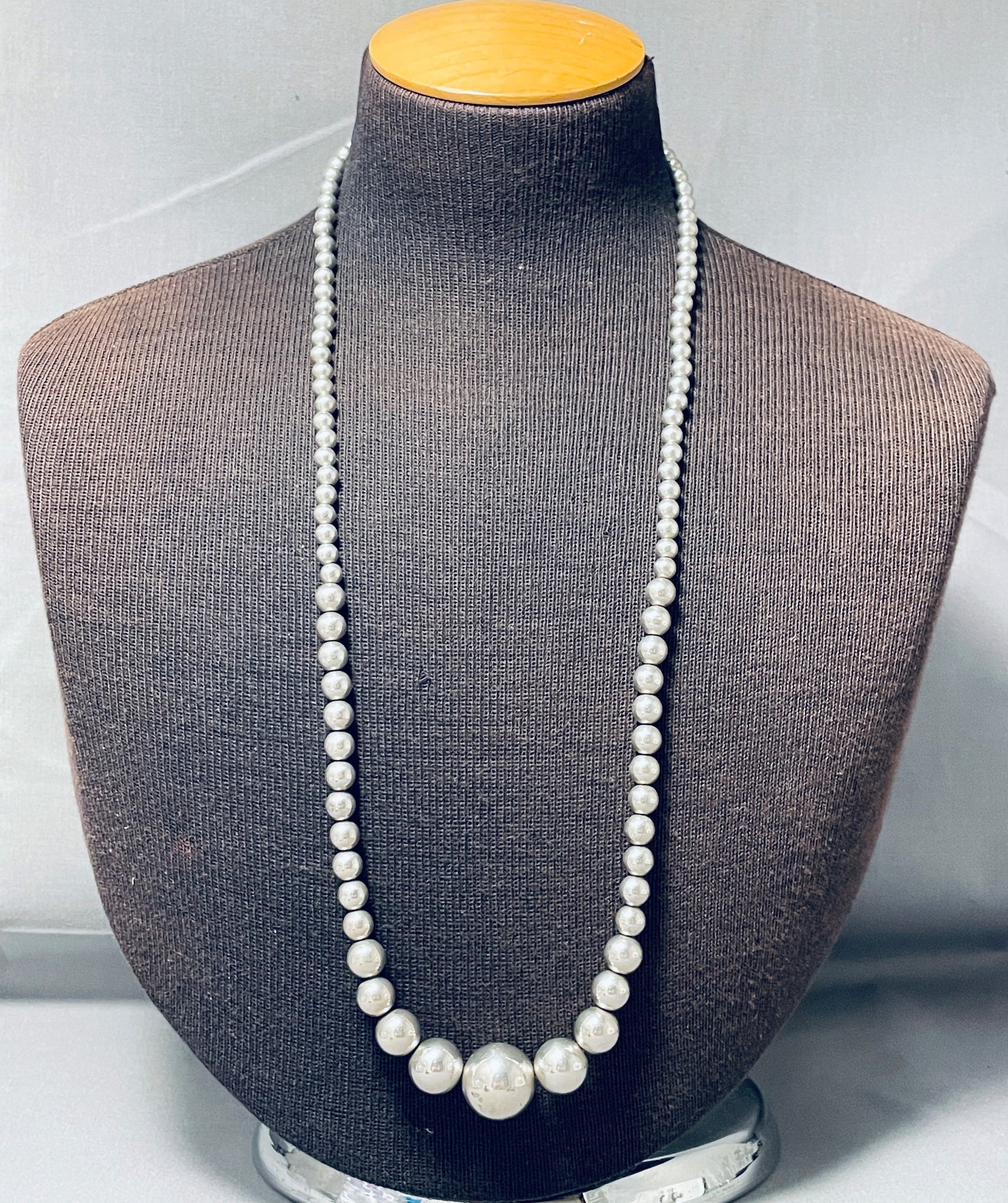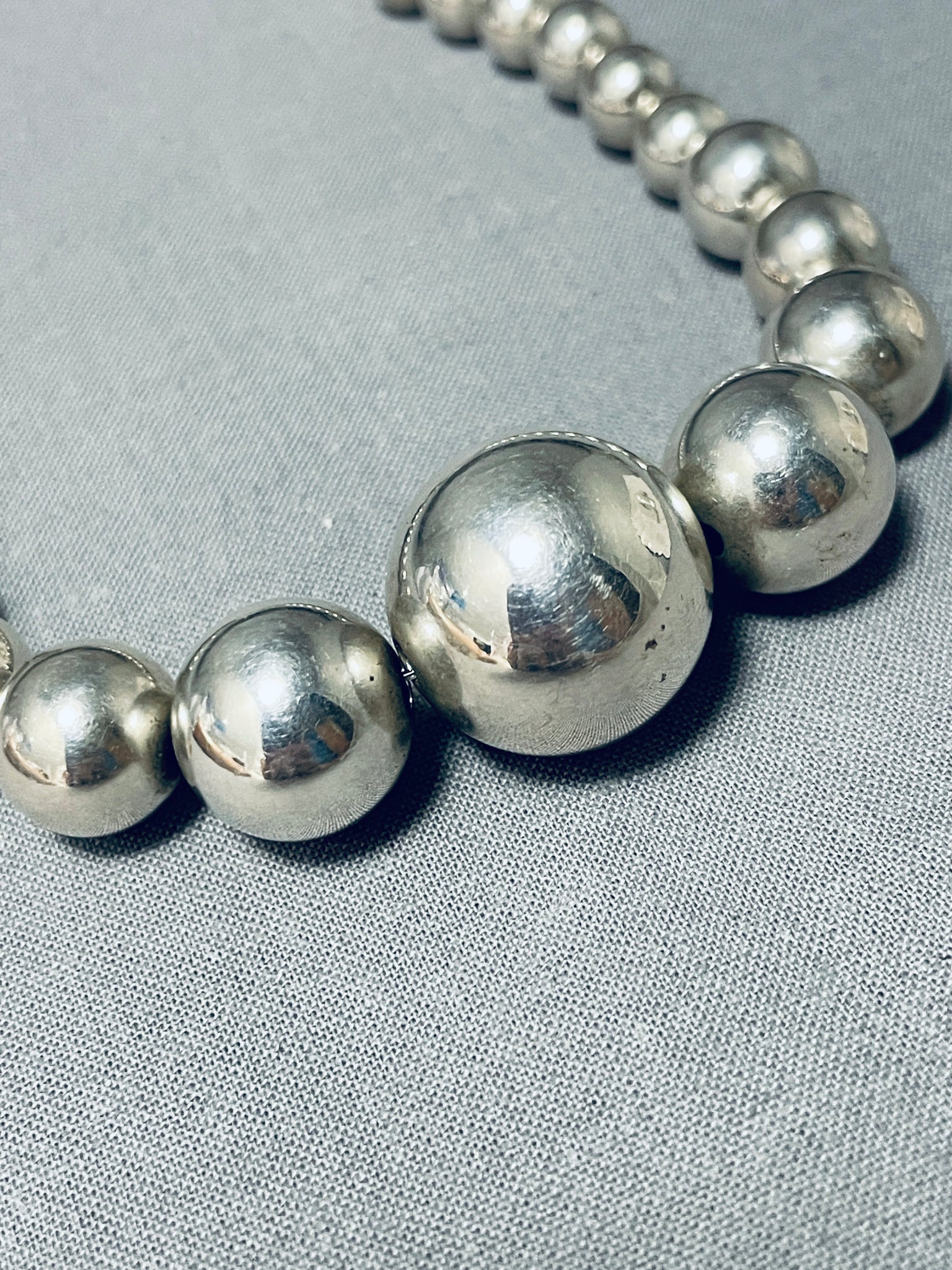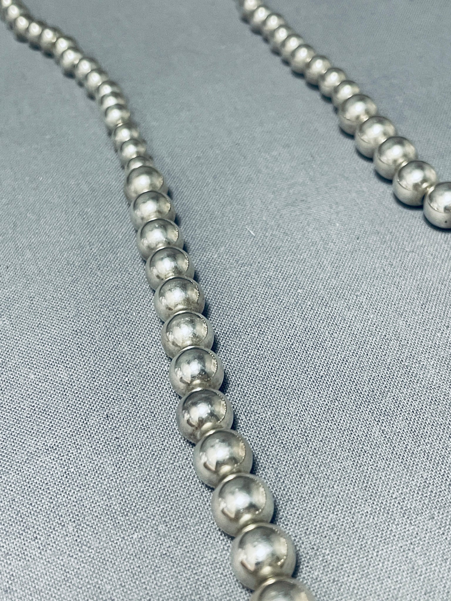 Fabulous Vintage Native American Navajo Sterling Silver Bead Necklace