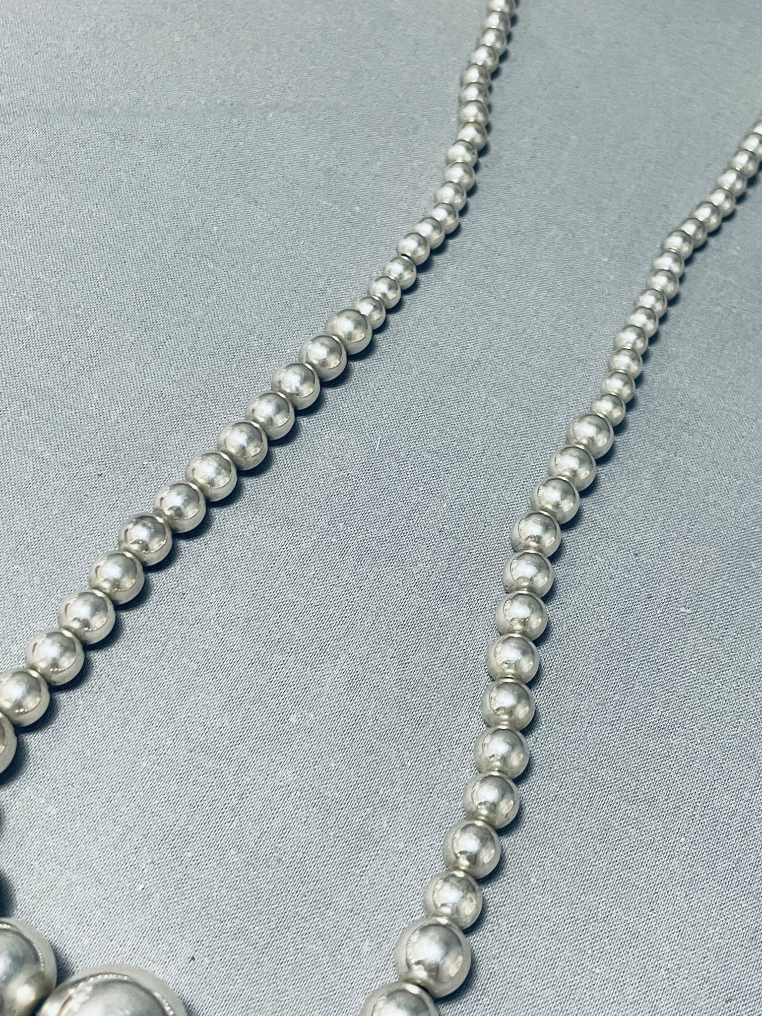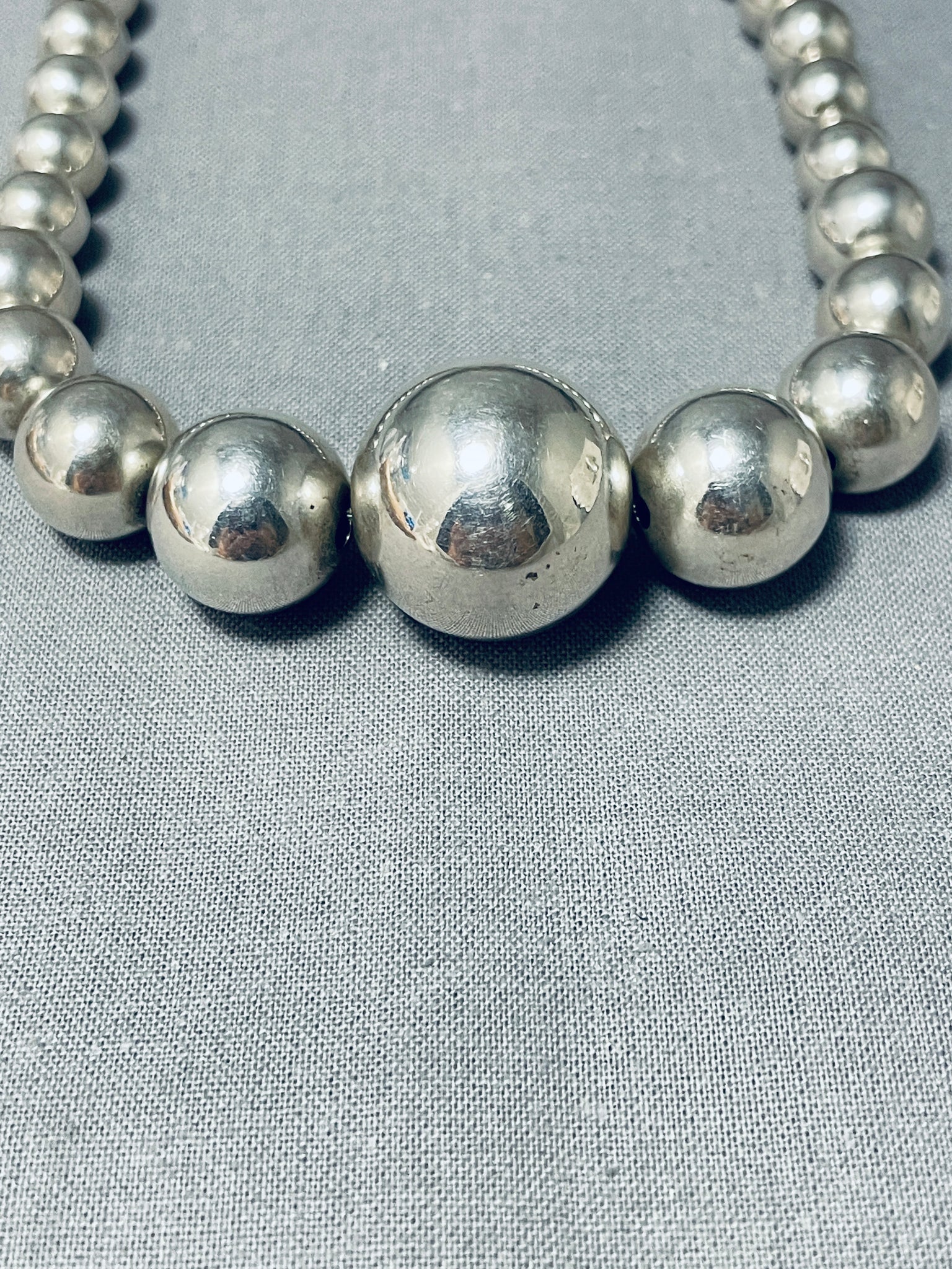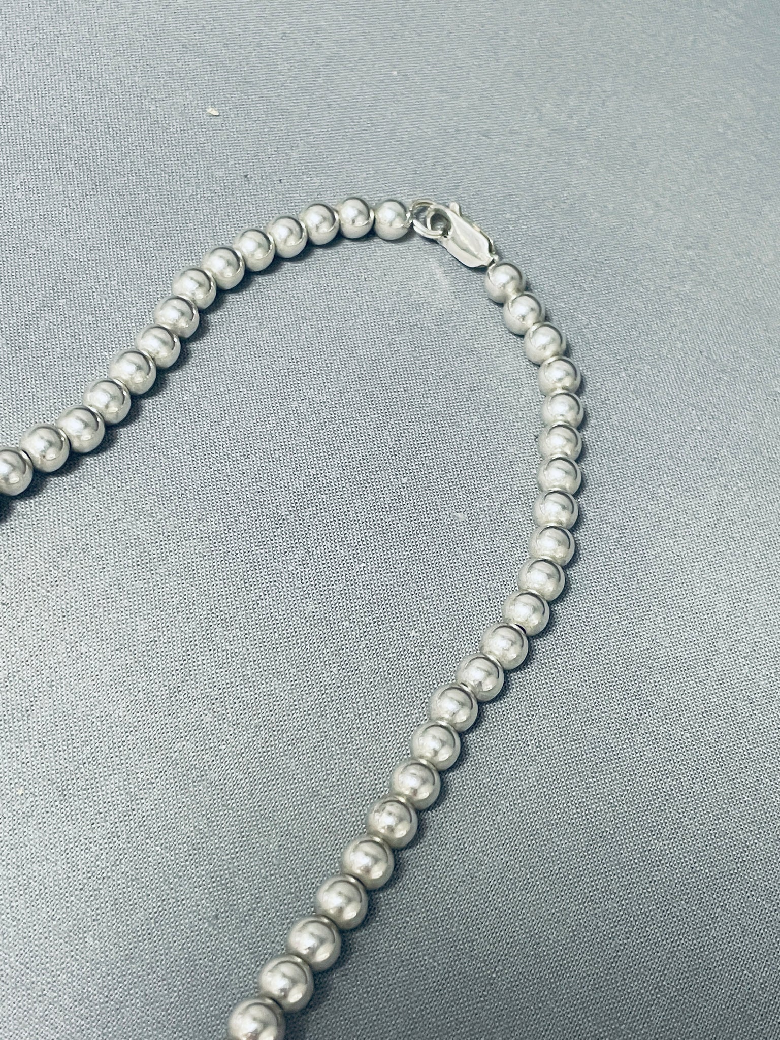 Fabulous Vintage Native American Navajo Sterling Silver Bead Necklace