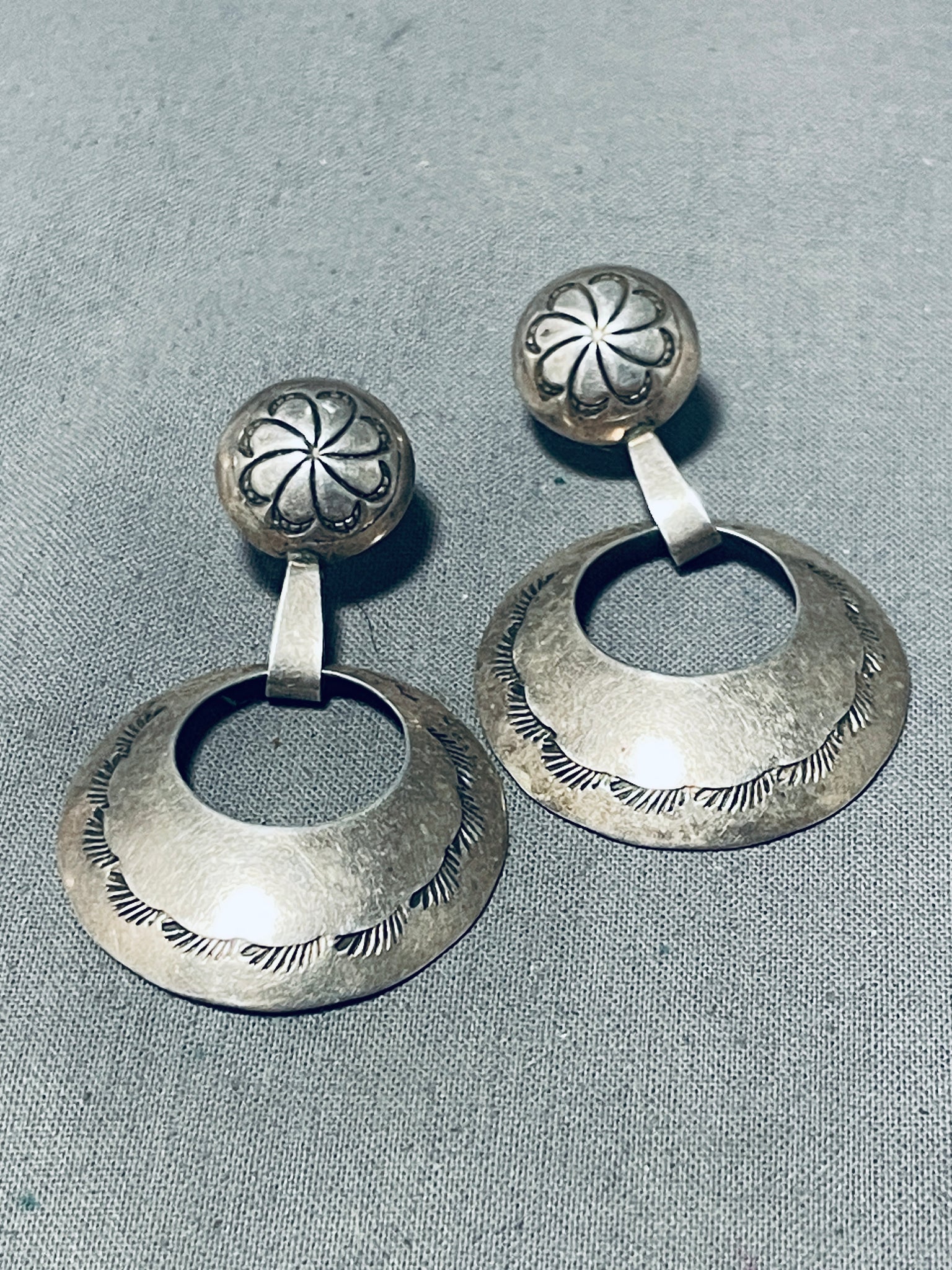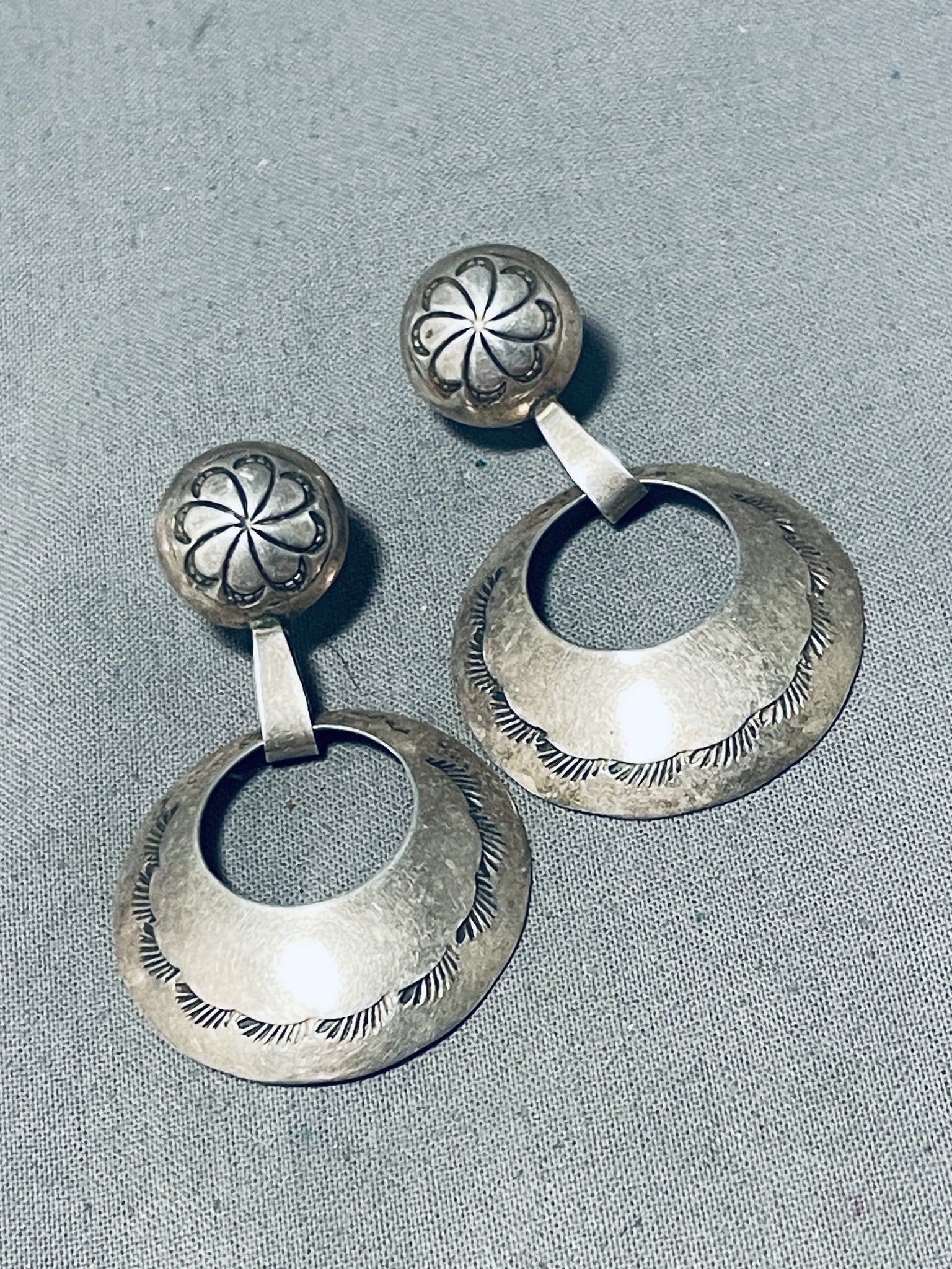 Fabulous Vintage Native American Navajo Sterling Silver Dangle Earrings