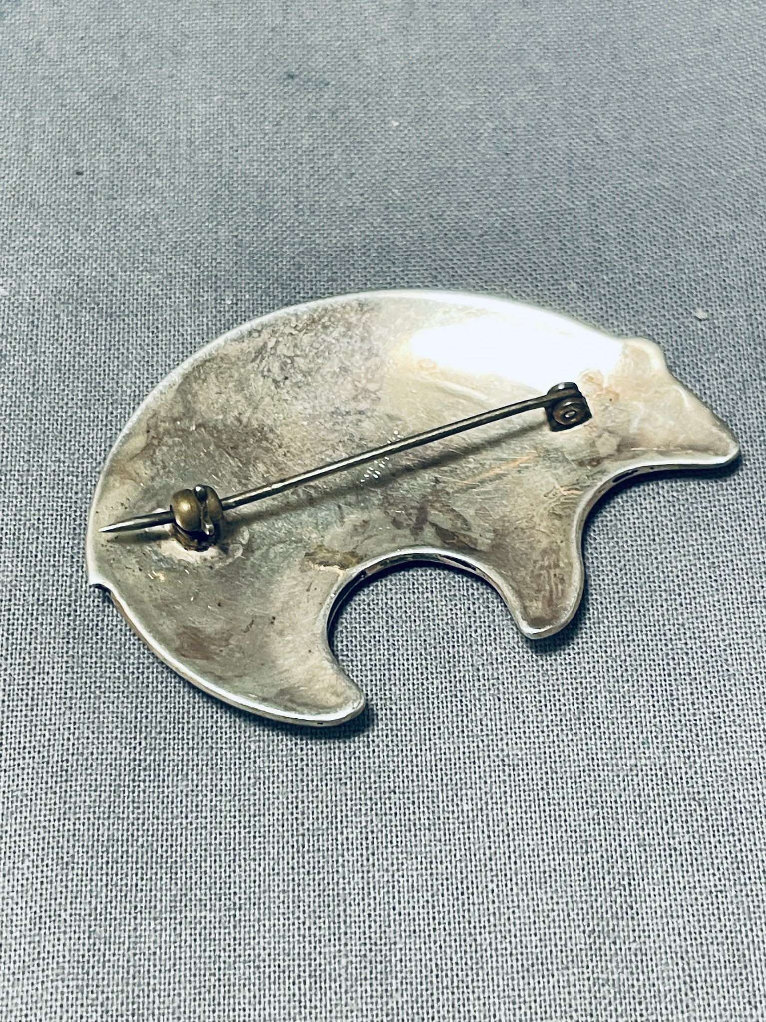Fabulous Vintage Native American Navajo Sterling Silver Handcarved Bear Pin