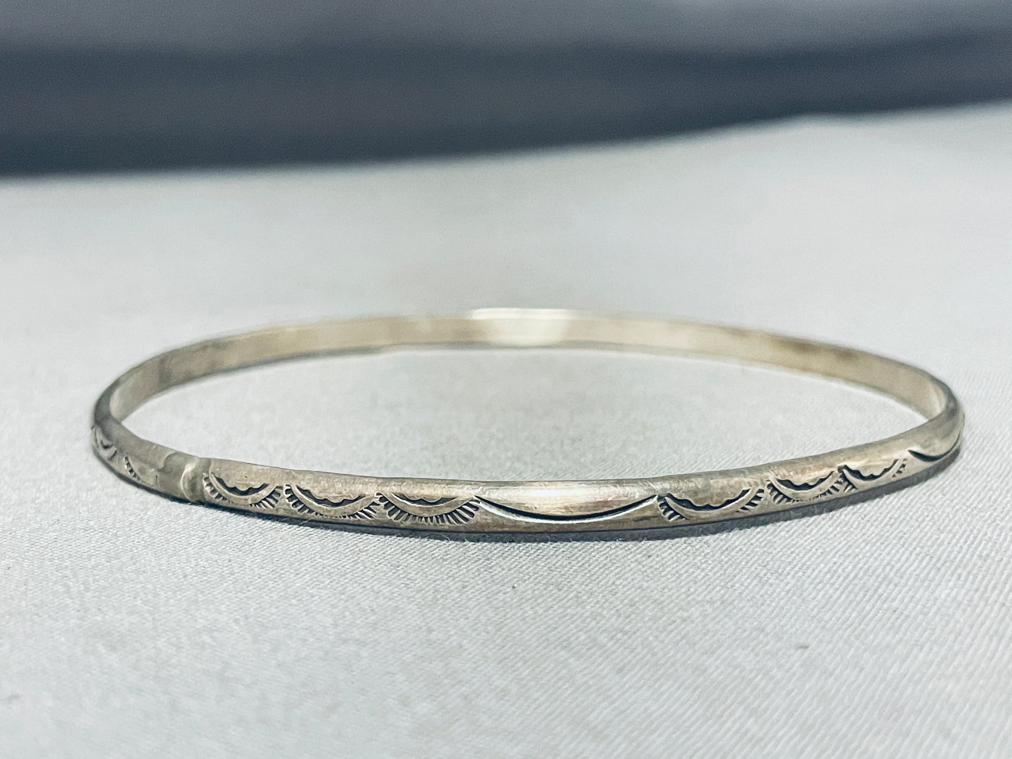 Fabulous Vintage Native American Navajo Sterling Silver Large Bangle Bracelet