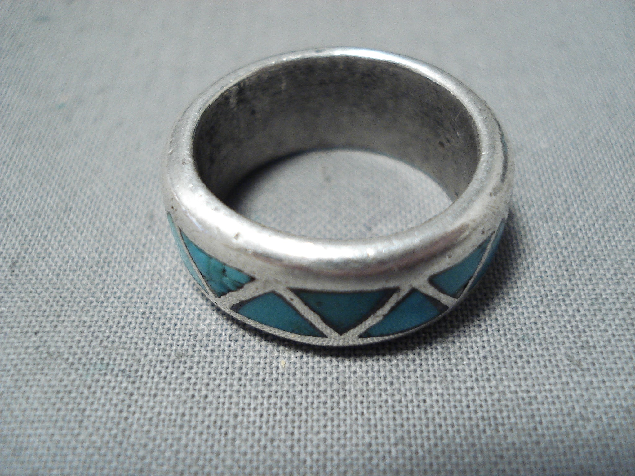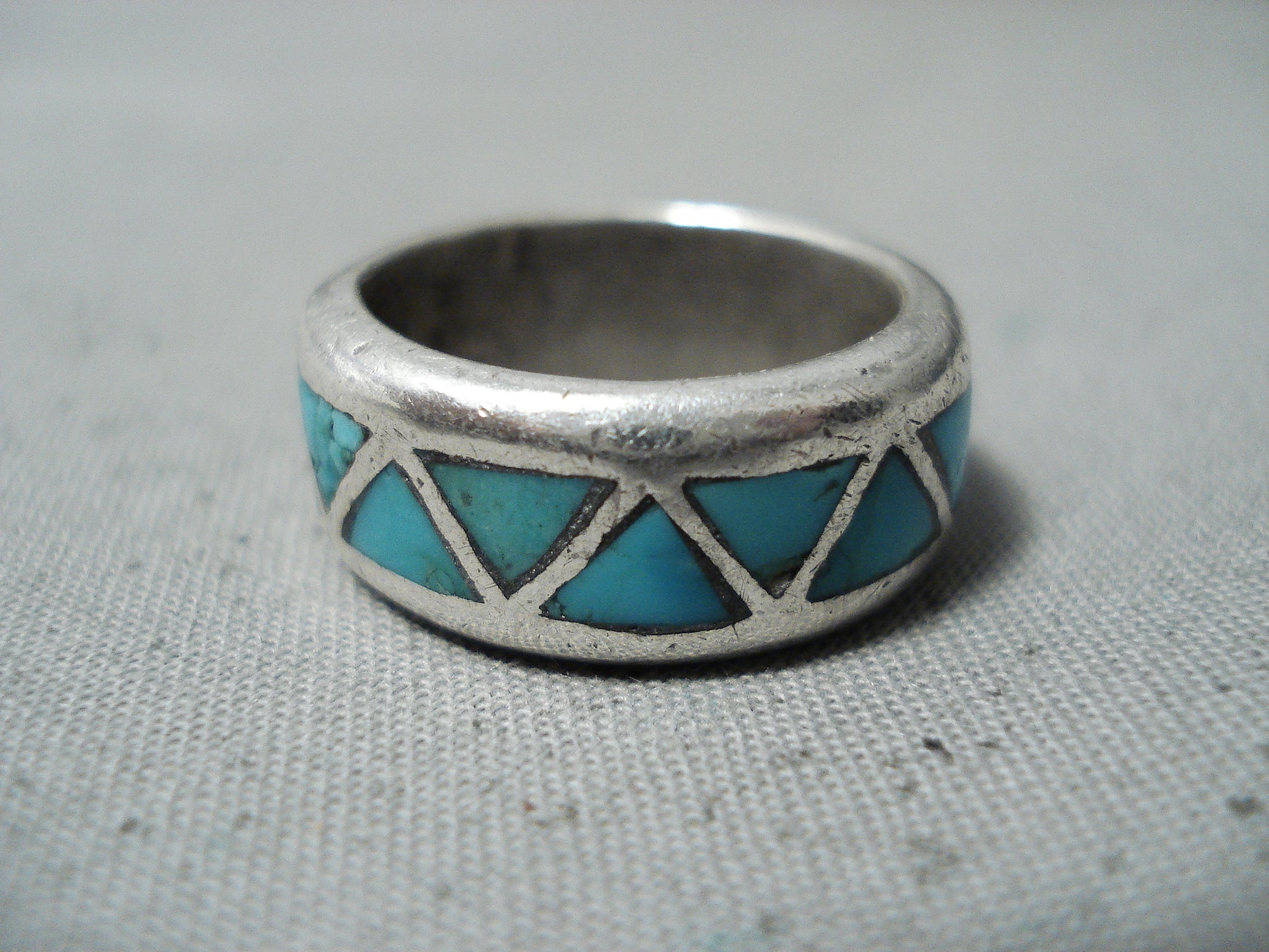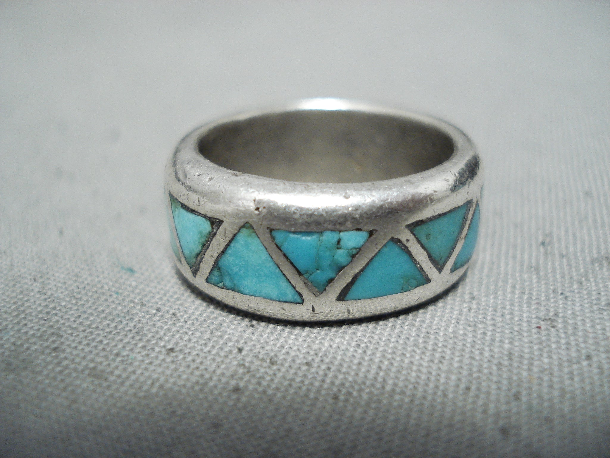 Fabulous Vintage Native American Navajo Turquoise Sterling Silver Band Ring Old