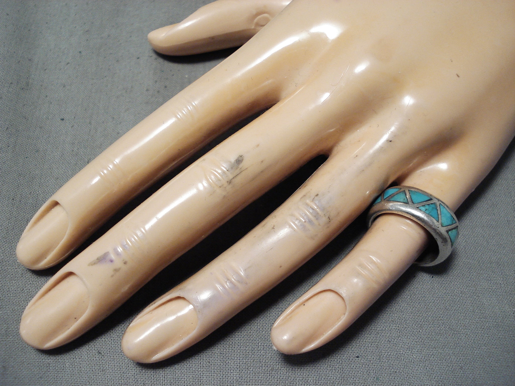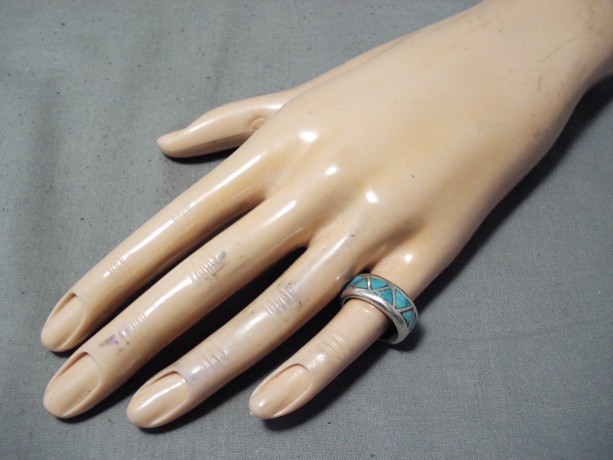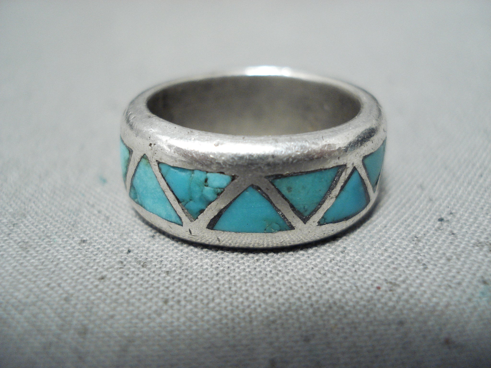 Fabulous Vintage Native American Navajo Turquoise Sterling Silver Band Ring Old