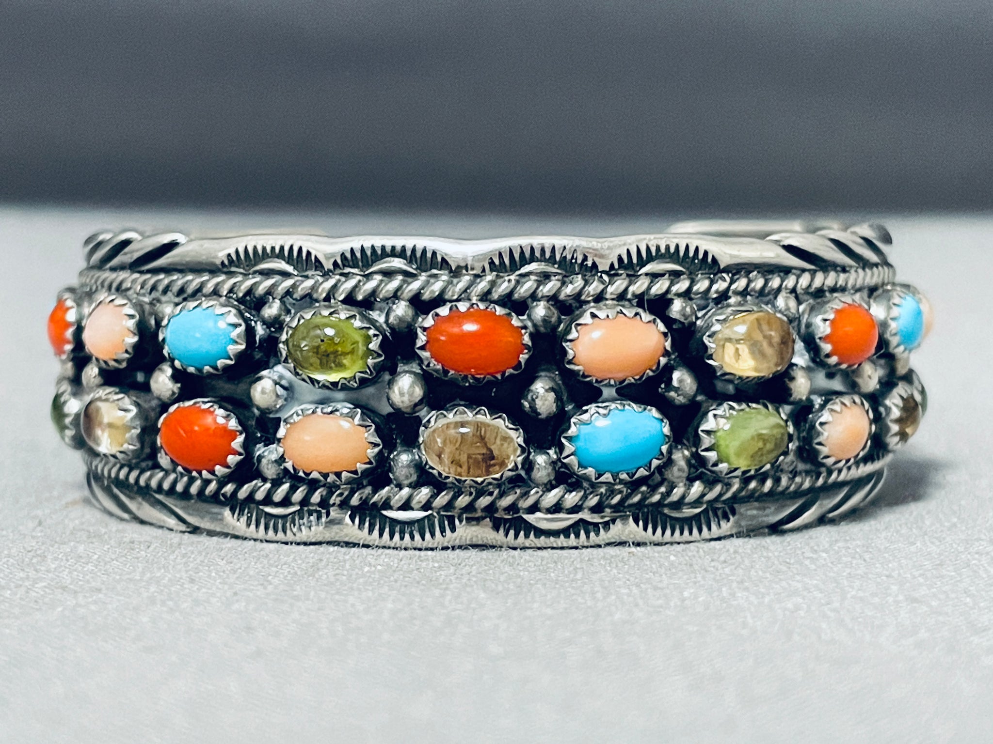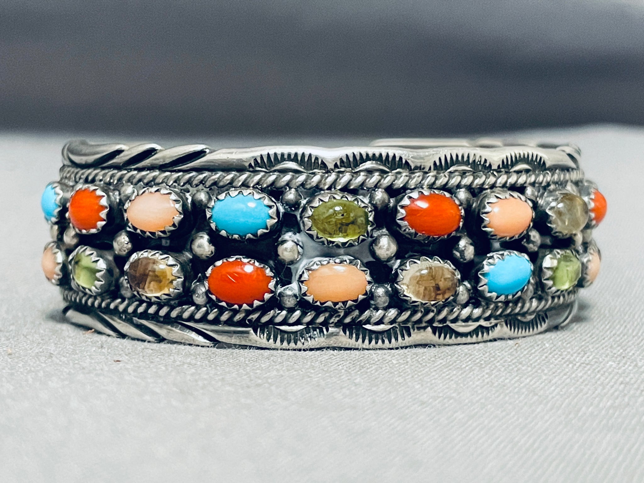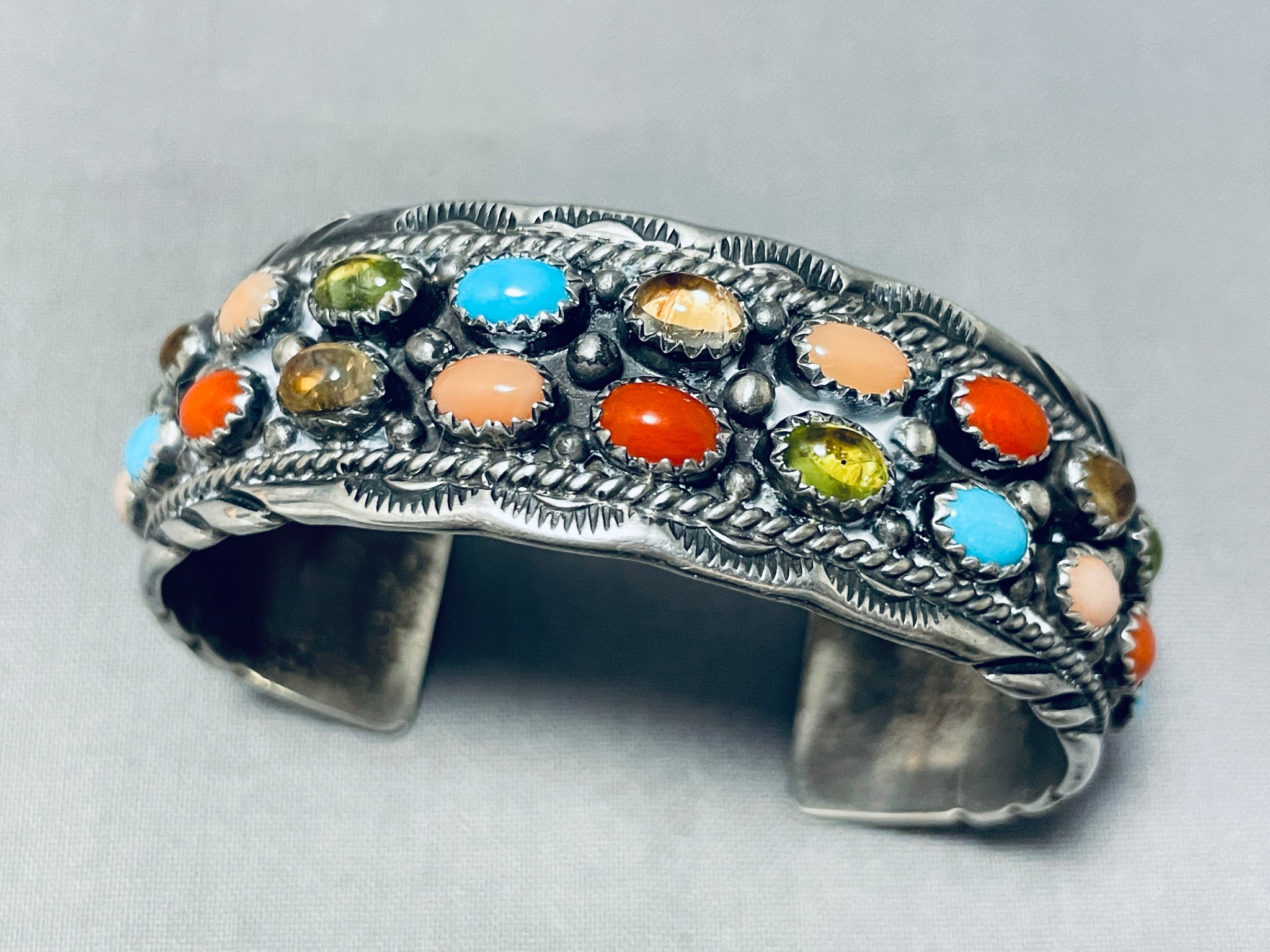 Fabulous Vintage Native American Navajo Turquoise Sterling Silver Bracelet Signed Lena Platero